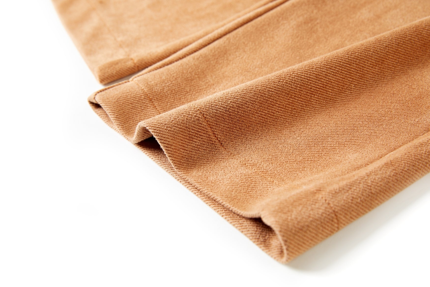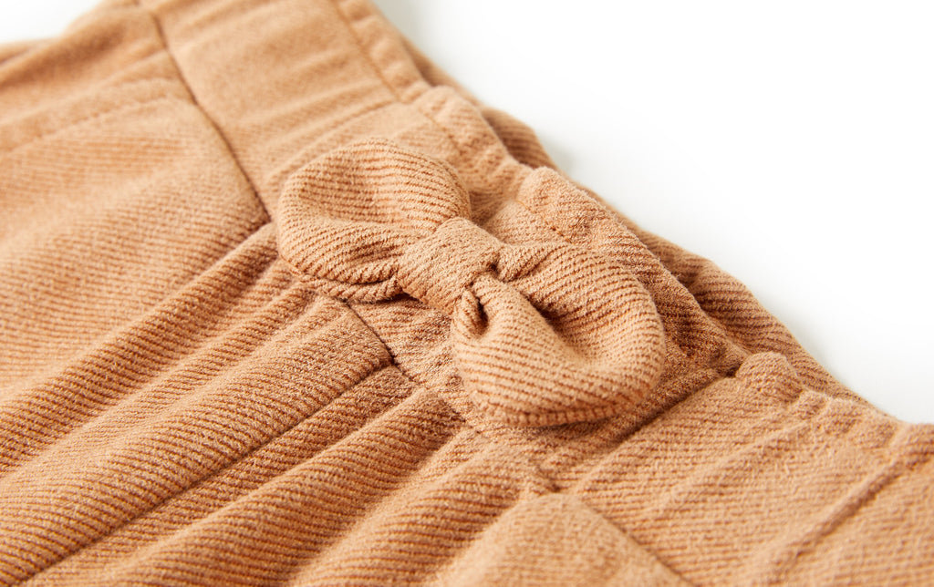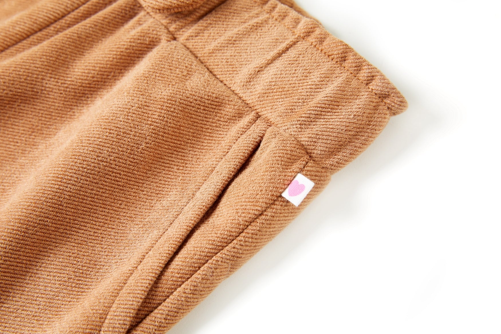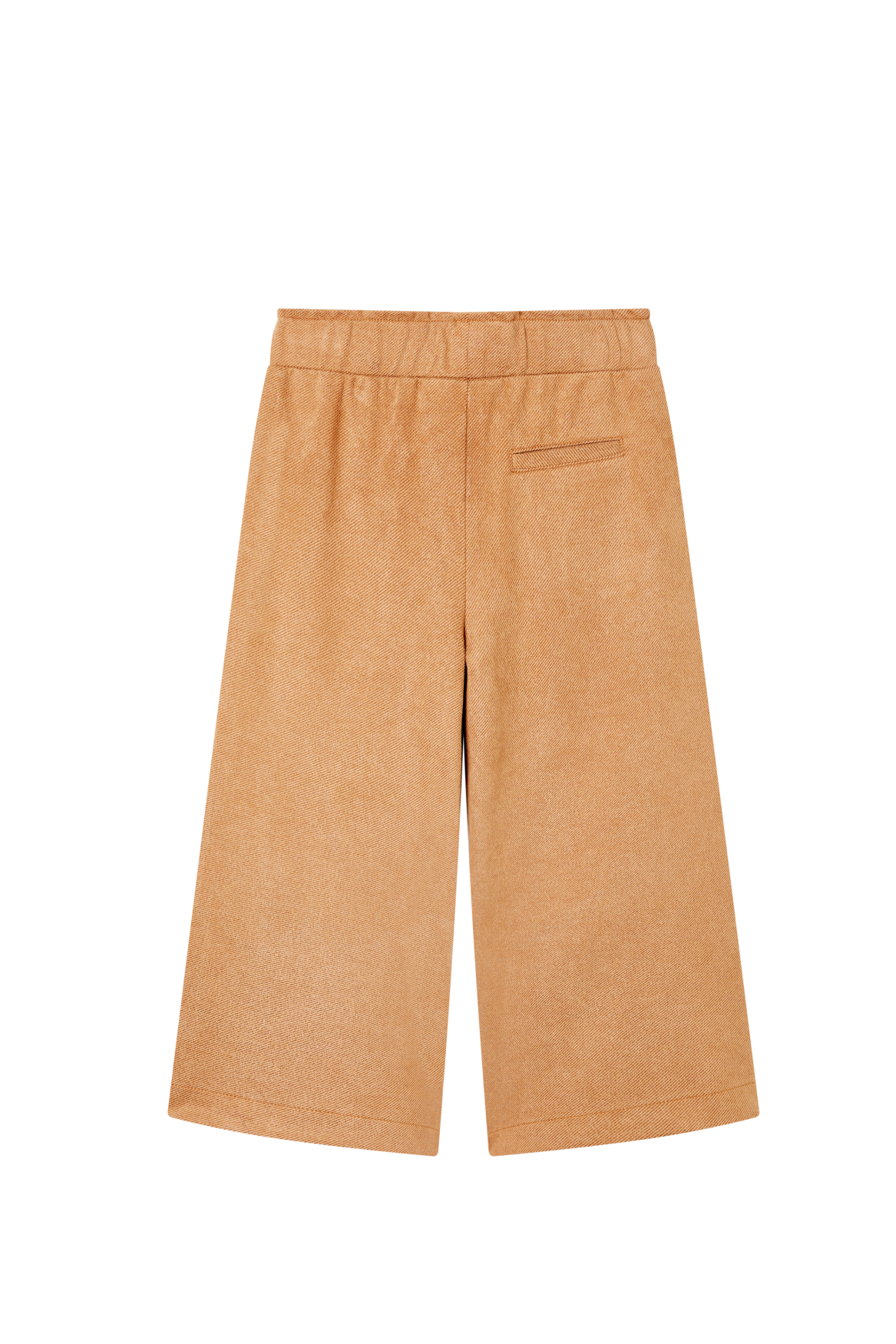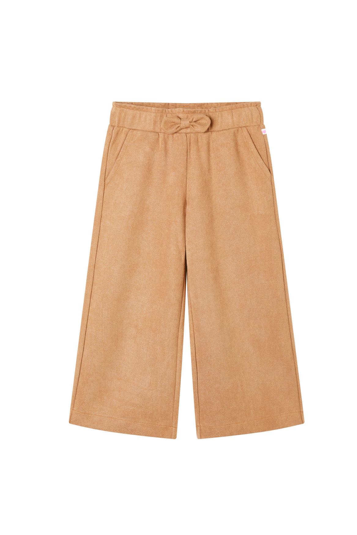 These warm dark beige-colored trousers blend a playful look with a refined finish, featuring a charming bow at the waist and elegantly wide legs. Practical pockets make them perfect for everyday outfits, while the soft shade pairs effortlessly with both fun prints and simple, solid tops.