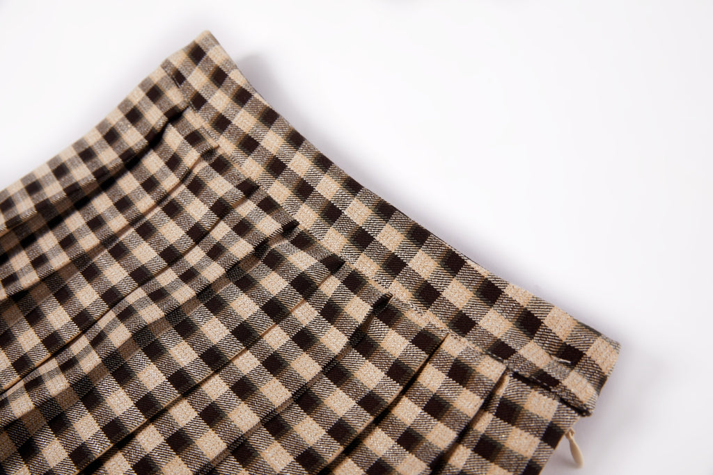 This checked skirt features a classic, timeless beige and brown pattern. The delicate pleats add elegant volume, while the soft fabric ensures comfortable wear throughout the day. Ideal to pair with tights and a cosy sweater for an autumn or winter outfit. A stylish piece that can easily be dressed up or worn more casually.