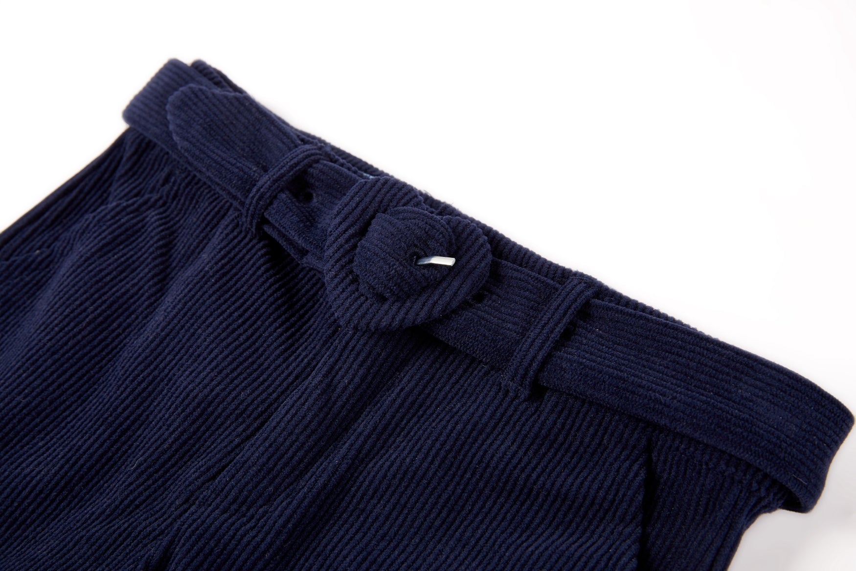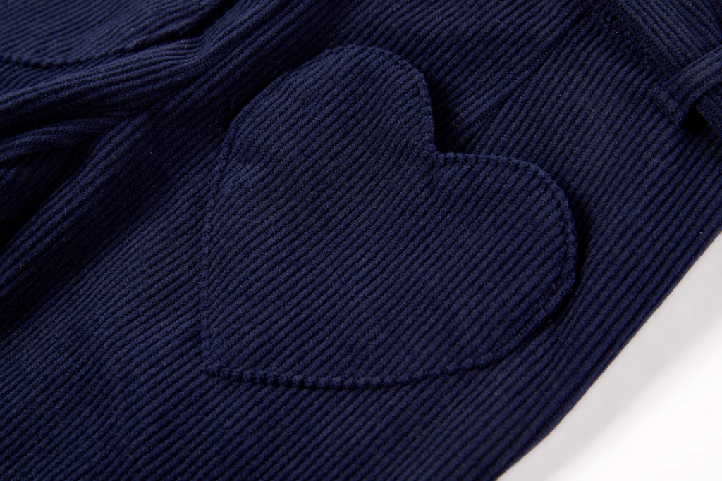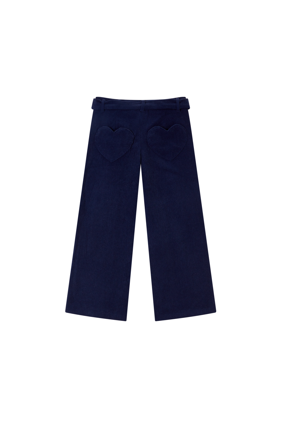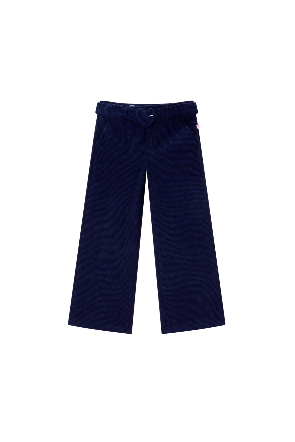 These dark blue wide-leg trousers offer a stylish and timeless look that instantly elevates any outfit. The matching belt with a heart-shaped buckle adds a playful and unique touch that truly stands out. With its comfortable fit, your little one can move and play freely all day long.