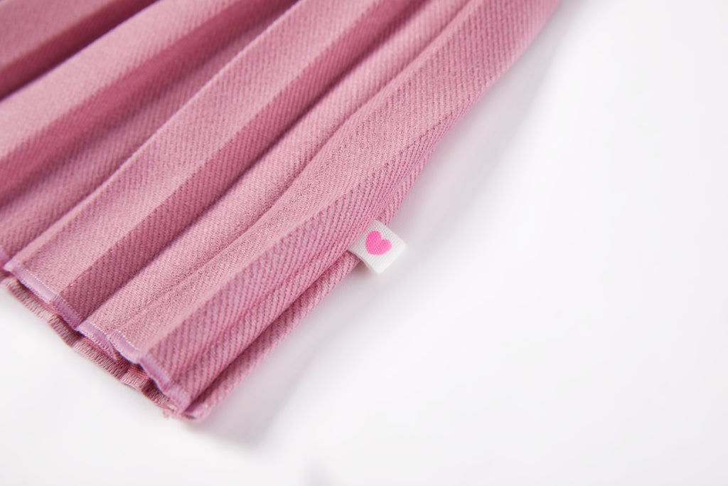 This soft pink skirt is a real eye-catcher for little fashion lovers. The classic pleated design moves beautifully with every step, while the comfortable waistband ensures an easy and pleasant fit. Perfect for everyday wear as well as special occasions, this timeless piece pairs effortlessly with sweaters, blouses, or a cozy knit.