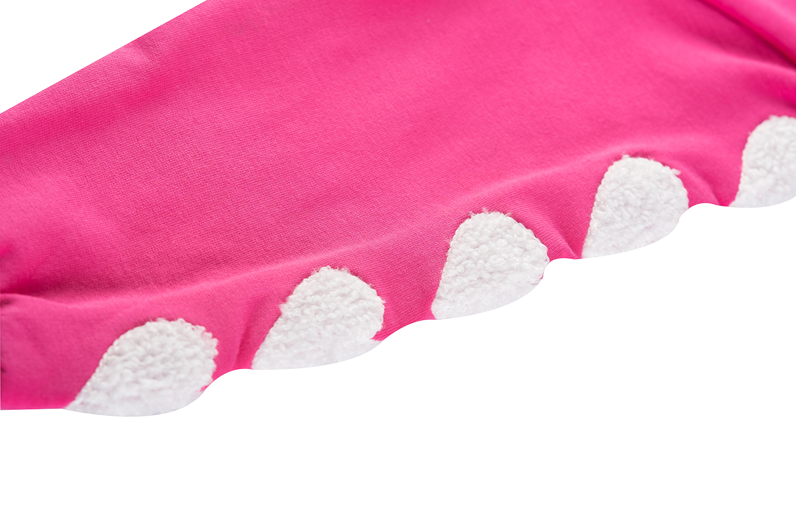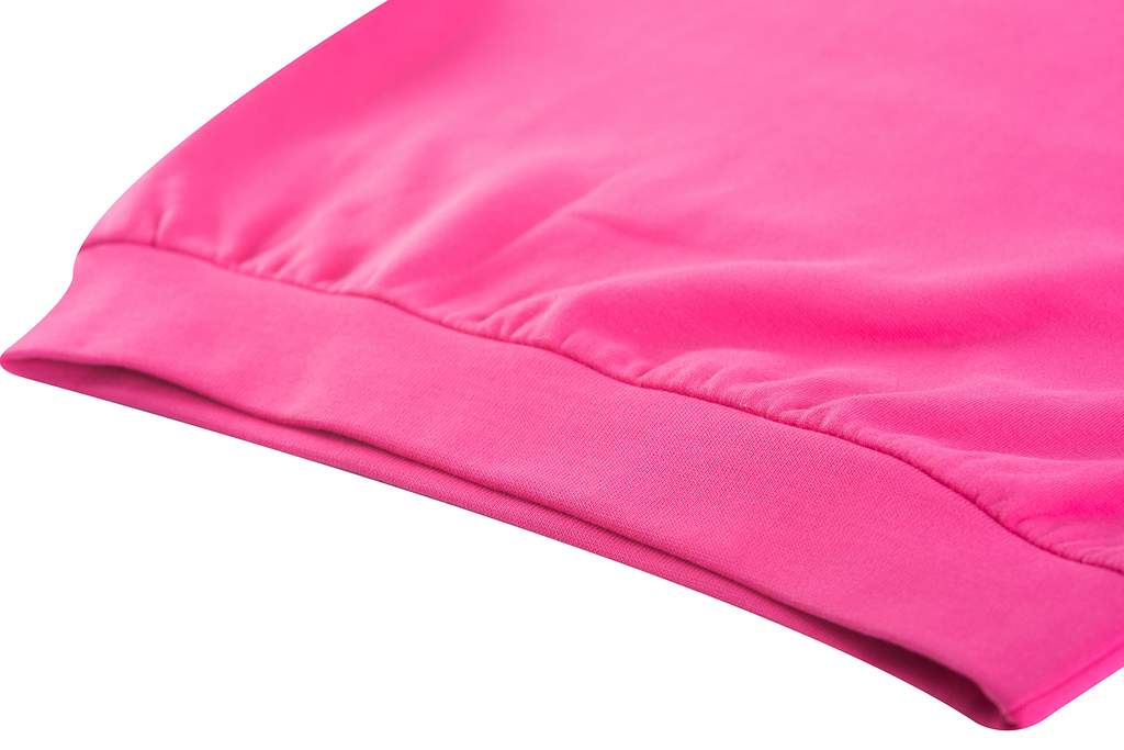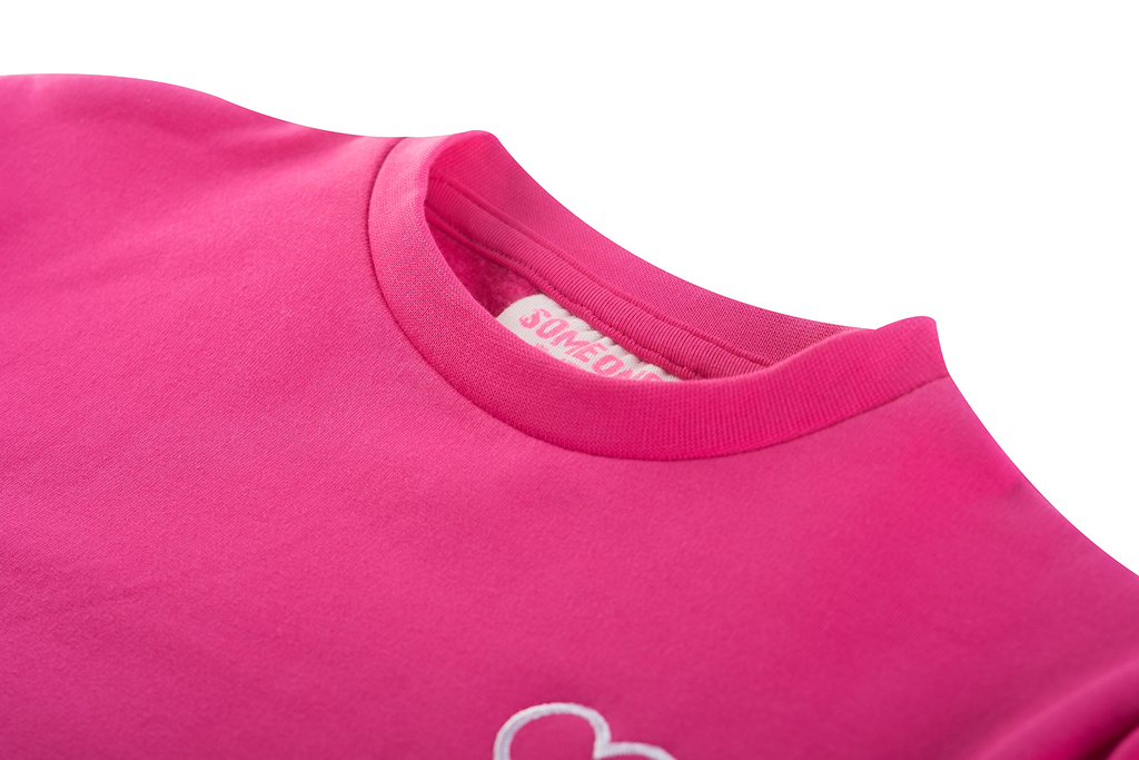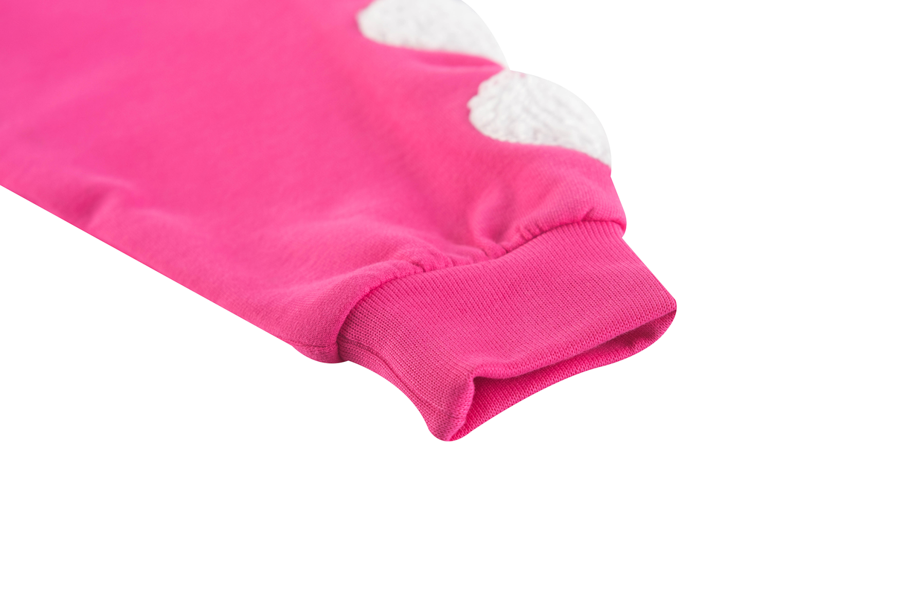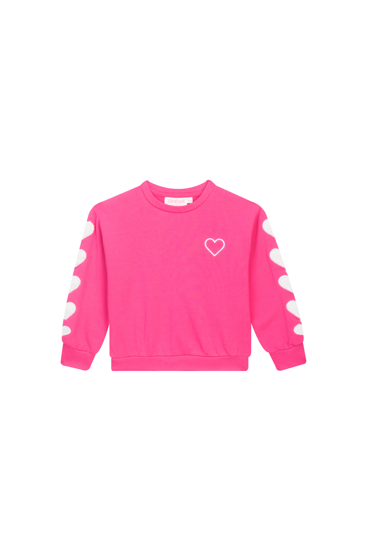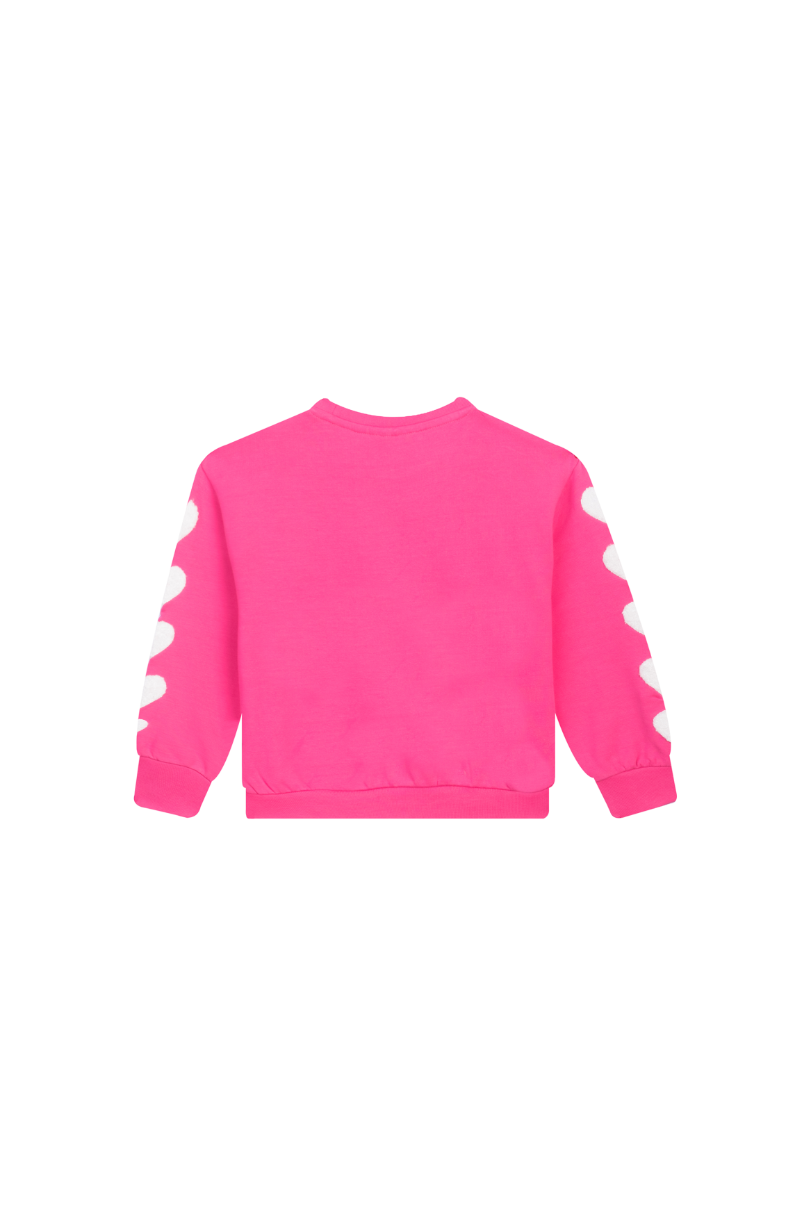 A playful bright pink sweater featuring large white shapes along the sleeves, adding a cheerful and eye-catching touch. This sweater brings a fun twist to any outfit and is perfect for kids who love bold colors and playful designs. A great everyday piece that feels joyful to wear.