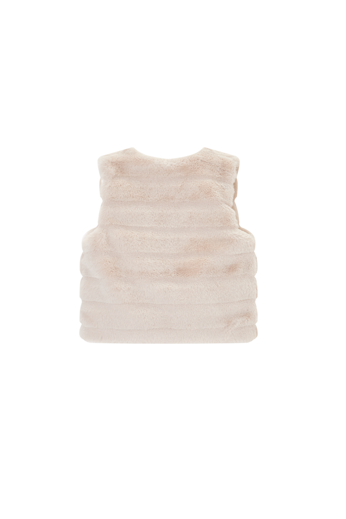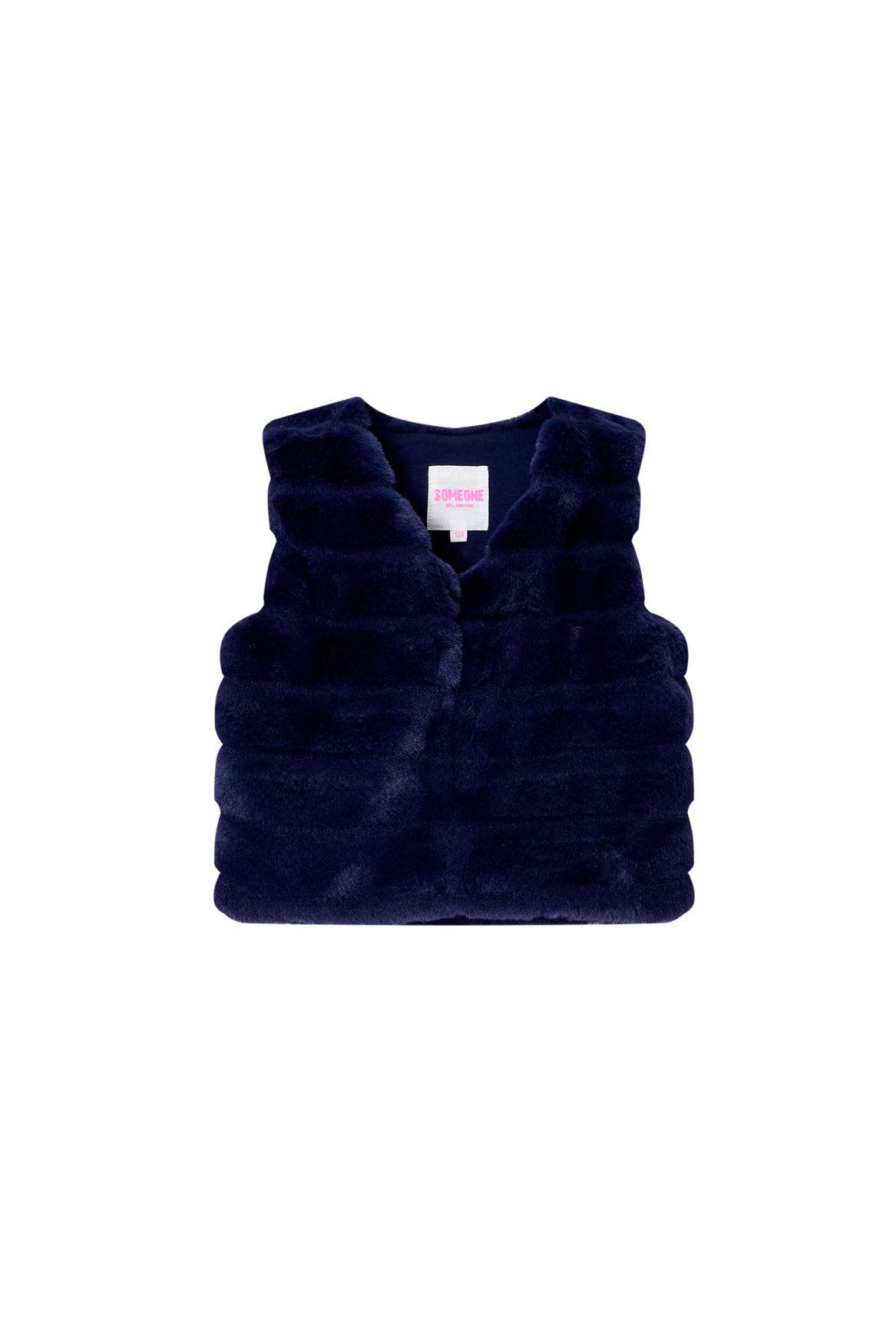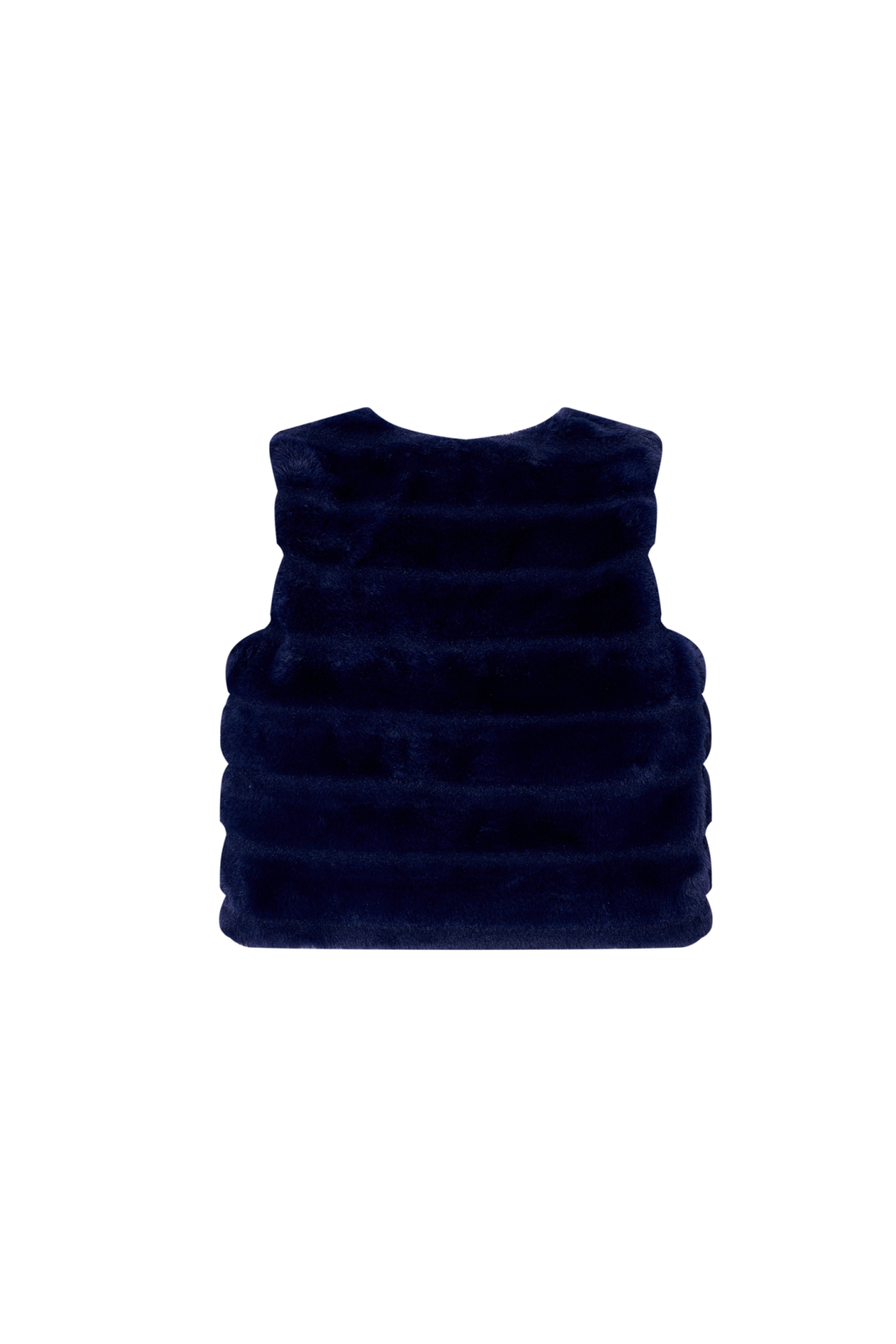 This dark blue vest is a stylish addition to any outfit and instantly adds a touch of elegance. The design features a beautiful wide faux-fur look arranged in soft horizontal panels, giving it a luxurious appearance. Its deep colour makes it easy to pair with both printed and plain pieces, turning it into a versatile favourite in any wardrobe.