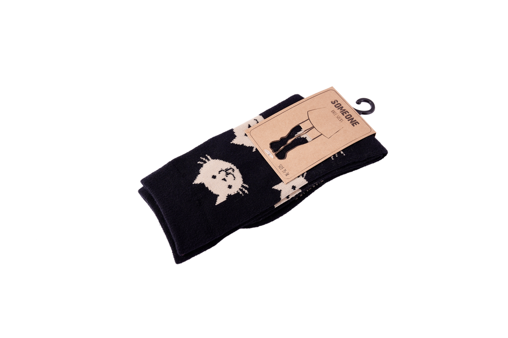 These adorable socks come in a rich dark shade and feature a cheerful pattern of beige cat faces. The playful design adds a cozy and quirky touch to any outfit without feeling over the top. They’re perfect for brightening up a simple look and work well with both casual and slightly dressier outfits. With their charming print, they quickly become a favorite choice in the drawer.
