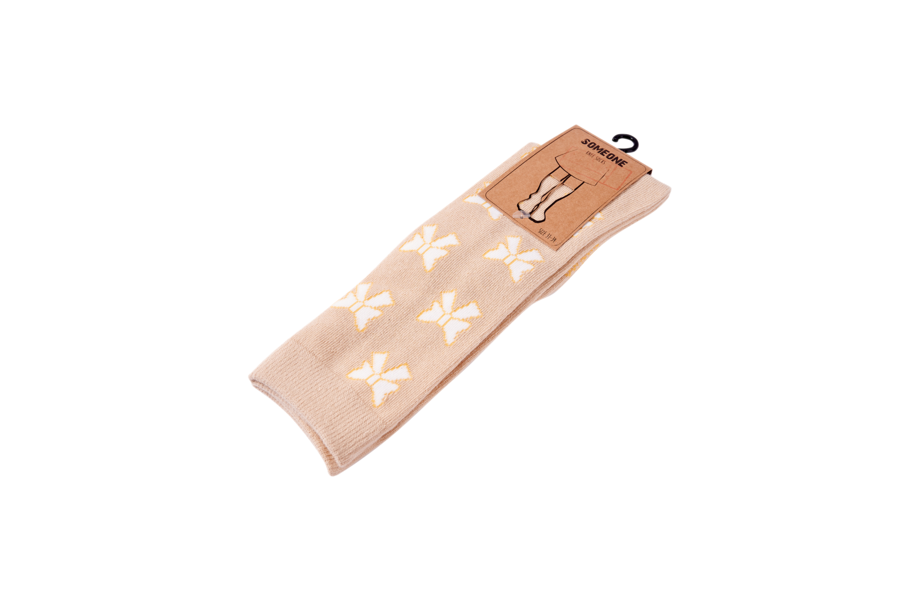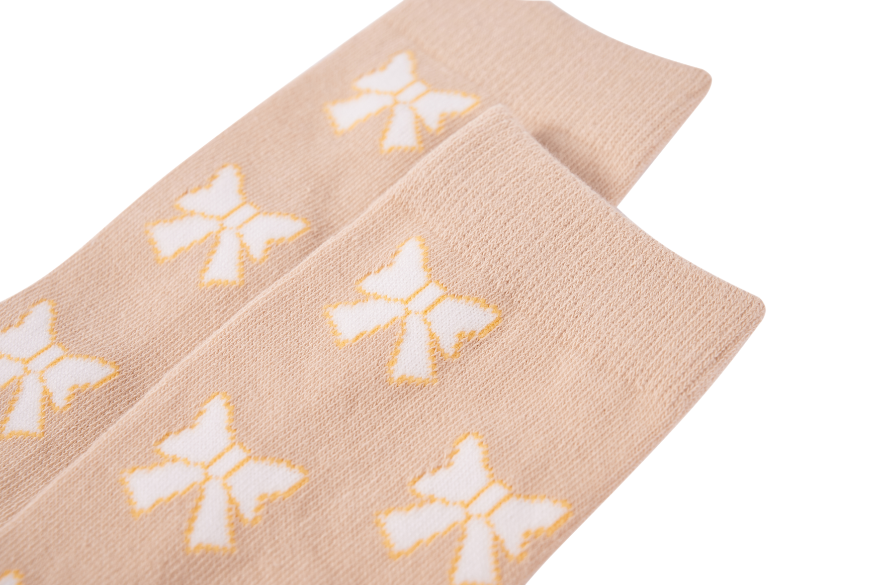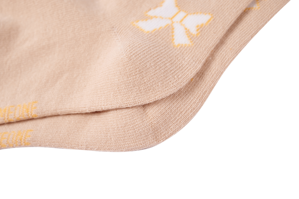 These socks feature a warm beige shade and are decorated with a repeated pattern of cute bows in a soft tone. The playful design adds a charming and modern touch to any outfit without becoming overwhelming. They pair beautifully with both dresses and skirts, always giving a polished look. Thanks to their timeless style, they’re perfect for everyday wear as well as more special occasions.