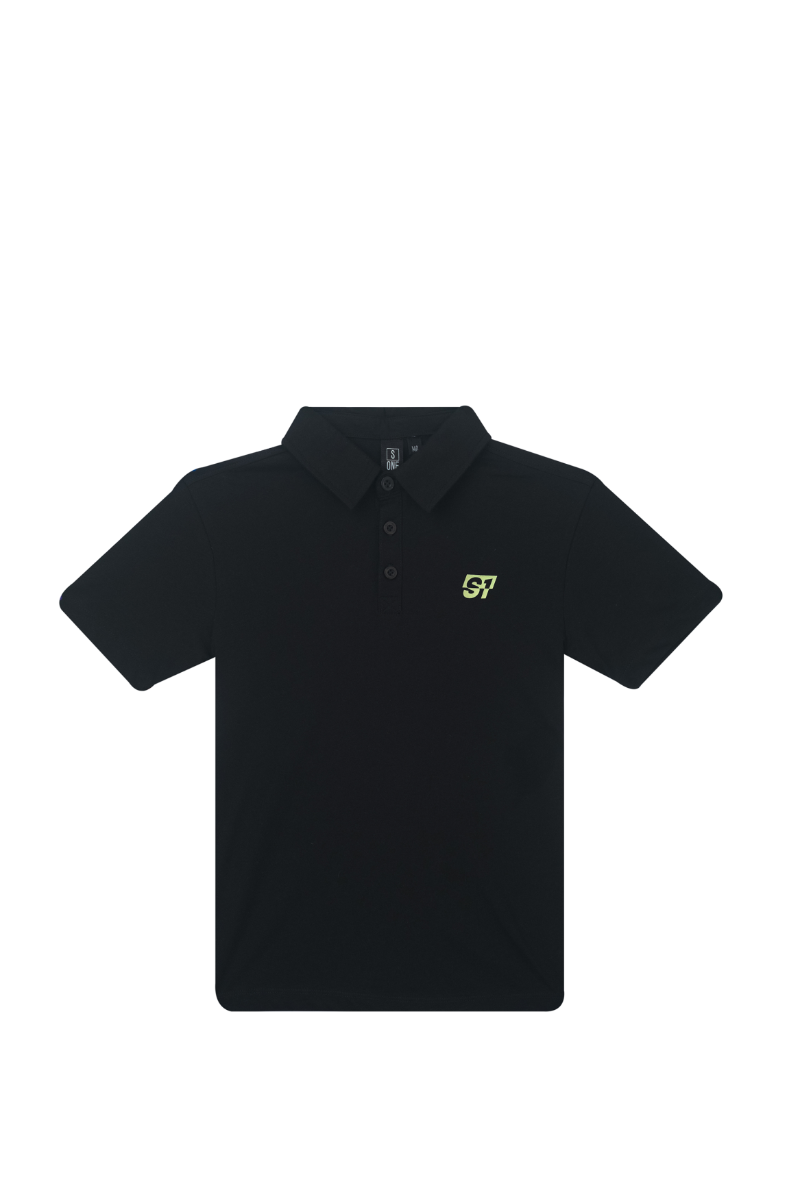 This black polo blends timeless simplicity with a modern touch. It features a classic collar and a three-button placket, giving it a neat and sporty appearance. A small lime-colored chest logo adds a fresh and contemporary detail to the design. Its clean and versatile style makes it easy to pair with both casual and slightly dressier outfits. A perfect pick for kids who like to look stylish, cool, and effortlessly put together.