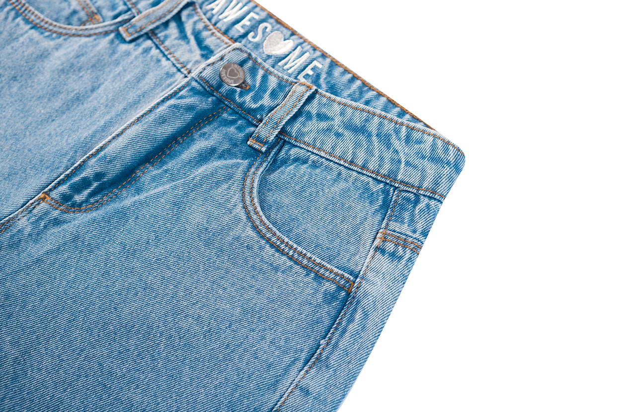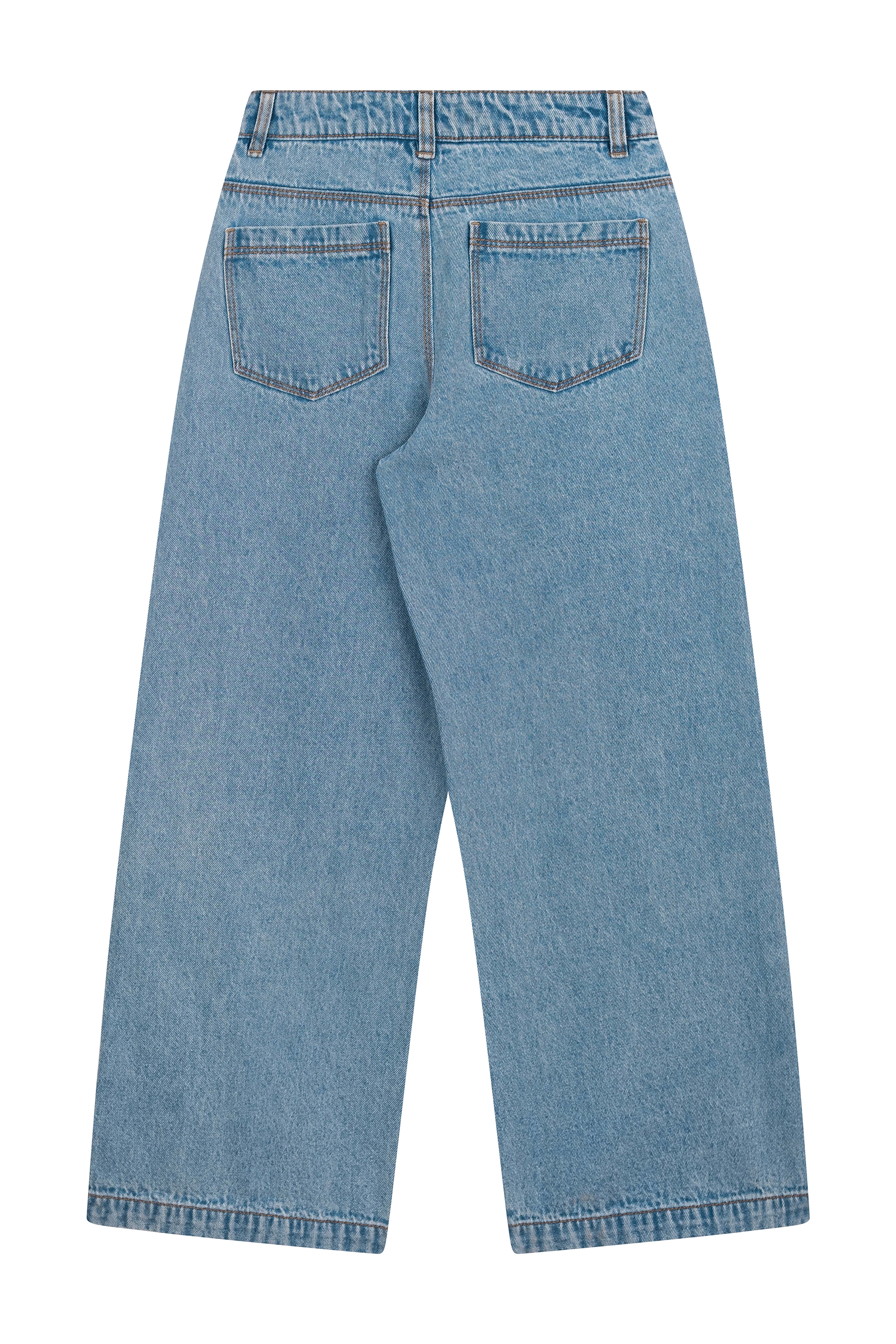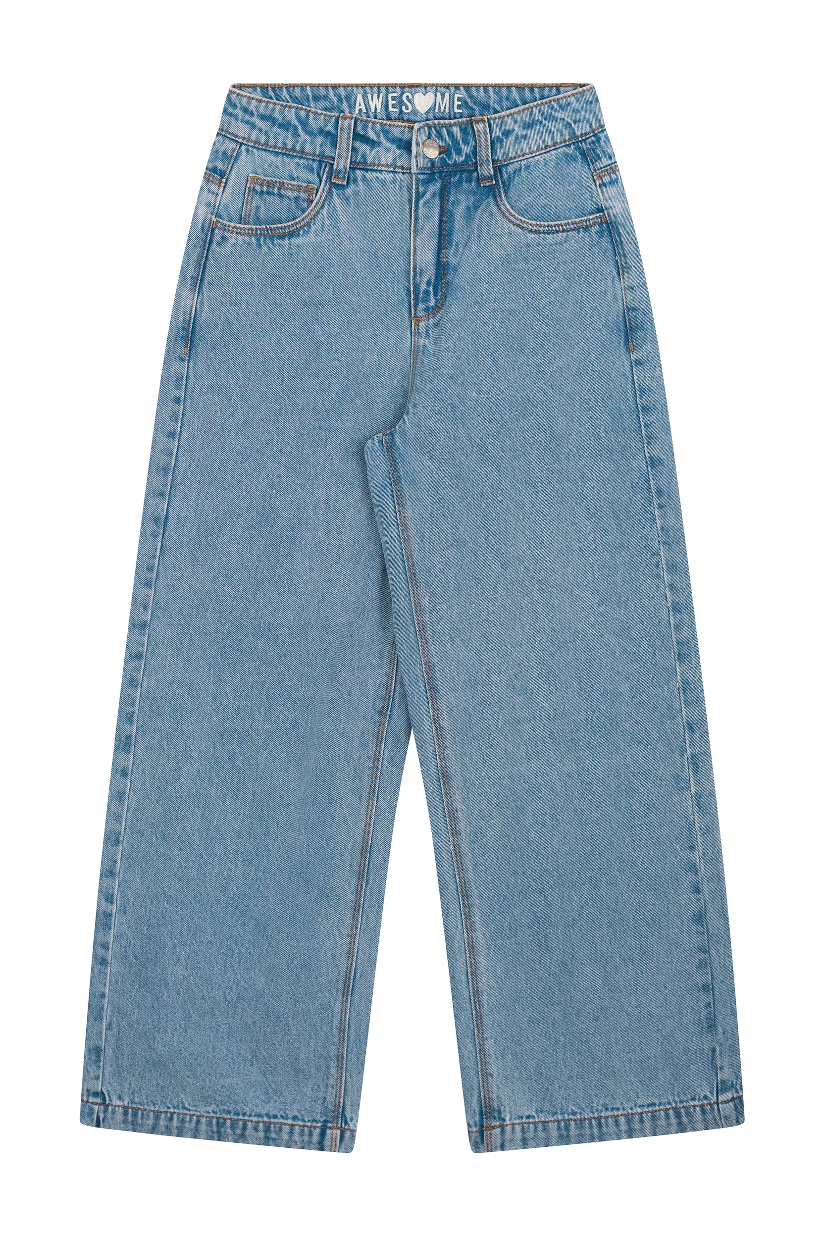 A modern and cool pair of jeans with a relaxed fit! These light blue trousers feature wide legs and a classic five-pocket design, making them easy to style for school days or casual weekends. The subtle wash adds a fresh touch. Pair them with a T-shirt, sweater, or blouse for an effortless everyday look.