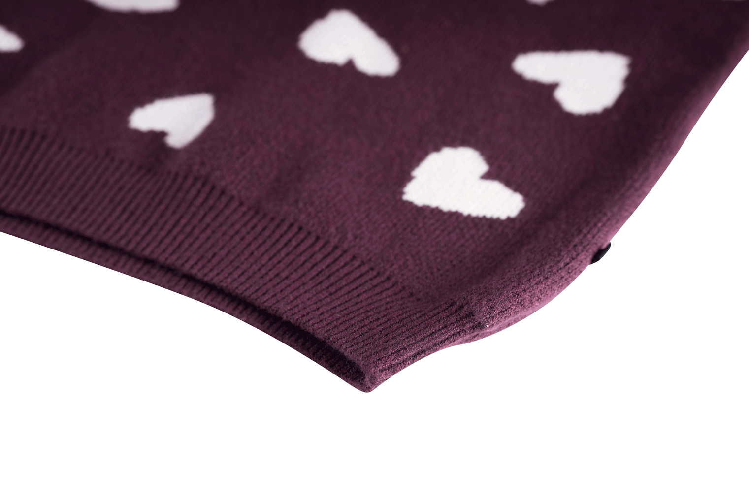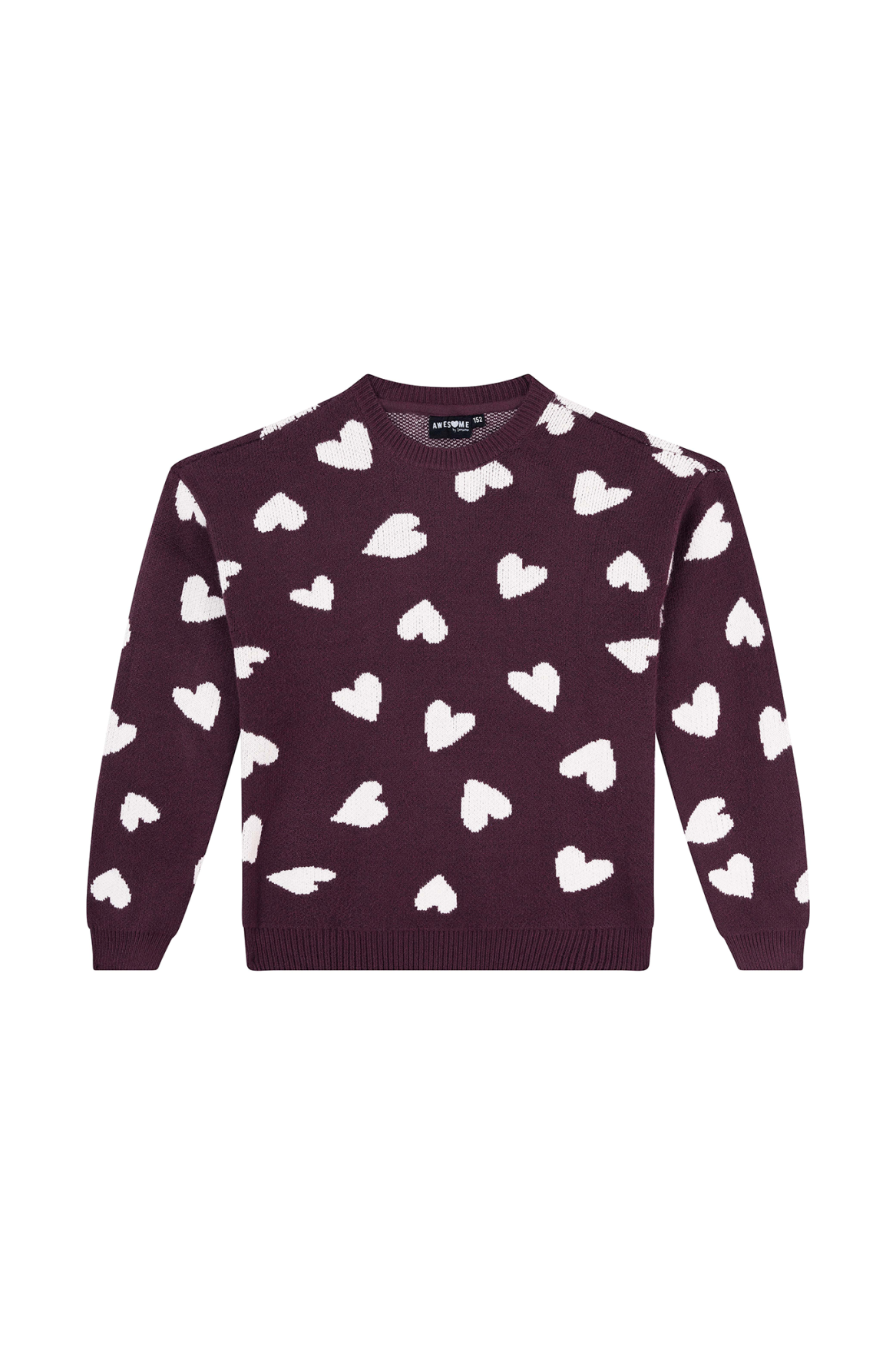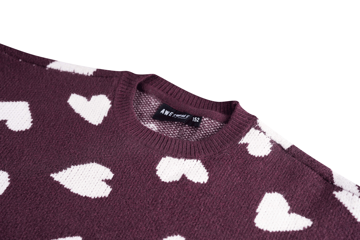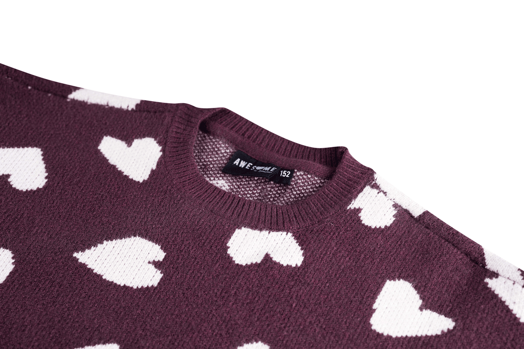This dark blue sweater with a playful heart pattern is a charming and versatile choice for everyday wear. The contrasting white hearts add a cheerful and fresh touch, while the comfortable fit makes it ideal for casual outfits. The ribbed hems give it a clean and timeless finish. Perfect to pair with jeans, a skirt, or a cozy winter look.