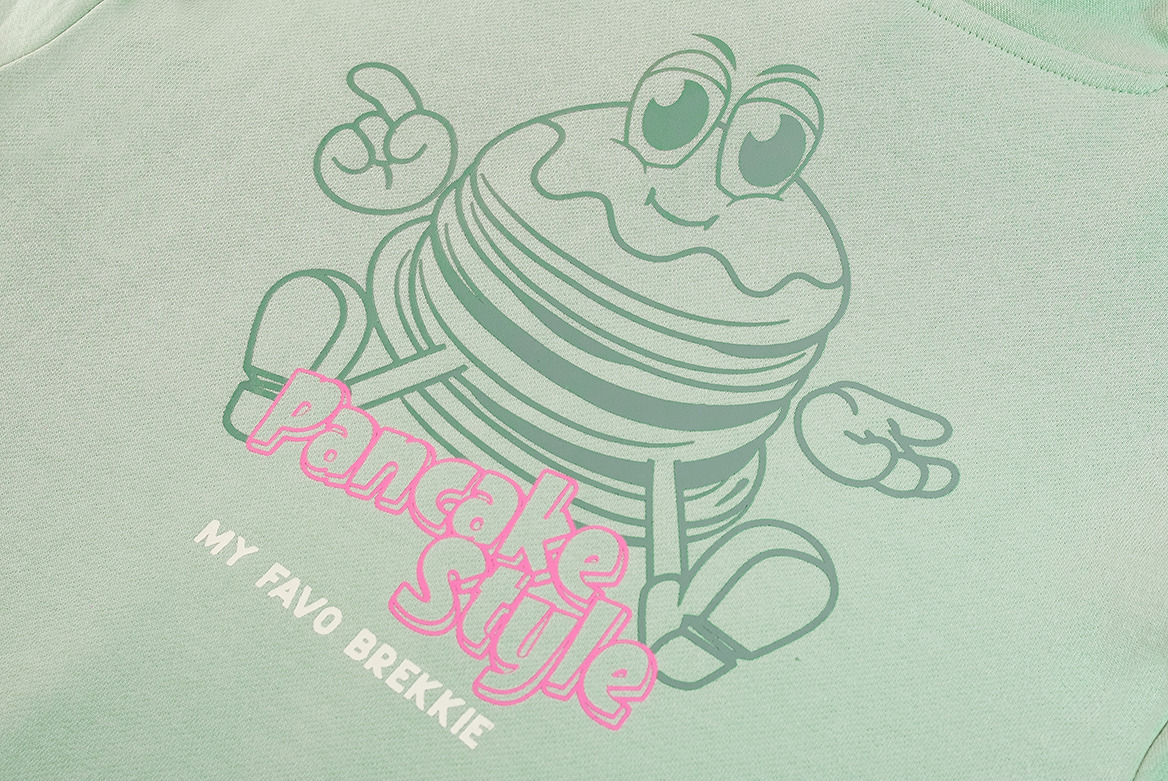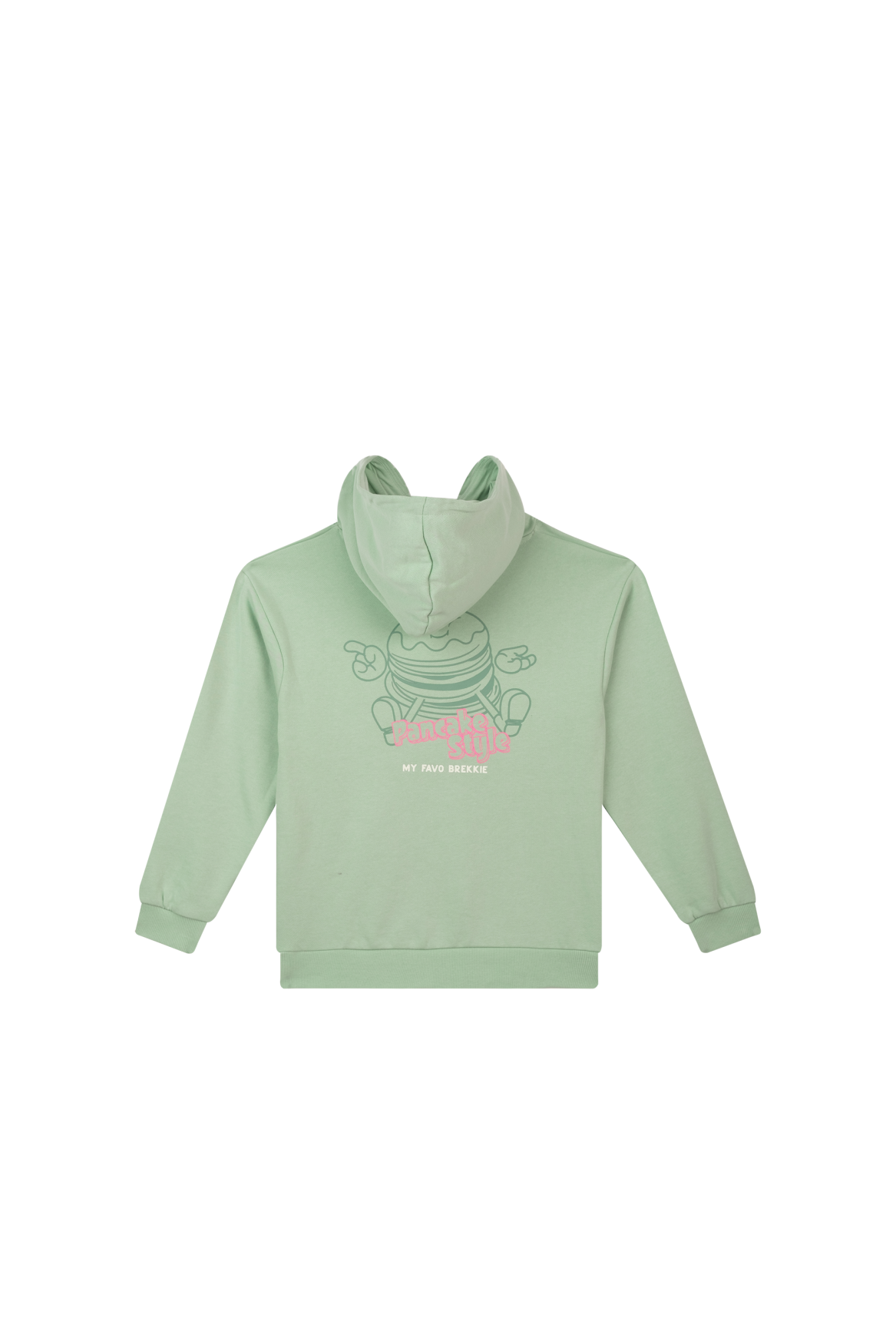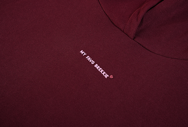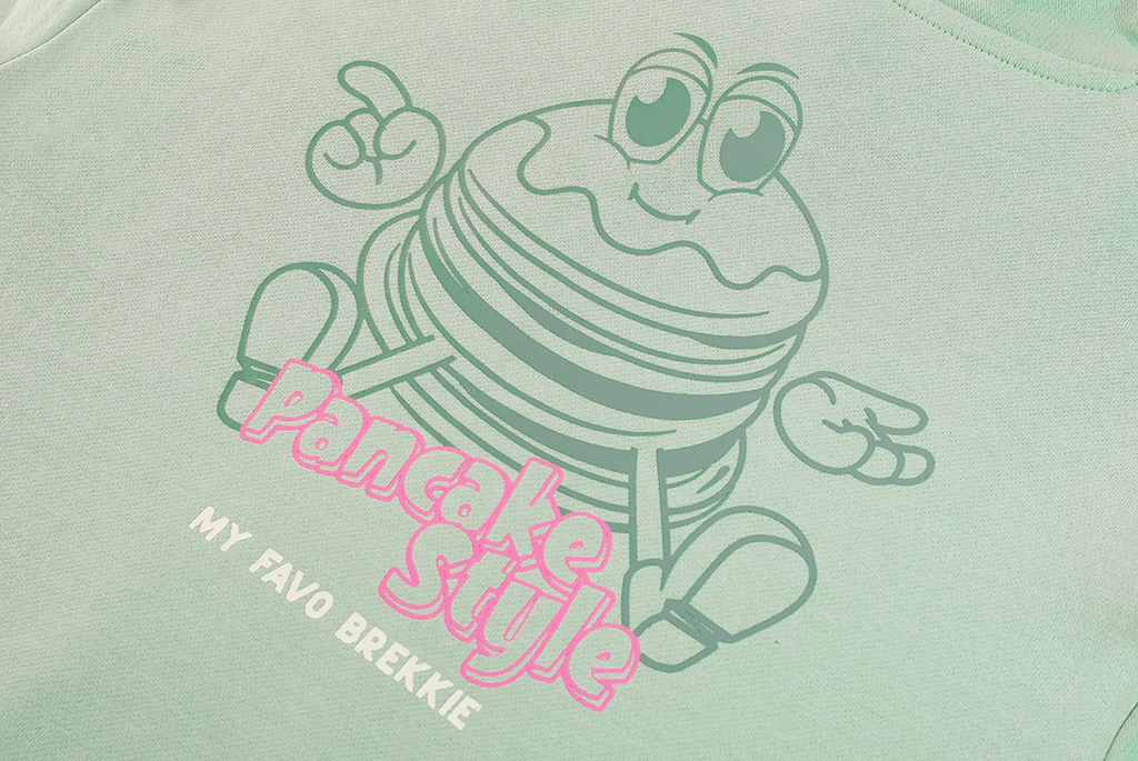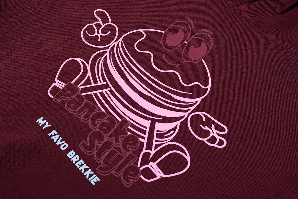 This burgundy hoodie radiates fun with its bold, cartoon-style pancake print on the back. The playful illustration paired with the text pancake style – my fav brekkie creates a lighthearted, humorous vibe — perfect for kids who love a quirky, fun style. With its relaxed fit, the hoodie is ideal for school days, playtime, or cosy weekends. Pair it with jeans or joggers for a cheerful and comfy outfit.