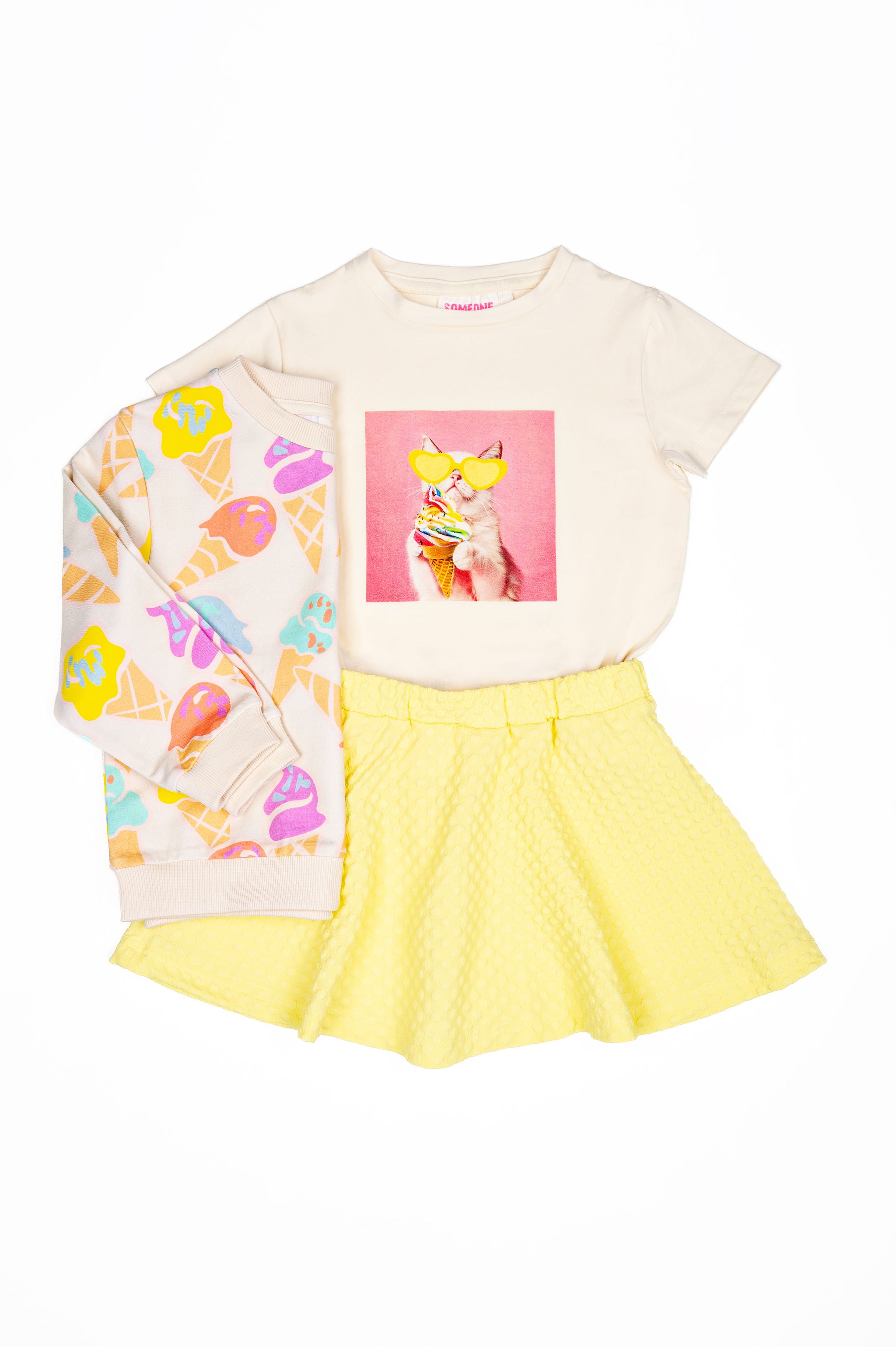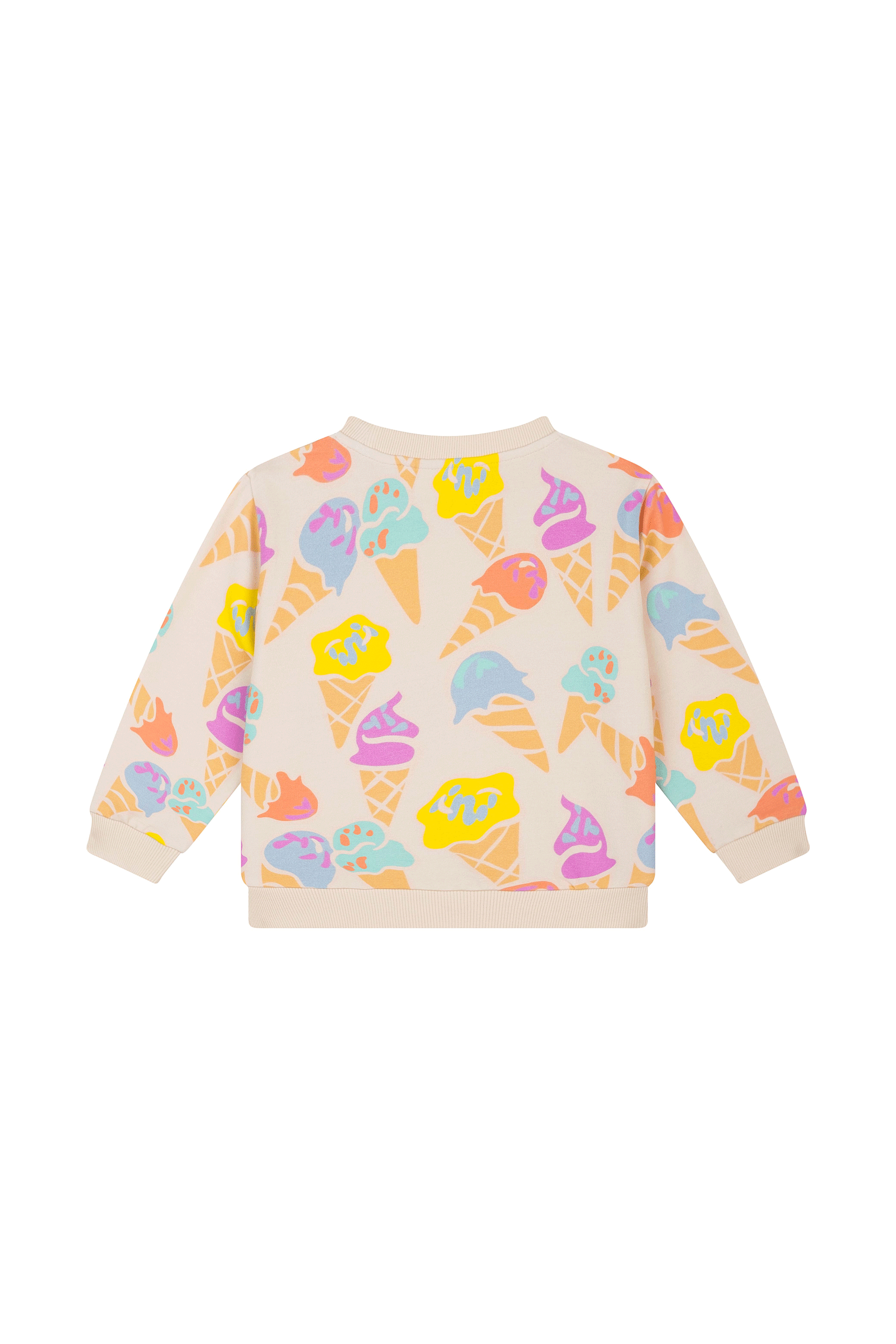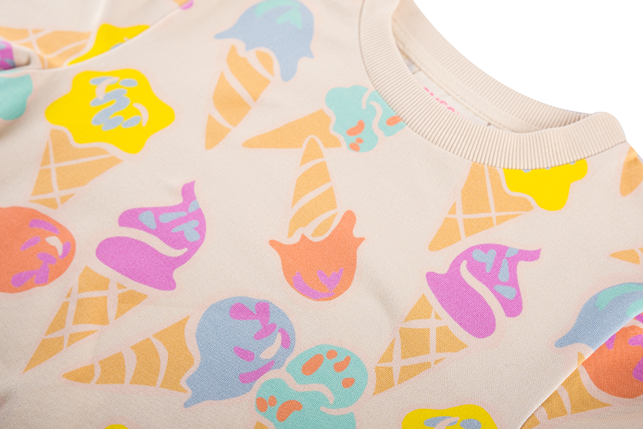 This sweatshirt looks like a little celebration of summer. The bright ice cream pattern gives it a fun, carefree feel that turns any outfit into something cheerful. It’s the kind of piece kids love because it makes them smile the moment they put it on. A sweet pick for anyone who enjoys a touch of playfulness.