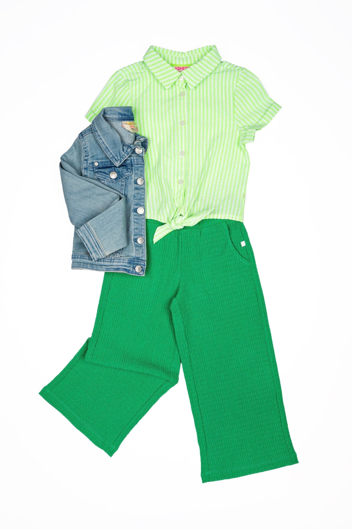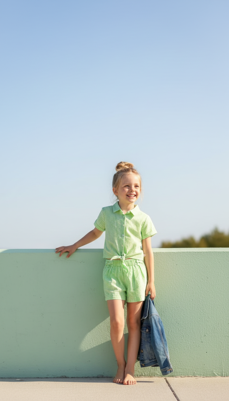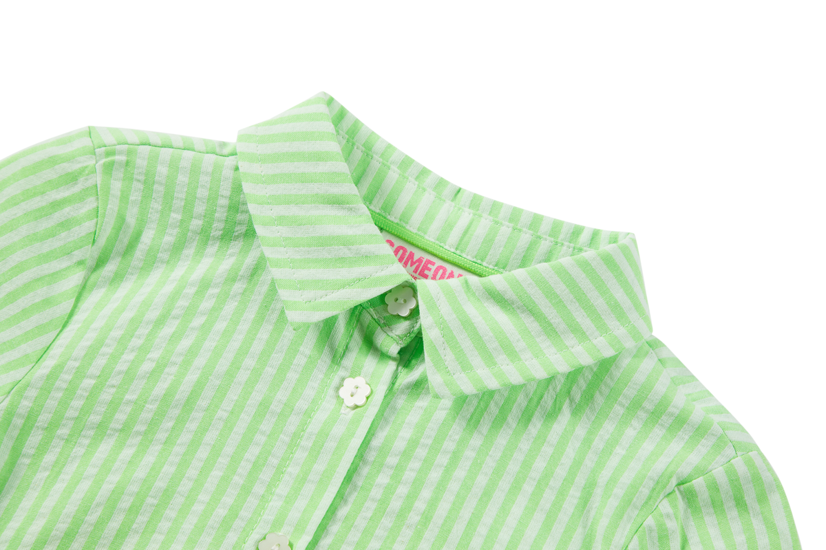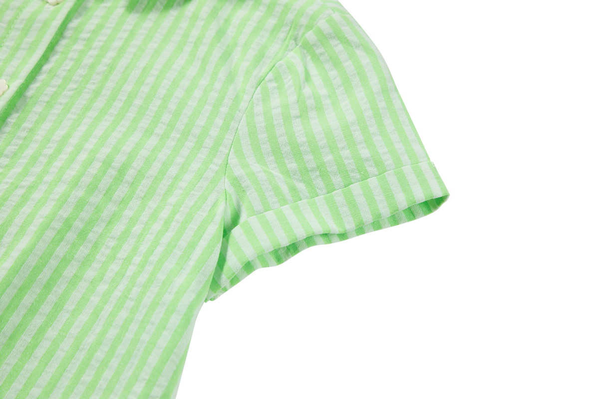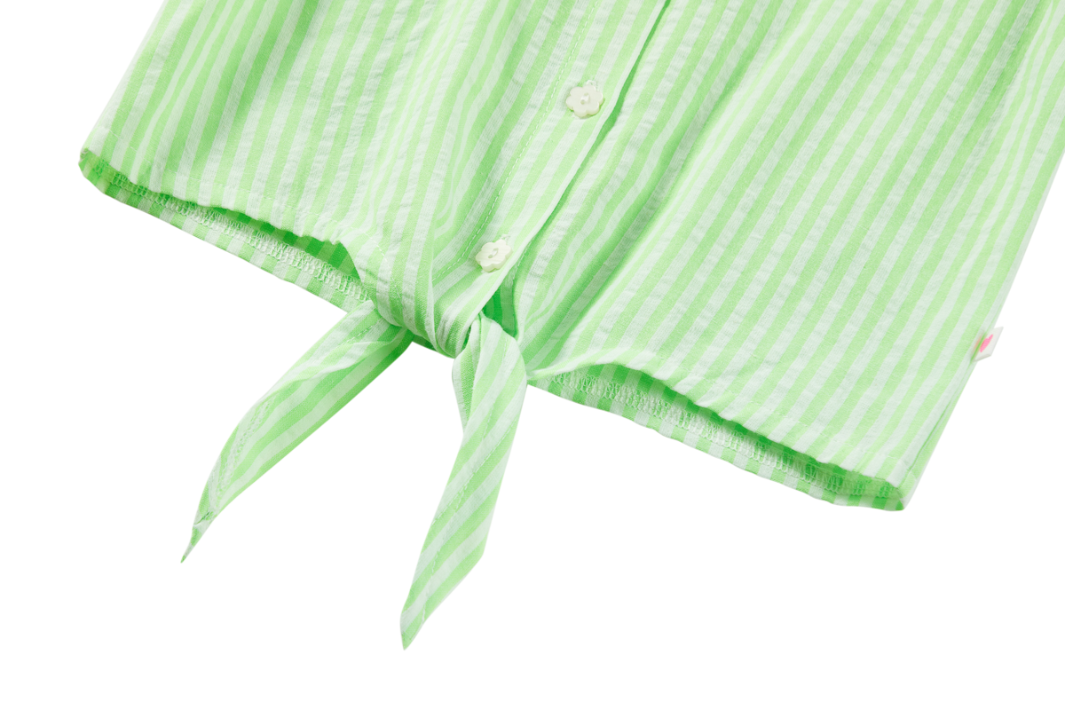 This light green blouse has an instant summer vibe. The tie-front detail adds a gentle, fun touch, while the short sleeves keep the look clean and effortless. Perfect for days when you want something airy that still feels put-together. Pair it with denim or a pastel short and you’re good to go.
