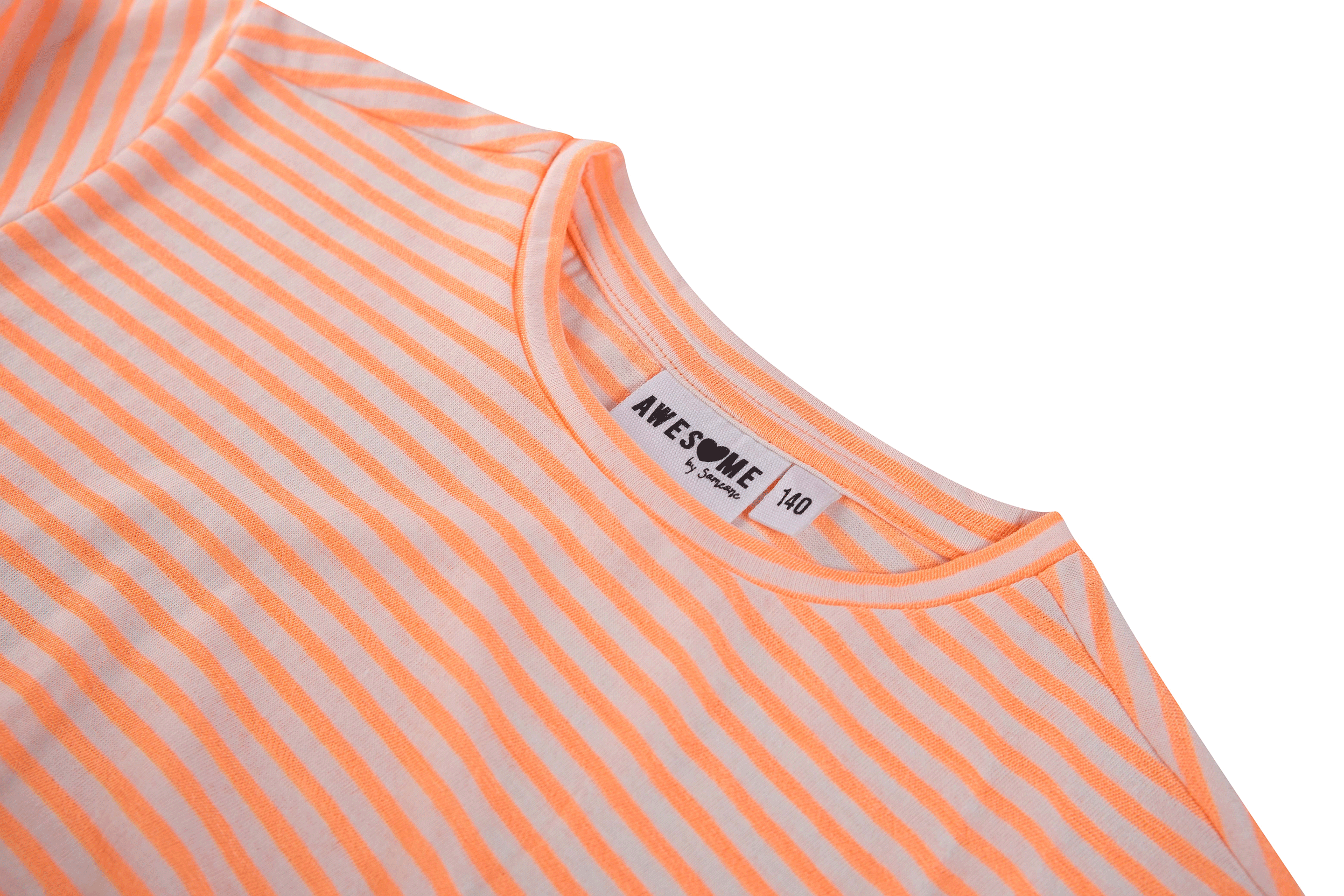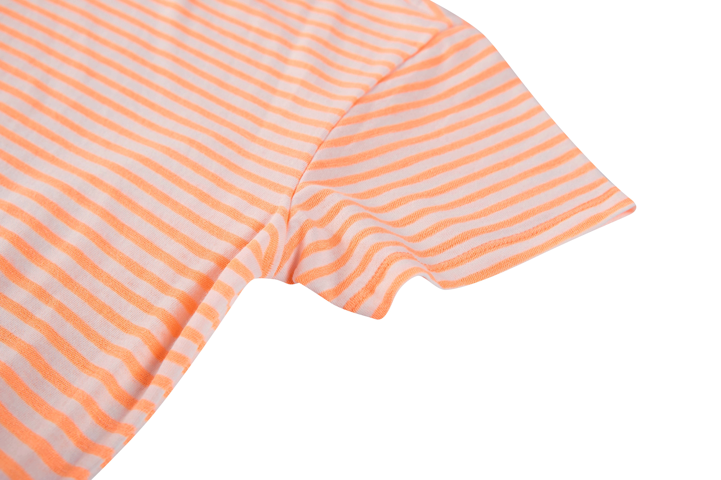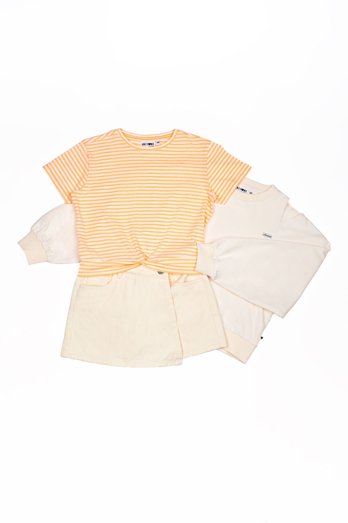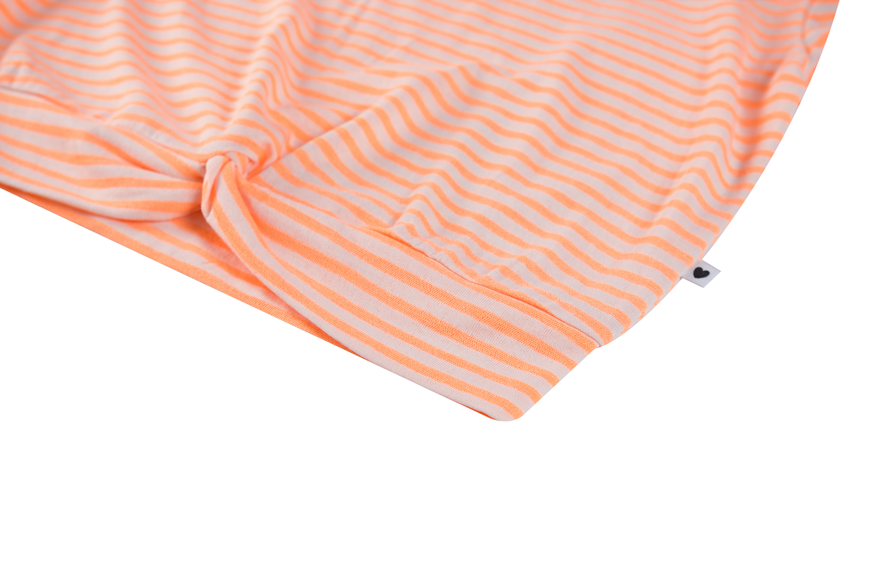 A fresh striped T-shirt with a light, summery look. The small knot detail at the bottom adds a playful touch and gives the fit an easy, relaxed vibe.