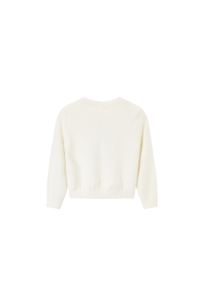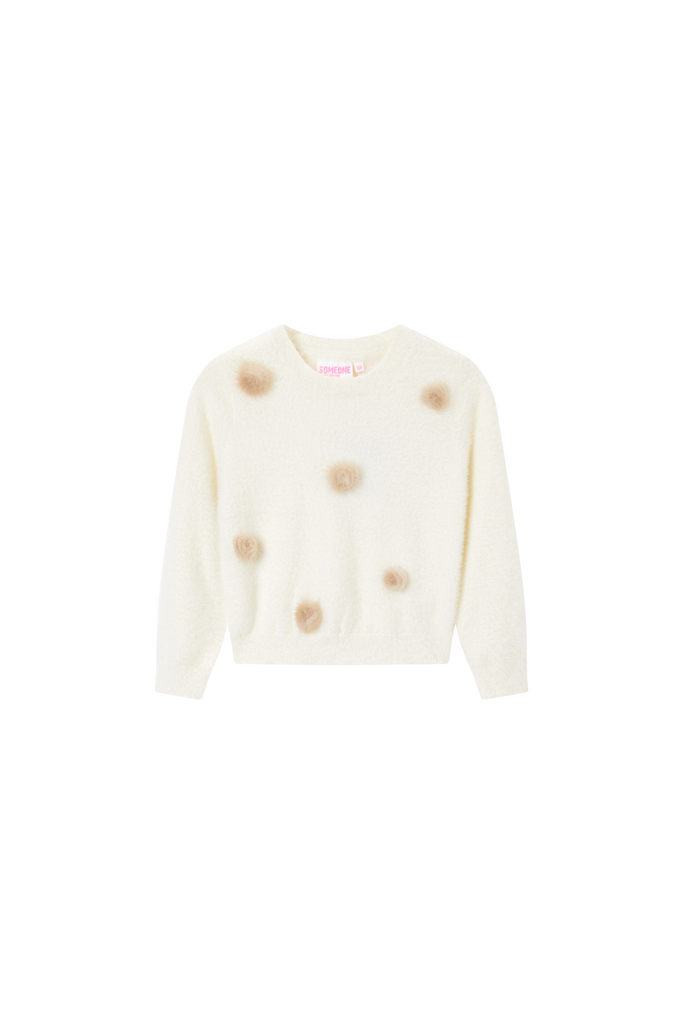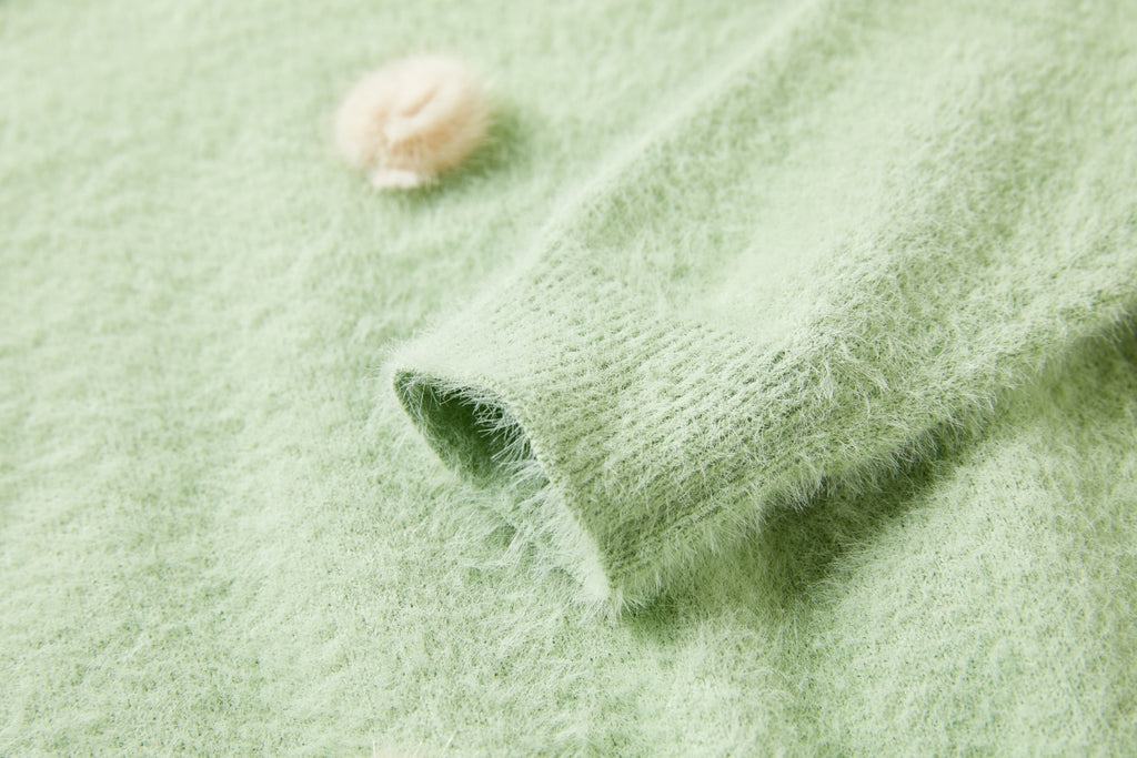 Deze mintgroene trui met speelse pompons is een vrolijke blikvanger die elke outfit meteen een charmant accent geeft. De pompons zijn speels over de voorkant verdeeld, waardoor de trui een luchtige en levendige uitstraling krijgt. Dit is een ideaal item voor kinderen die houden van een subtiele touch van fun in hun dagelijkse look, terwijl het ontwerp toch mooi en stijlvol blijft.