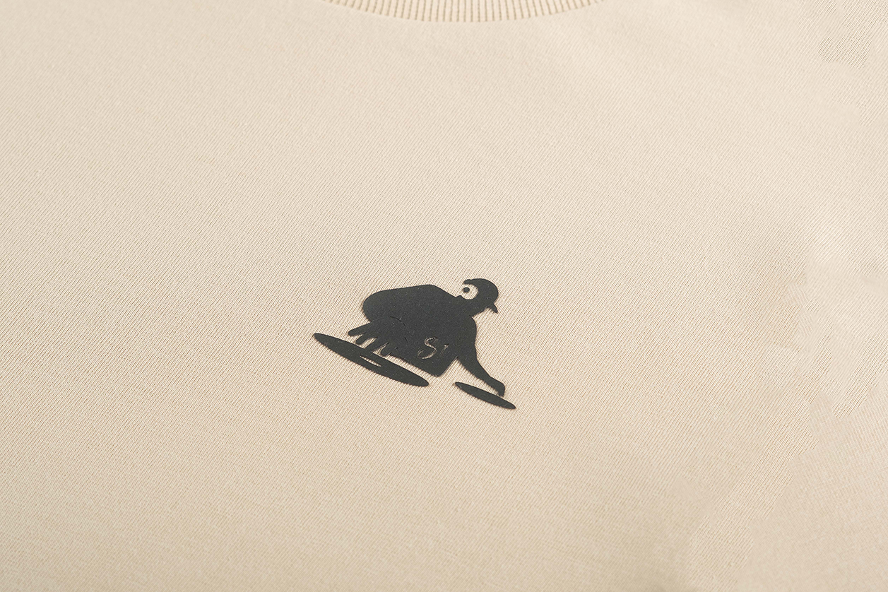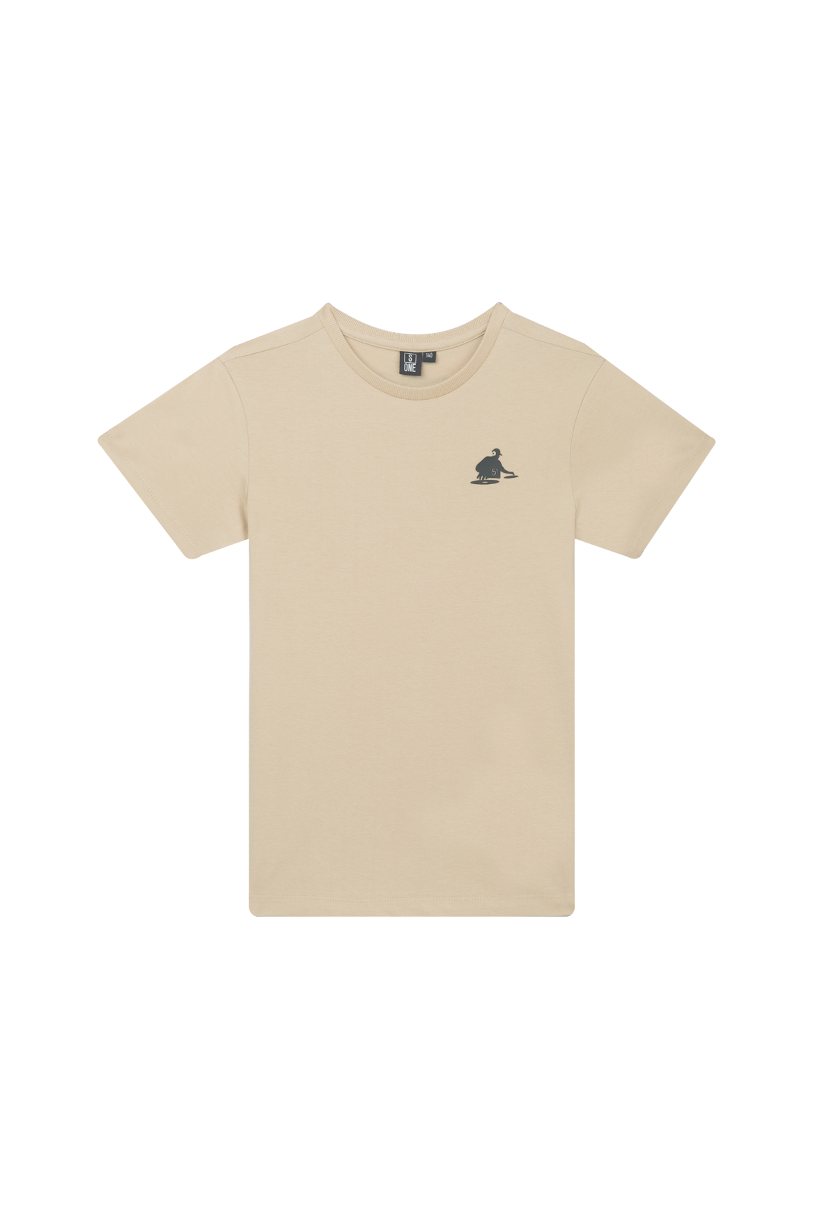 Dit zandkleurige T-shirt heeft een subtiele surfersprint op de borst voor een relaxed en avontuurlijk gevoel. De rechte pasvorm en eenvoudige look maken het een veelzijdig item dat makkelijk te combineren is. Een ideale basic voor elke dag met een speelse touch.