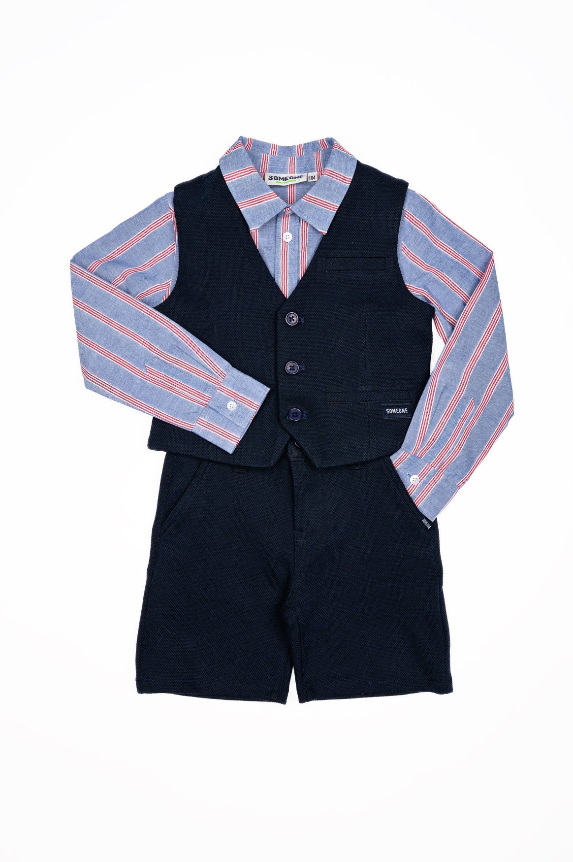 This navy boys’ short is a versatile must-have for the summer wardrobe. Featuring side pockets and a button closure, it is suitable for both special occasions and everyday wear. Pair it with a shirt and vest for a smart look, or with a T-shirt for a casual outfit.