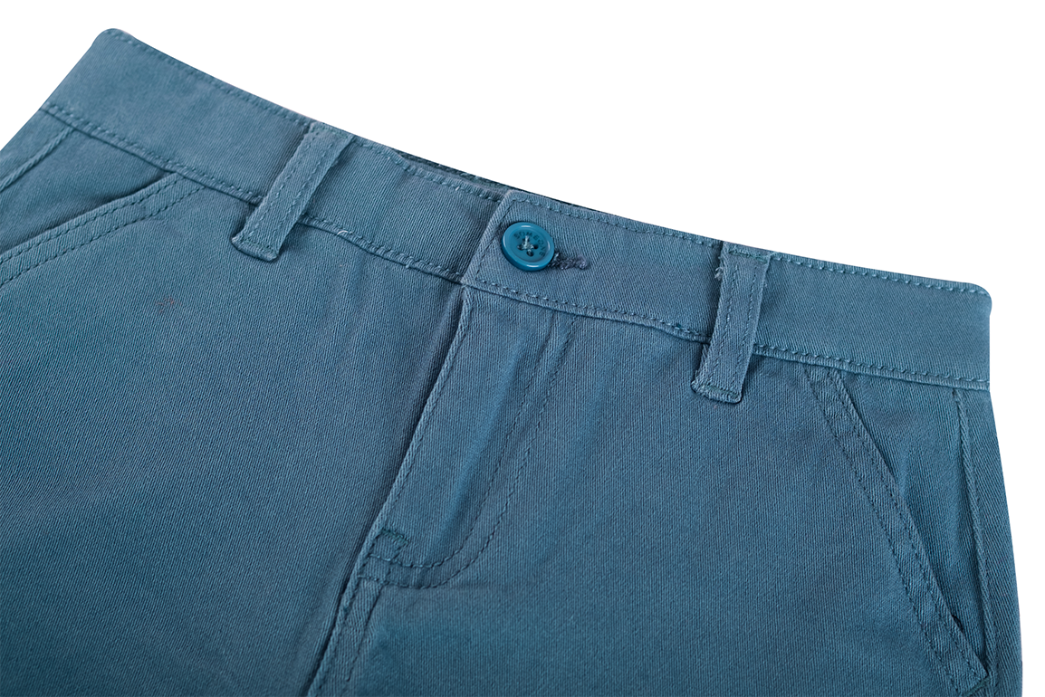 This blue boys’ short is a timeless basic that’s easy to style. Featuring a comfortable fit, side pockets and button closure, this short is perfect for warm summer days and suitable for both casual and smart looks.