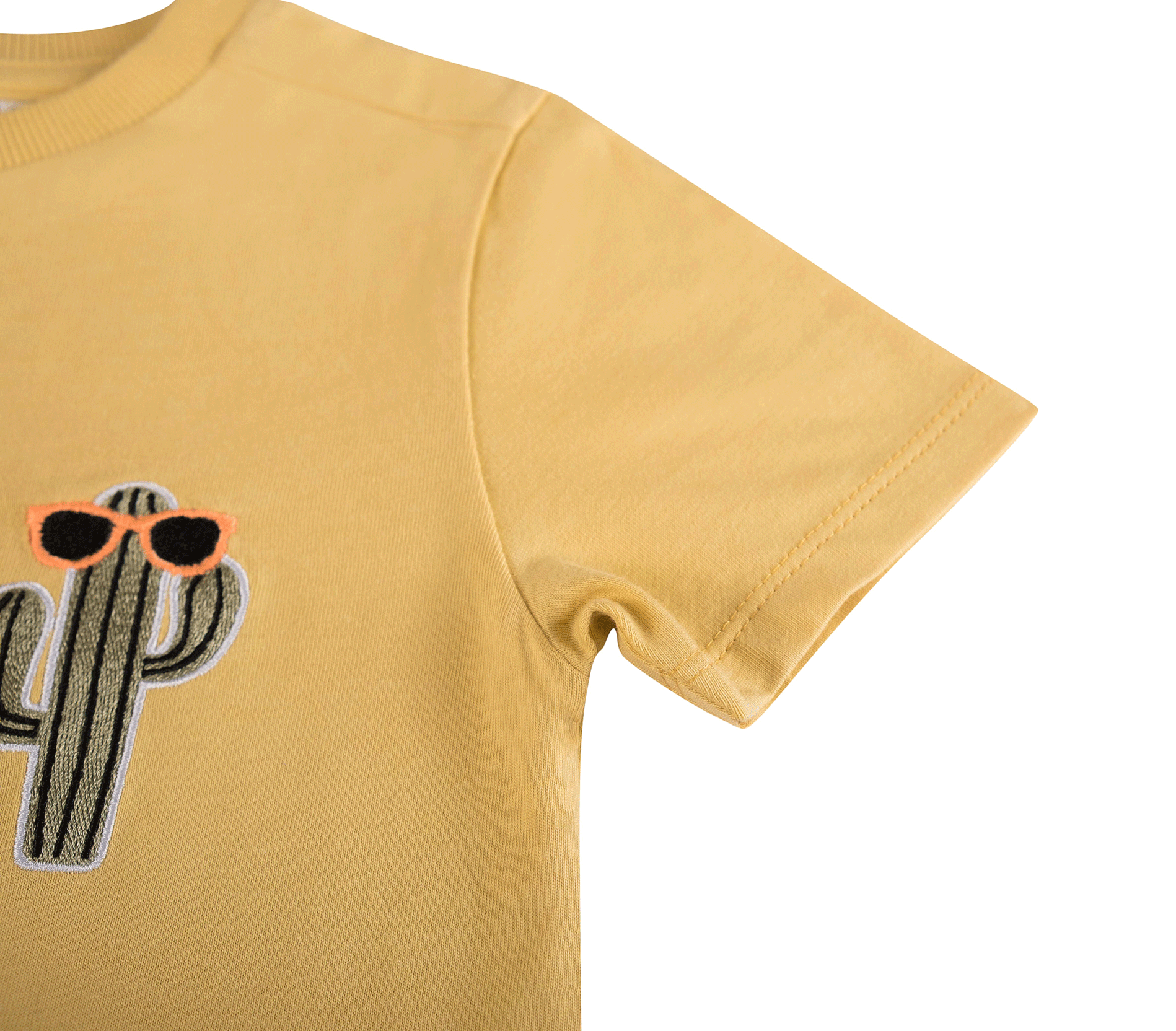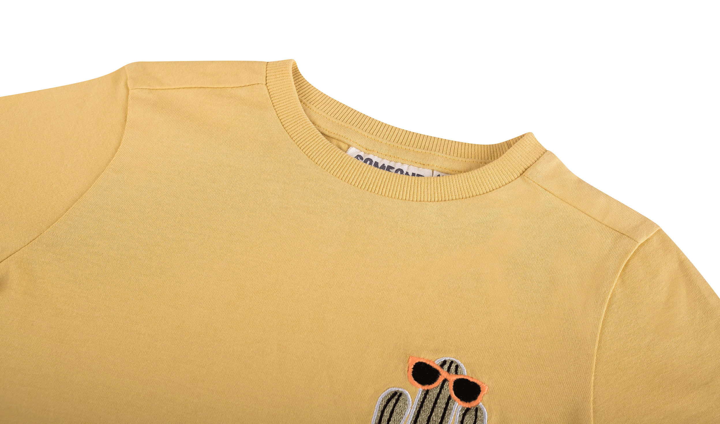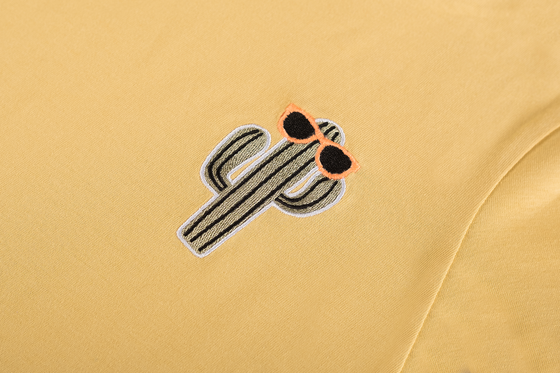 Dit vrolijke gele T-shirt heeft een kleine geborduurde cactus op de borst, compleet met een zonnebril voor een speelse zomerse look. De korte mouwen en het eenvoudige silhouet maken het ideaal voor dagelijks gebruik. Een luchtig en leuk shirt dat elke outfit meteen een zonnige touch geeft.