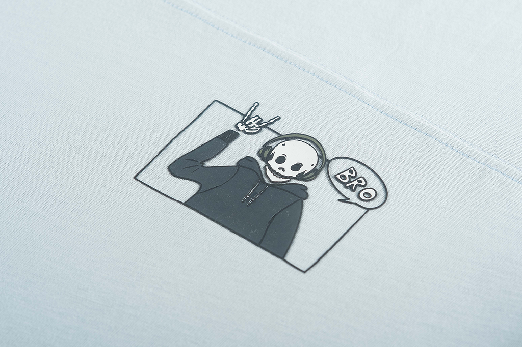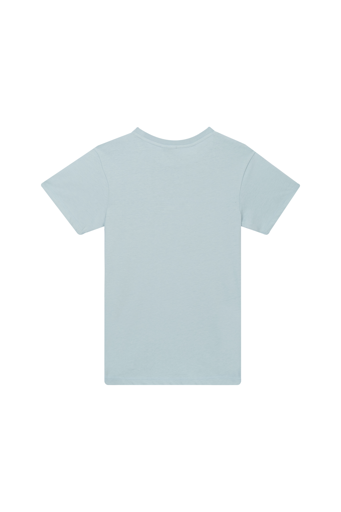 Dit lichtblauwe T-shirt heeft een kleine, speelse print op de borst die een unieke en grappige touch geeft. Het is een veelzijdig item dat makkelijk te combineren is en perfect past bij dagelijkse outfits.