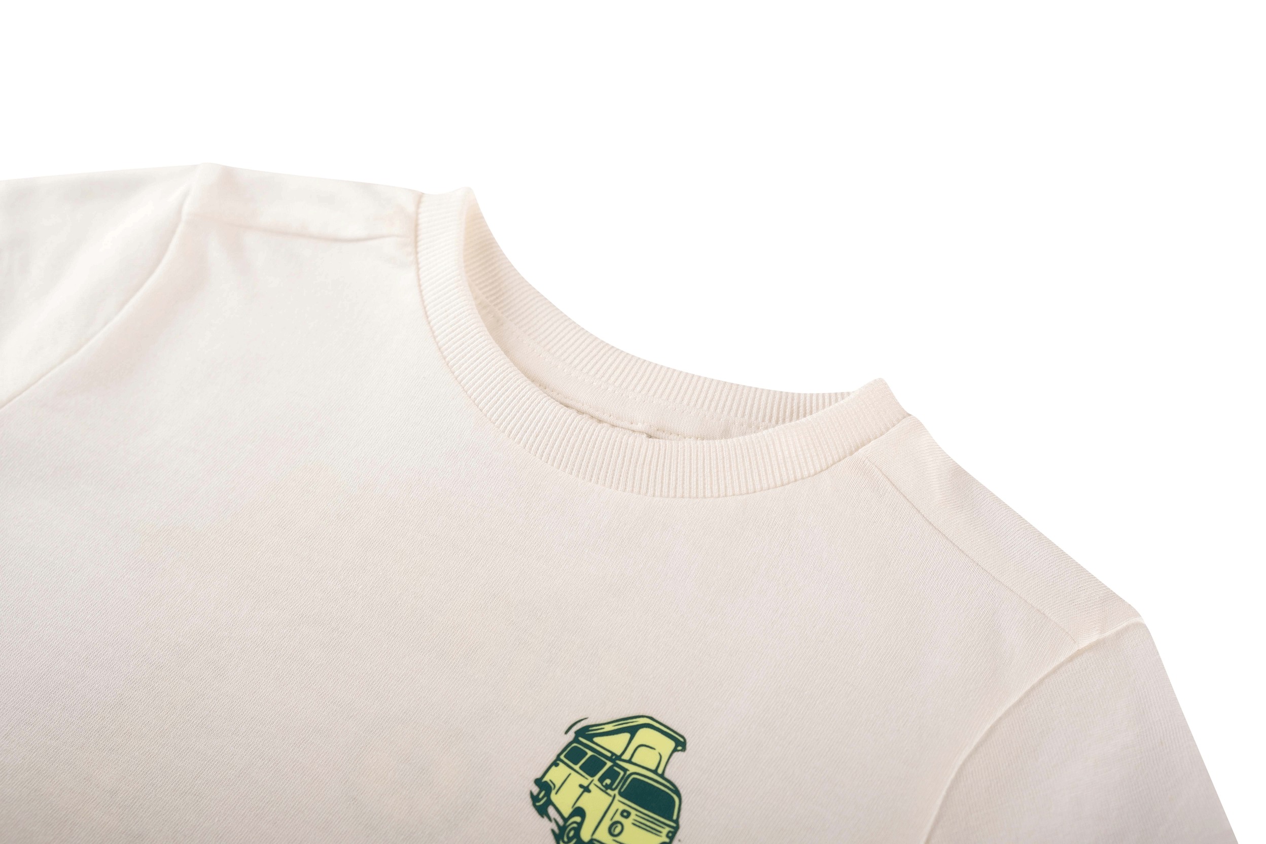 Dit T-shirt heeft een minimalistische look met een kleine camperprint op de borst voor een speels detail. Het eenvoudige ontwerp maakt het ideaal om dagelijks te dragen. Een subtiele eyecatcher die elke outfit zomers en vrolijk maakt.