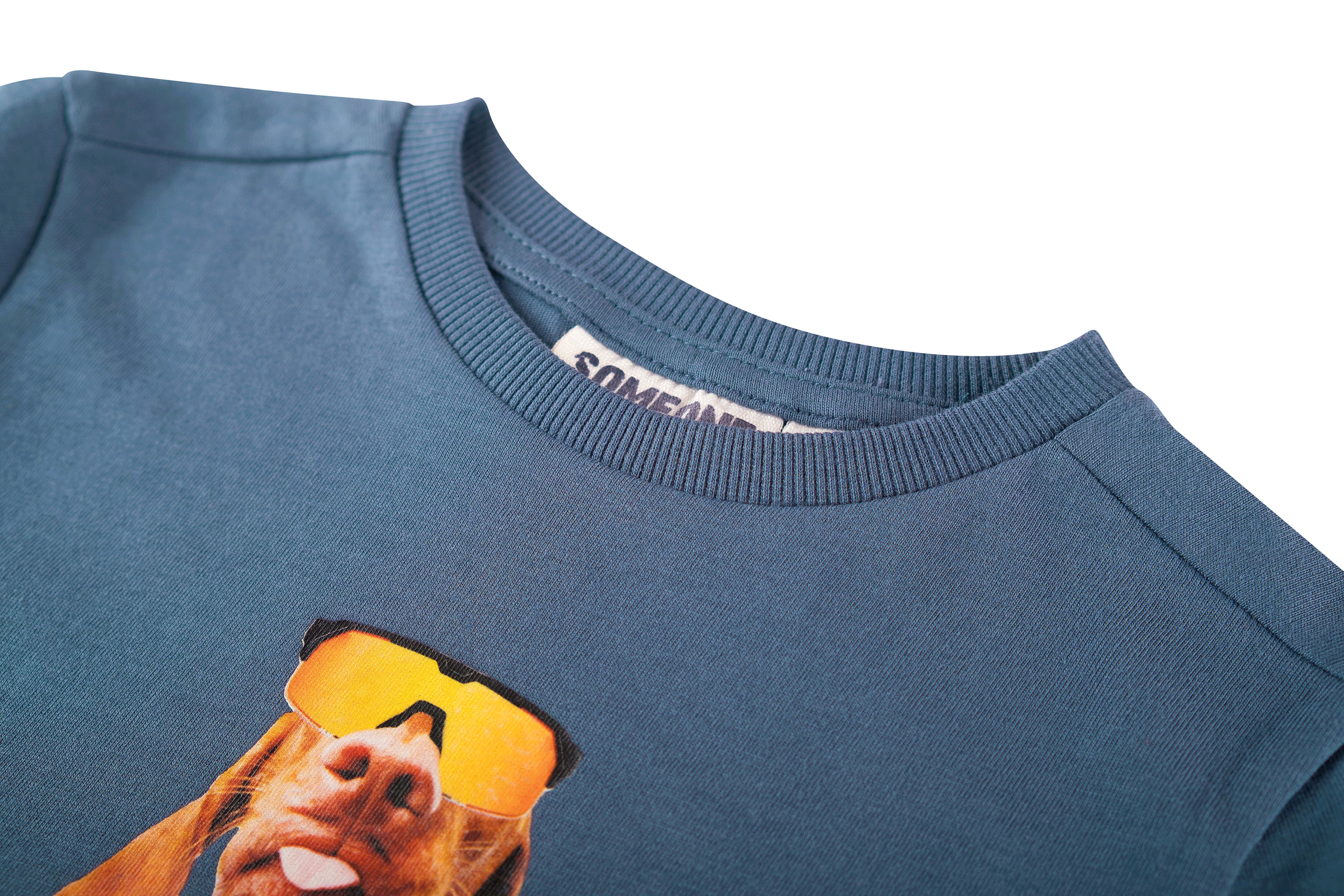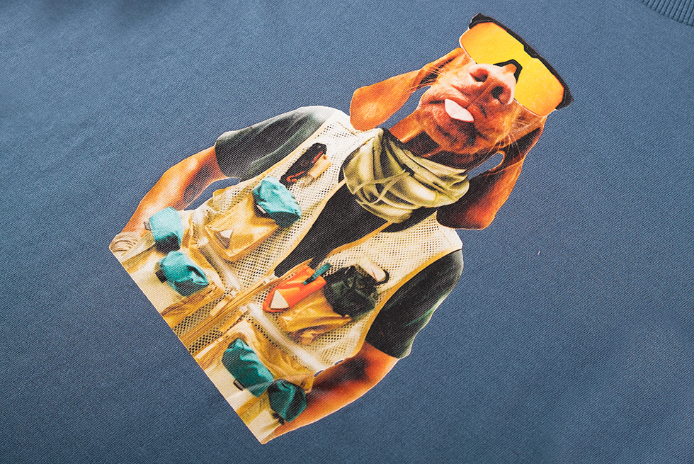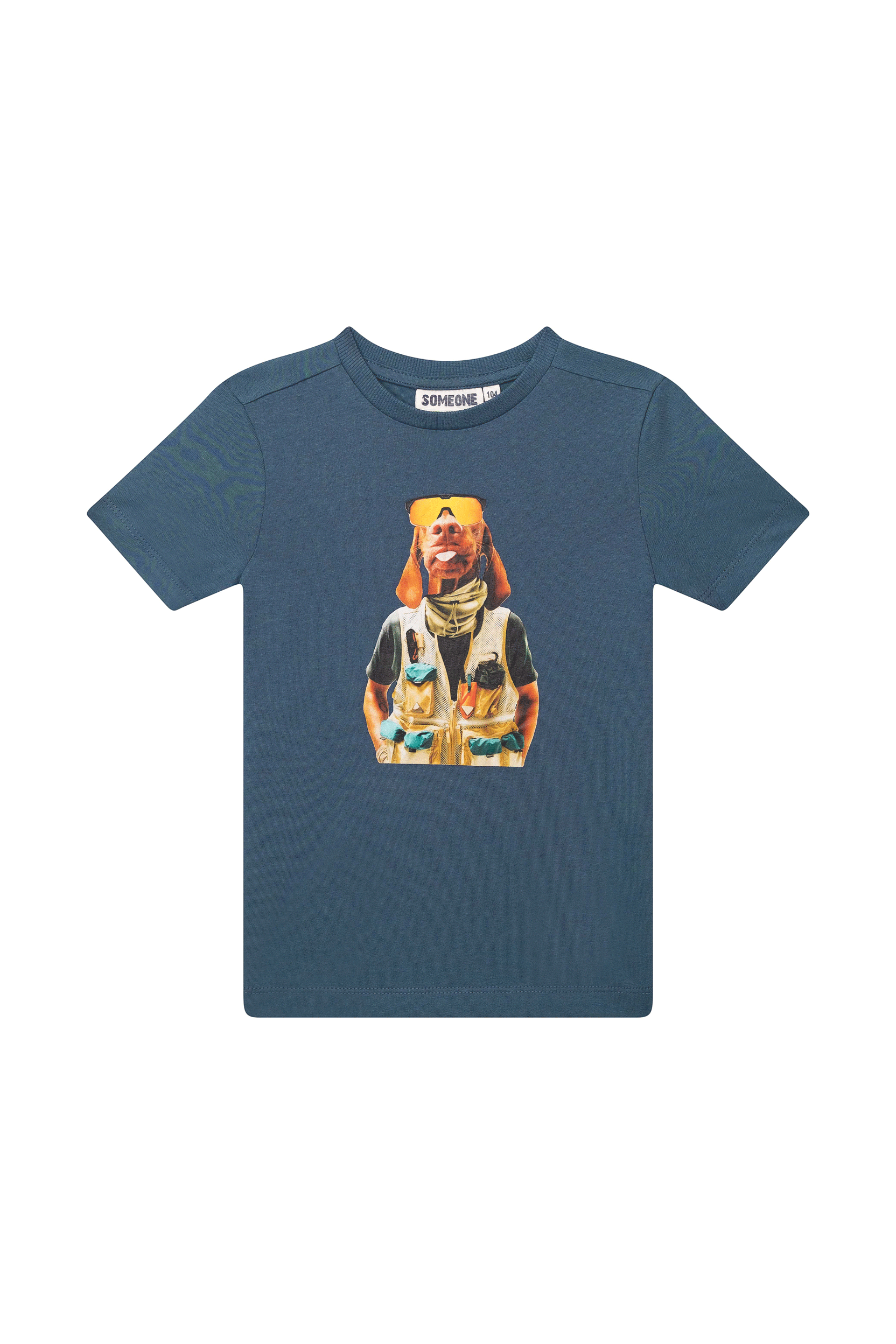 Dit T-shirt heeft een coole print van een hond in een avontuurlijke outfit, wat zorgt voor een speels en stoer effect. De diepe blauwe kleur maakt het makkelijk te combineren met elke outfit. Het is een ideale keuze voor kinderen die houden van grappige en unieke details.