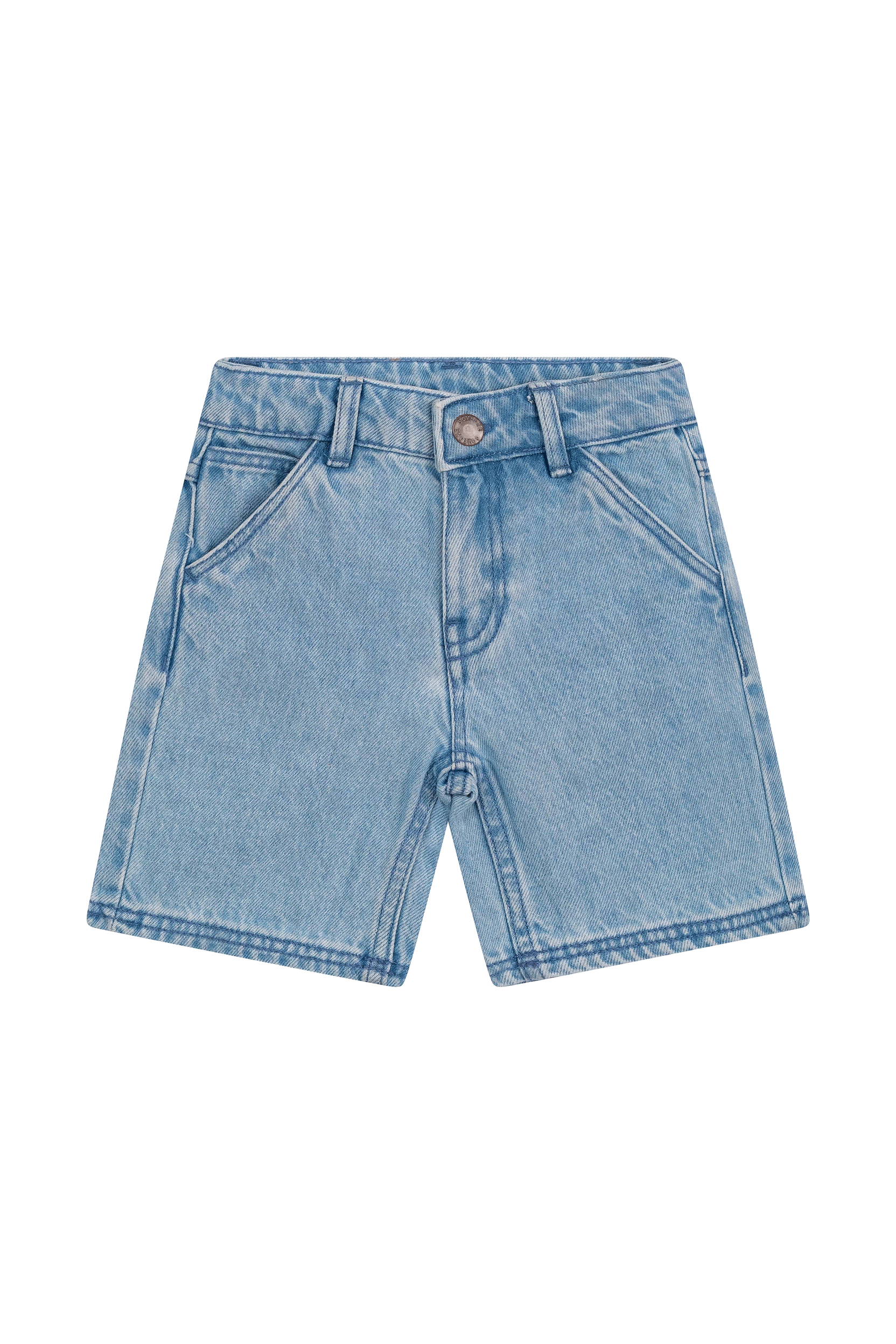 Deze lichtblauwe denimshort heeft een tijdloze look met een frisse, zomerse uitstraling. De korte broek is ontworpen met klassieke details zoals steekzakken, een verstelbare taille en een stevige knoopsluiting. Dankzij de rechte pasvorm is hij ideaal voor dagelijkse avonturen, buiten spelen of vakantie-uitstapjes. Een veelzijdig basisstuk dat moeiteloos met elke outfit gecombineerd kan worden.