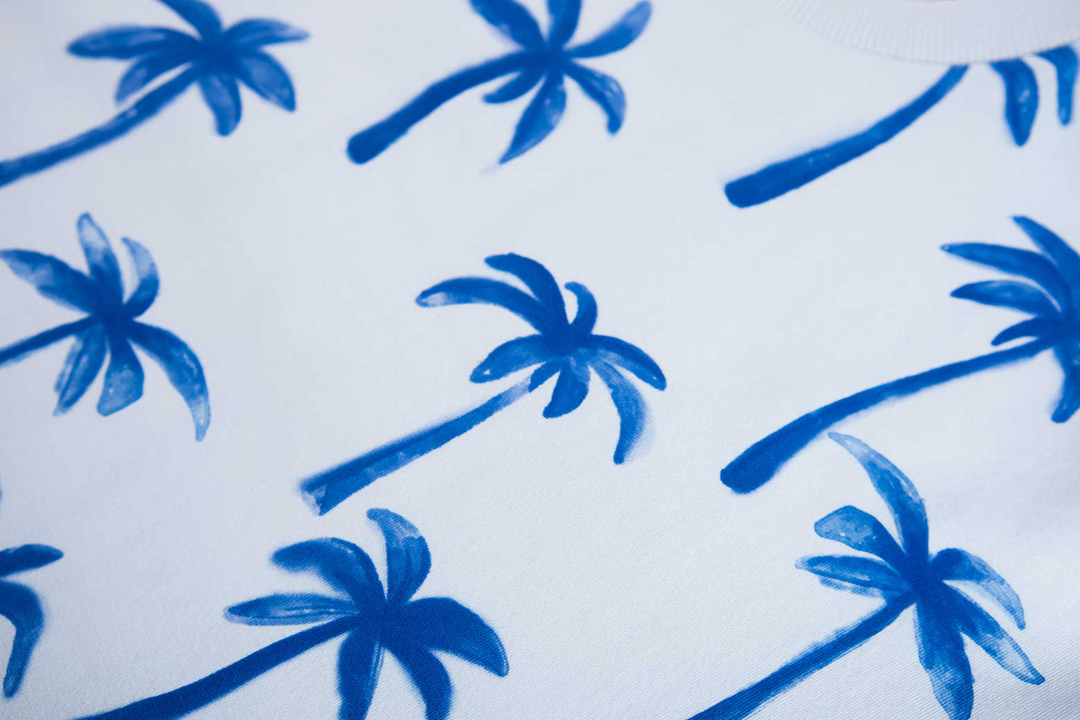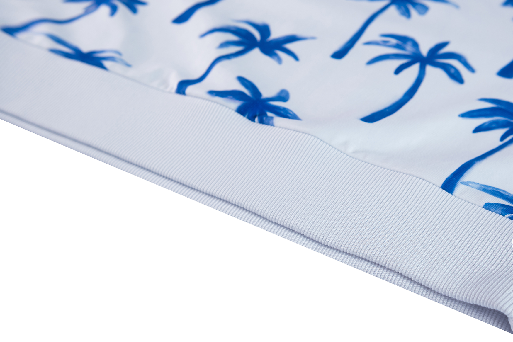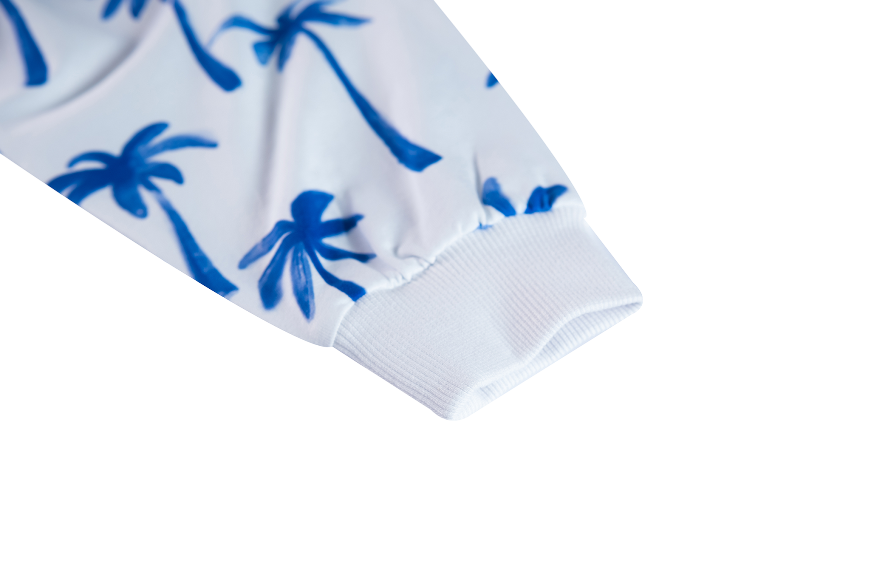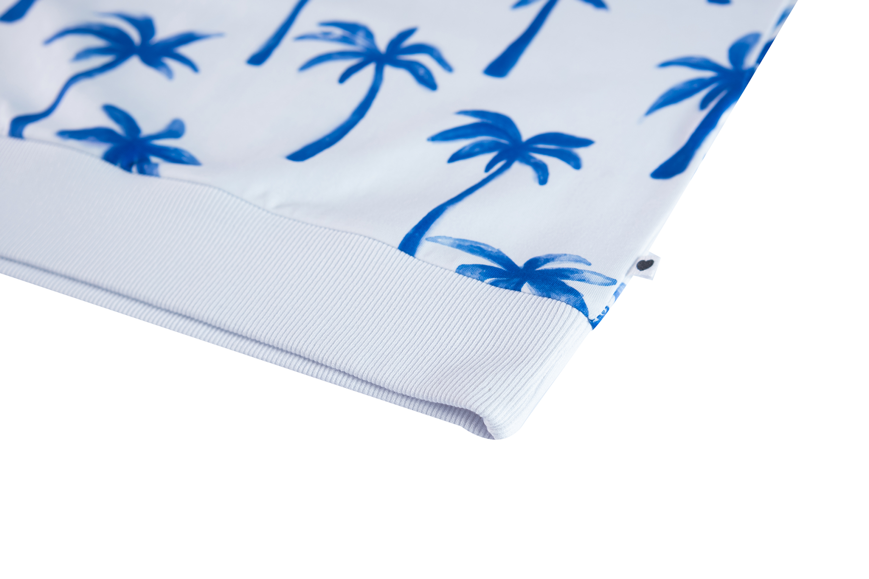 Deze witte trui valt meteen op door de speelse print met felblauwe palmbomen. Het model heeft een rechte pasvorm met een brede boord onderaan, waardoor het een frisse en moderne look krijgt. De all-over print geeft het geheel een vrolijke, zomerse uitstraling – perfect voor een outfit die nét wat extra energie heeft.