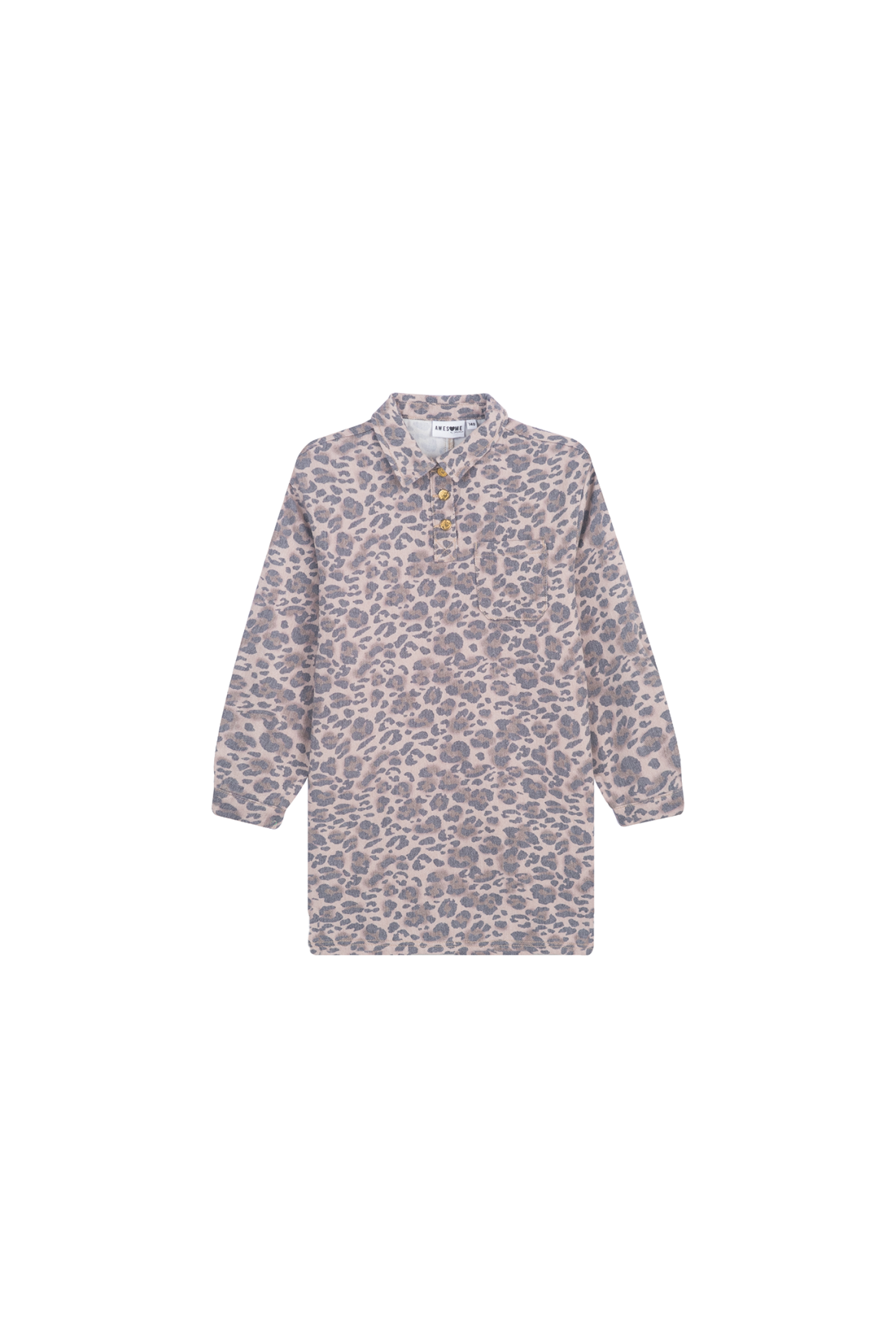 Deze shirtjurk heeft een speels all-over dessin dat meteen in het oog springt. De klassieke kraag en knoopsluiting aan de voorkant geven het model een nette, polo-achtige uitstraling, terwijl de relaxte pasvorm het geheel heerlijk draagbaar maakt. Ideaal voor zowel casual dagen als momenten waarop je nét iets extra’s wilt — combineer met sneakers of laarzen voor een complete look.