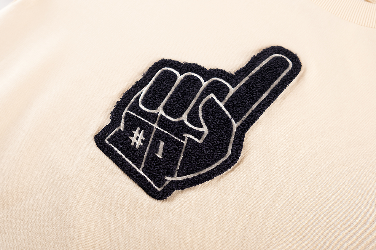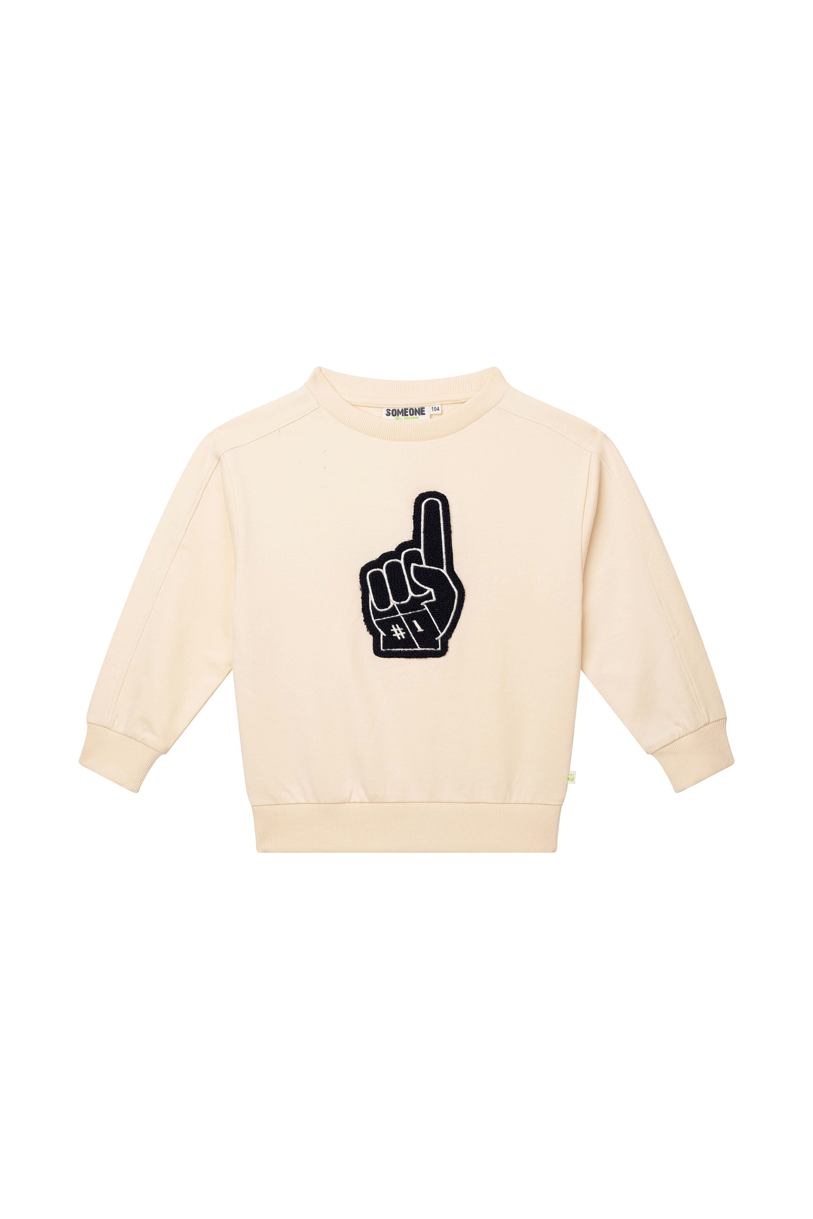 This sweater stands out with its bold #1 foam-hand design on the chest, making every little champion feel like the star of the day. The light tone and playful graphic give it a fresh, sporty vibe. A great choice for kids who love to show their excitement, whether they’re playing, going to school, or enjoying a sports day.