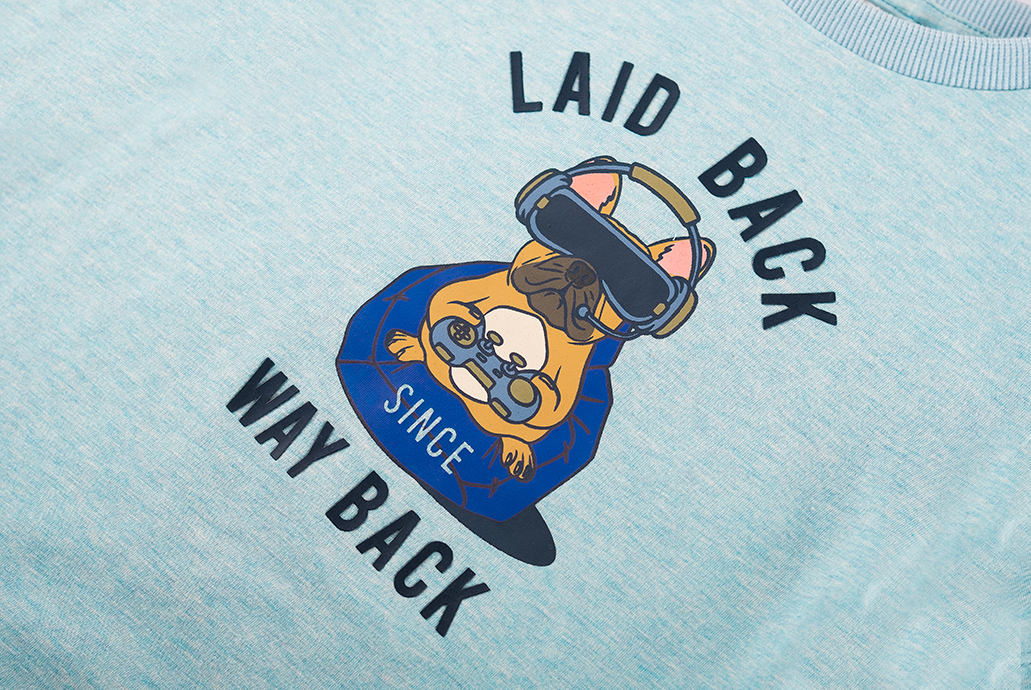 Dit lichtblauwe T-shirt heeft een speelse print van een hond met een VR-bril en de tekst “Laid Back Since Way Back”. De relaxte uitstraling maakt het een ideaal shirt voor elke dag. Het is een vrolijke toevoeging aan elke casual outfit en zorgt meteen voor een coole, ontspannen vibe.