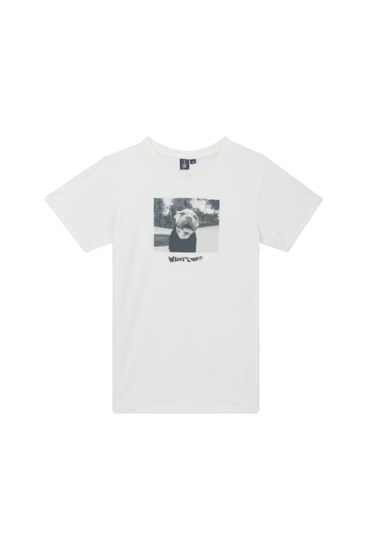 Dit T-shirt heeft een speelse foto-print van een hond met daaronder de tekst “WHAT’S UP?”, waardoor het een luchtige en vrolijke uitstraling krijgt. Het ontwerp combineert eenvoud met een grappig detail, waardoor het perfect is voor dagelijkse outfits met een knipoog.
