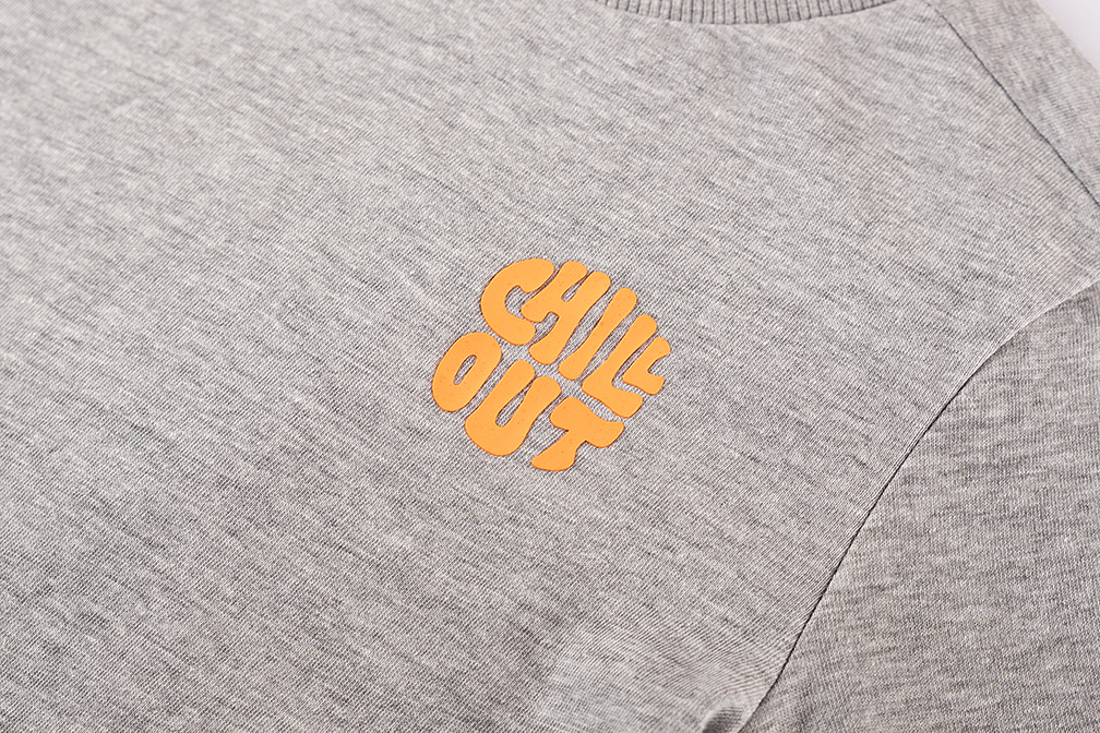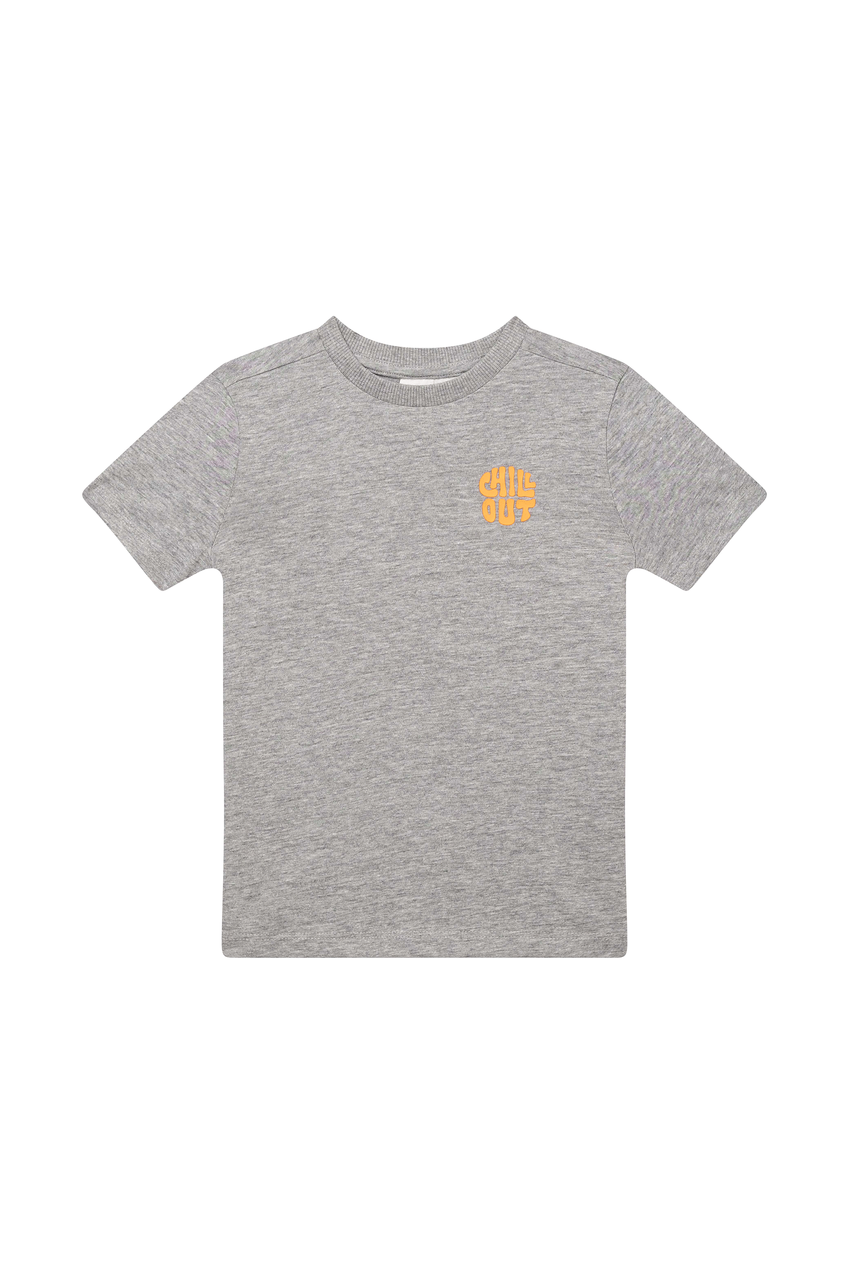 Dit grijze T-shirt heeft een tijdloze, casual uitstraling en is afgewerkt met een speelse “Chill Out”-print links op de borst. De korte mouwen en klassieke ronde hals maken het een comfortabele keuze voor elke dag. Het subtiele design past makkelijk bij verschillende outfits en geeft een relaxte touch aan elke look.
