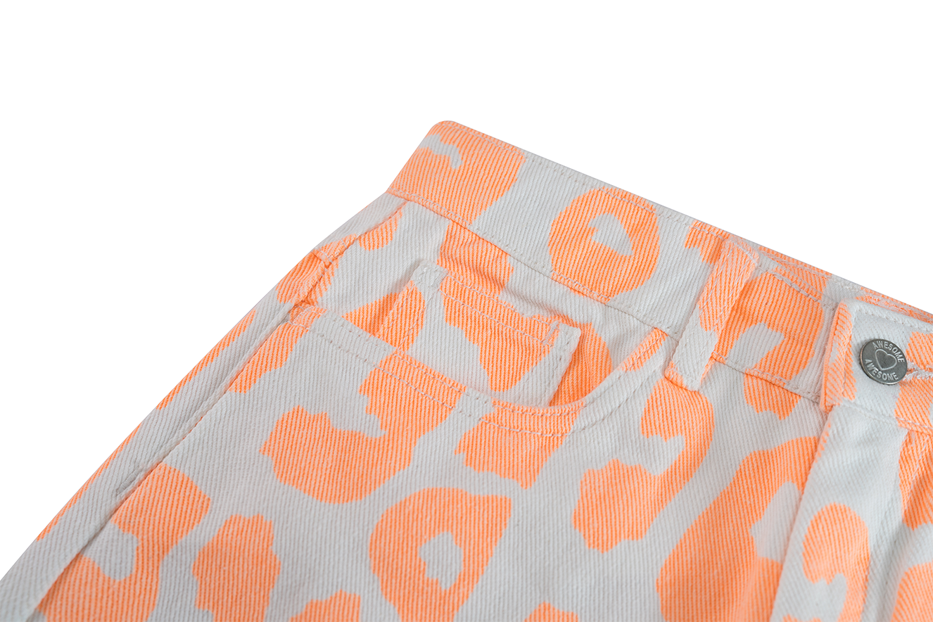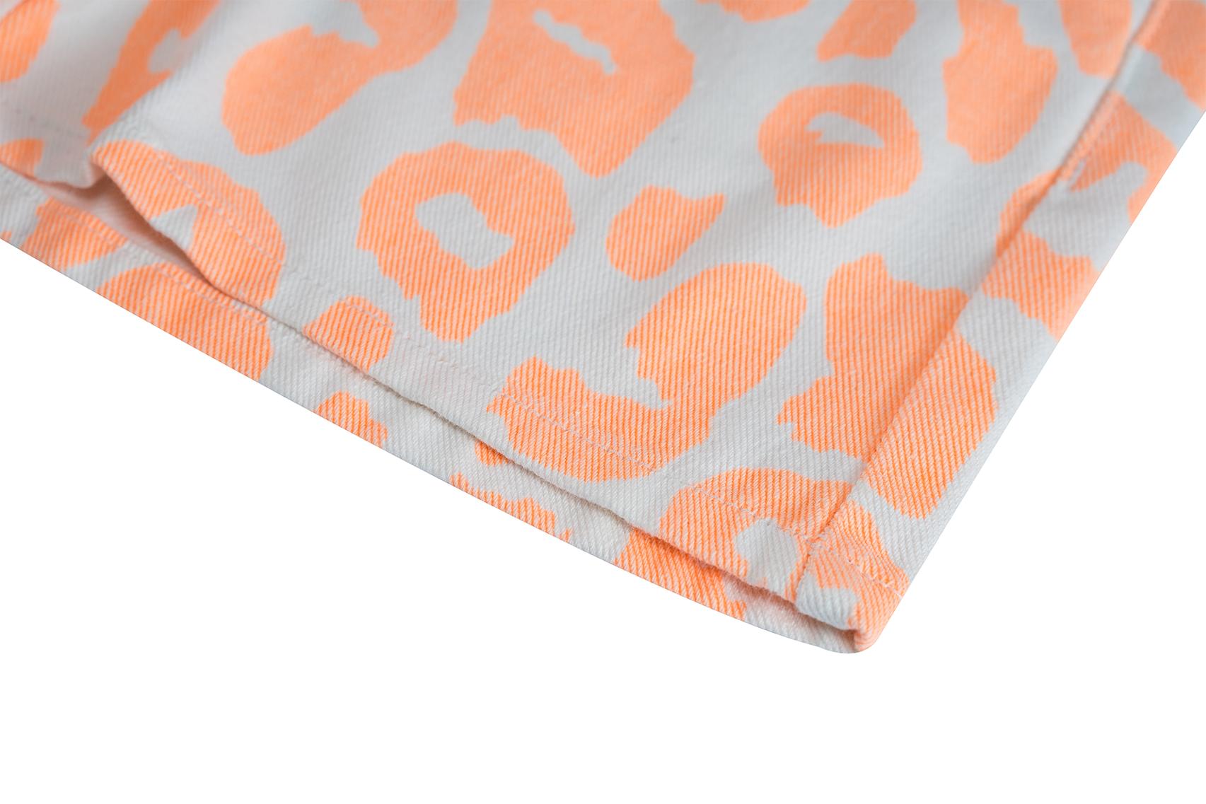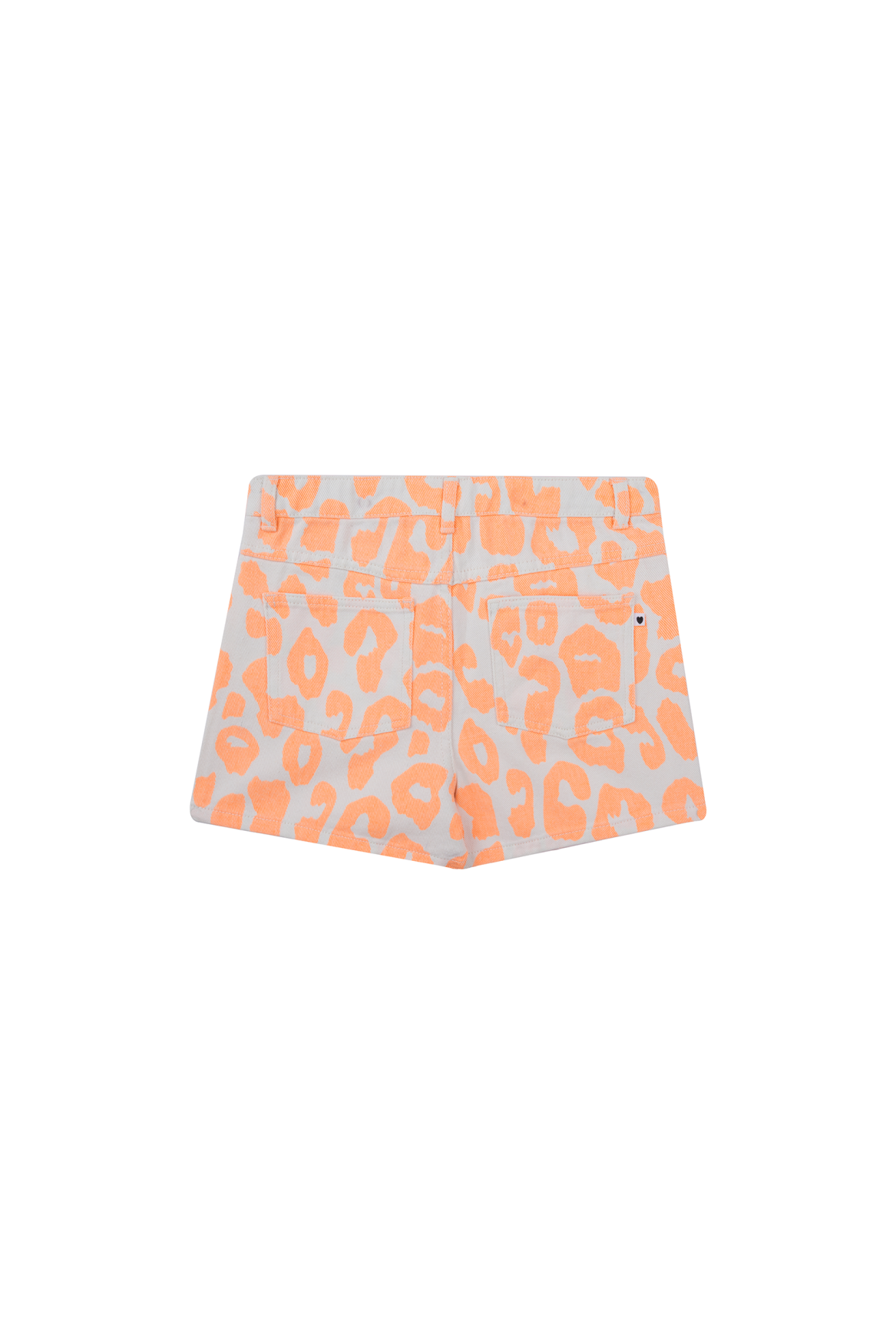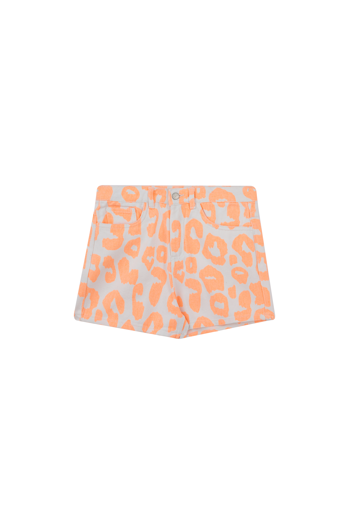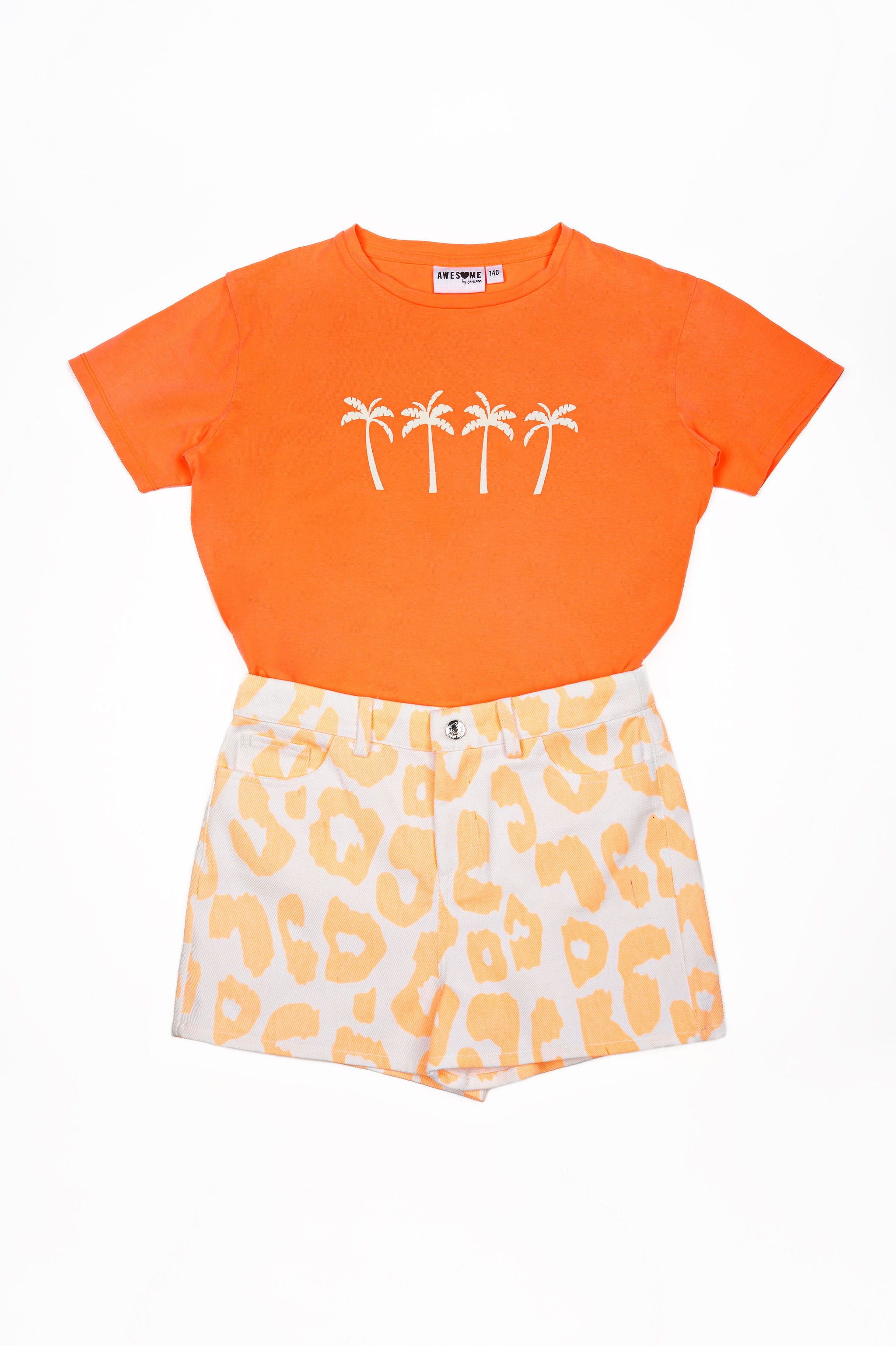 Een echte zomerlook vol kleur en vrolijkheid! Het felle oranje T-shirt met palmboomprint straalt direct vakantiegevoel uit. In combinatie met de lichte short met speels luipaardmotief ontstaat een frisse, opvallende outfit die perfect is voor zonnige dagen, stranduitjes of gewoon een fijne, casual dag. Een set die meteen een glimlach geeft!