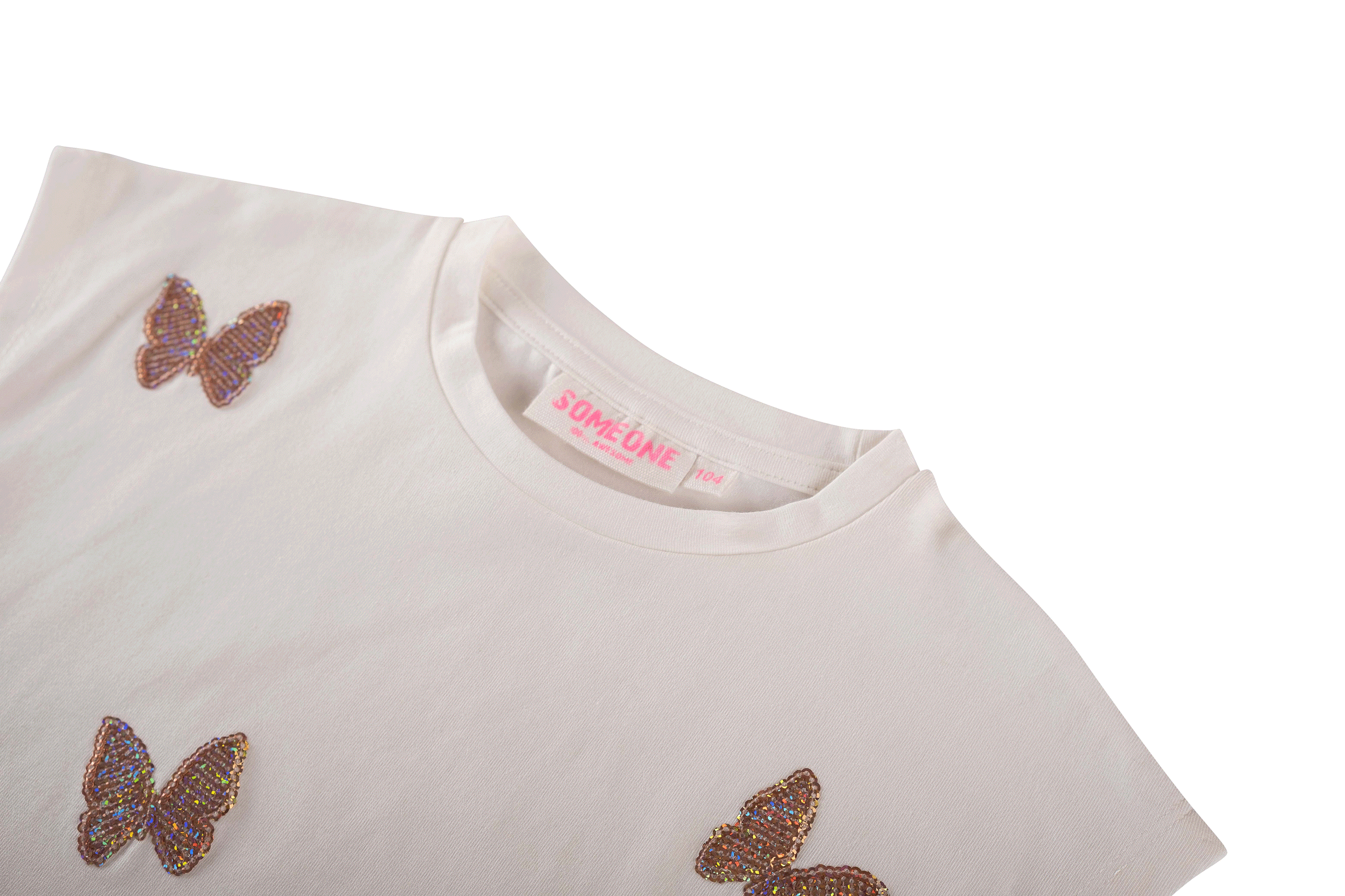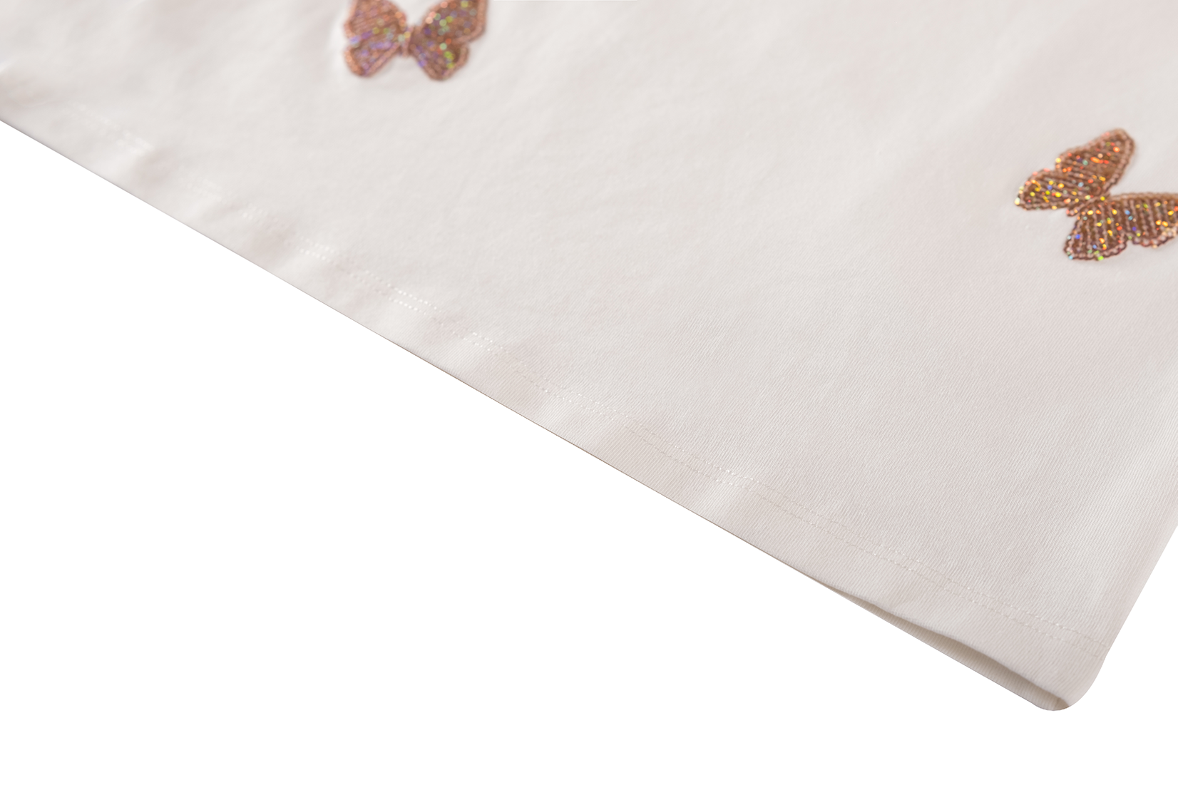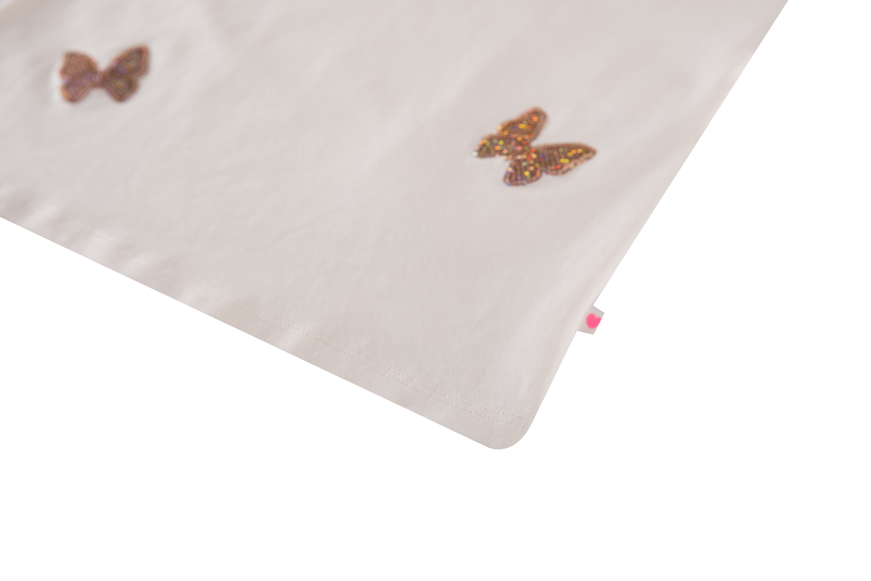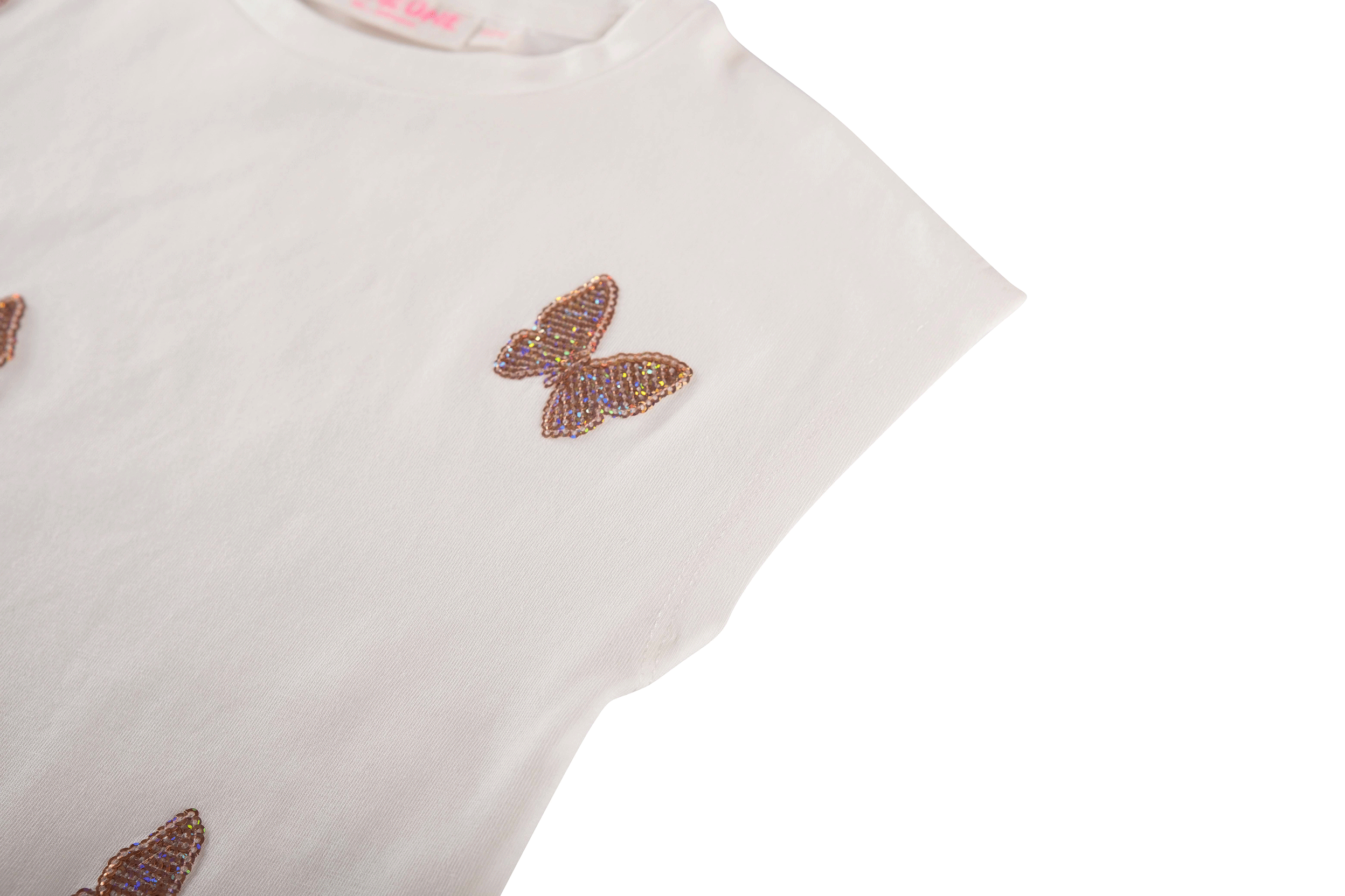 Let your little one shine in this cute white T-shirt with sparkling butterfly details. The playful design adds a trendy touch, making it perfect for school, parties or everyday adventures.
