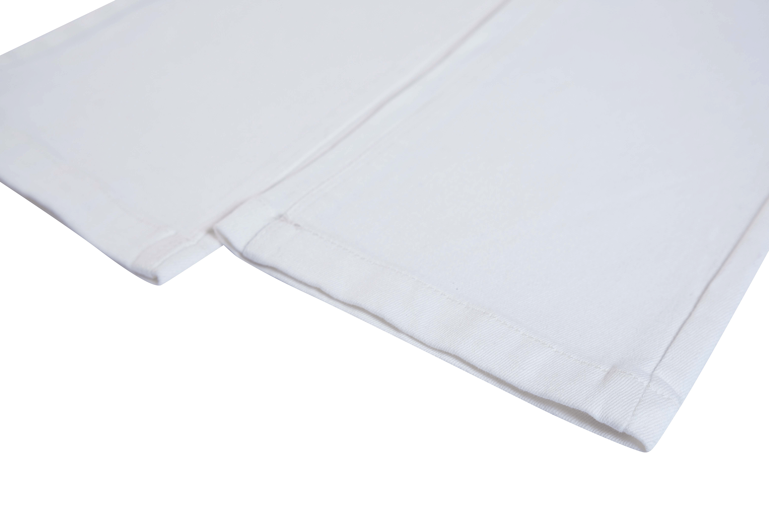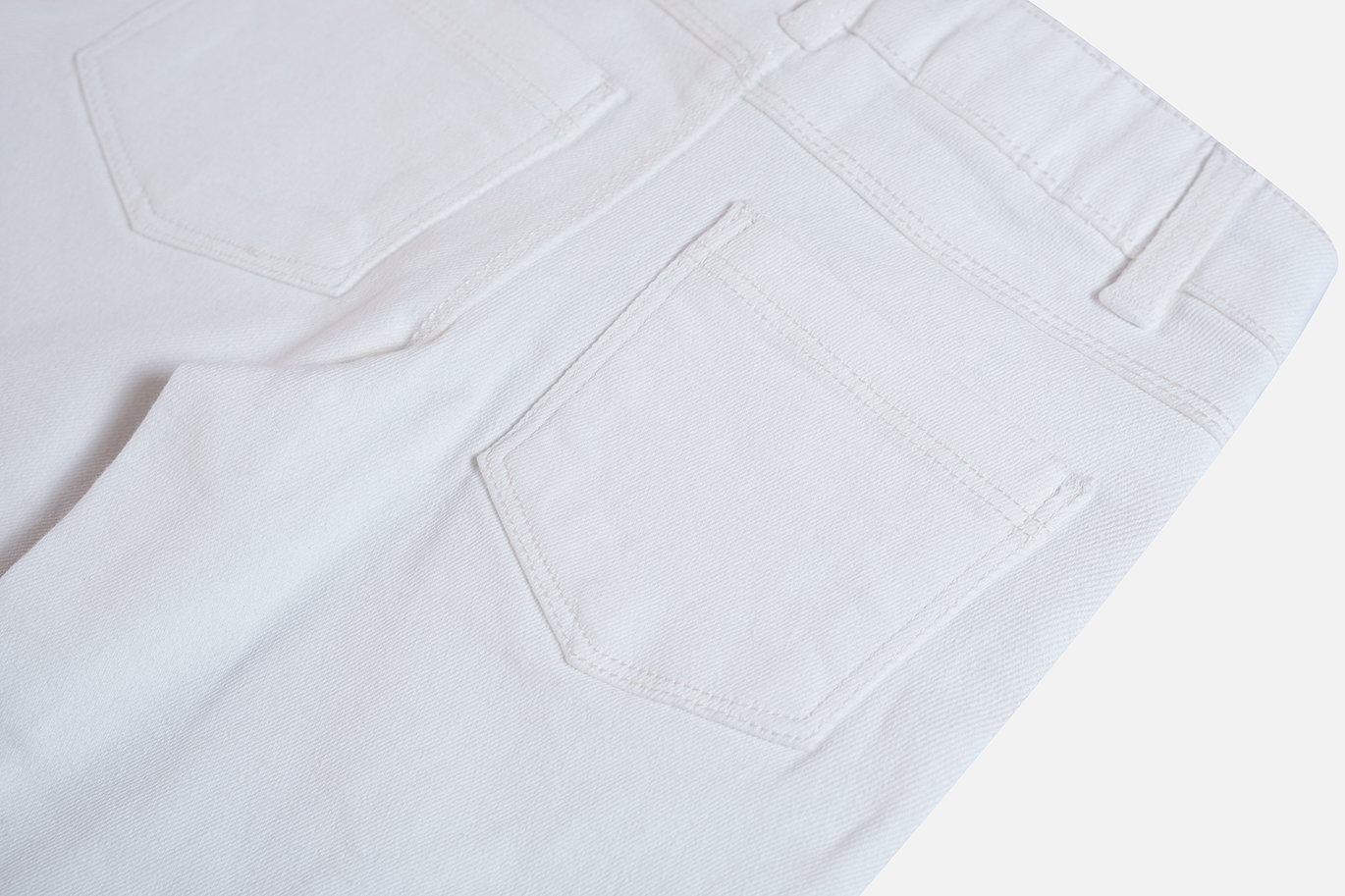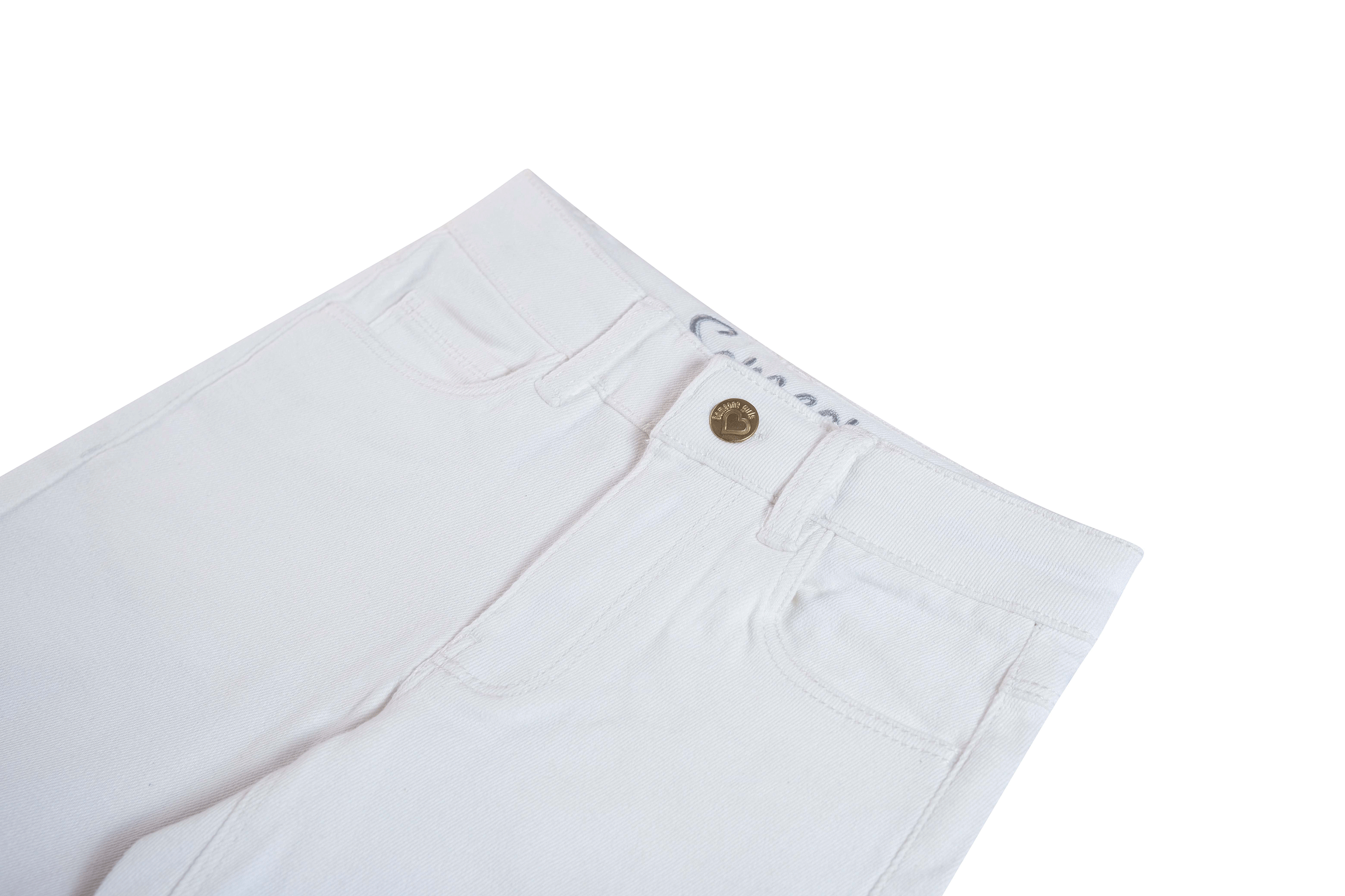Trendy kids’ trousers in white denim. Designed with a straight, slightly wide fit for comfort and easy styling. Features classic jeans details such as side pockets, back pockets, and a button closure. Perfect for a fresh spring and summer outfit.