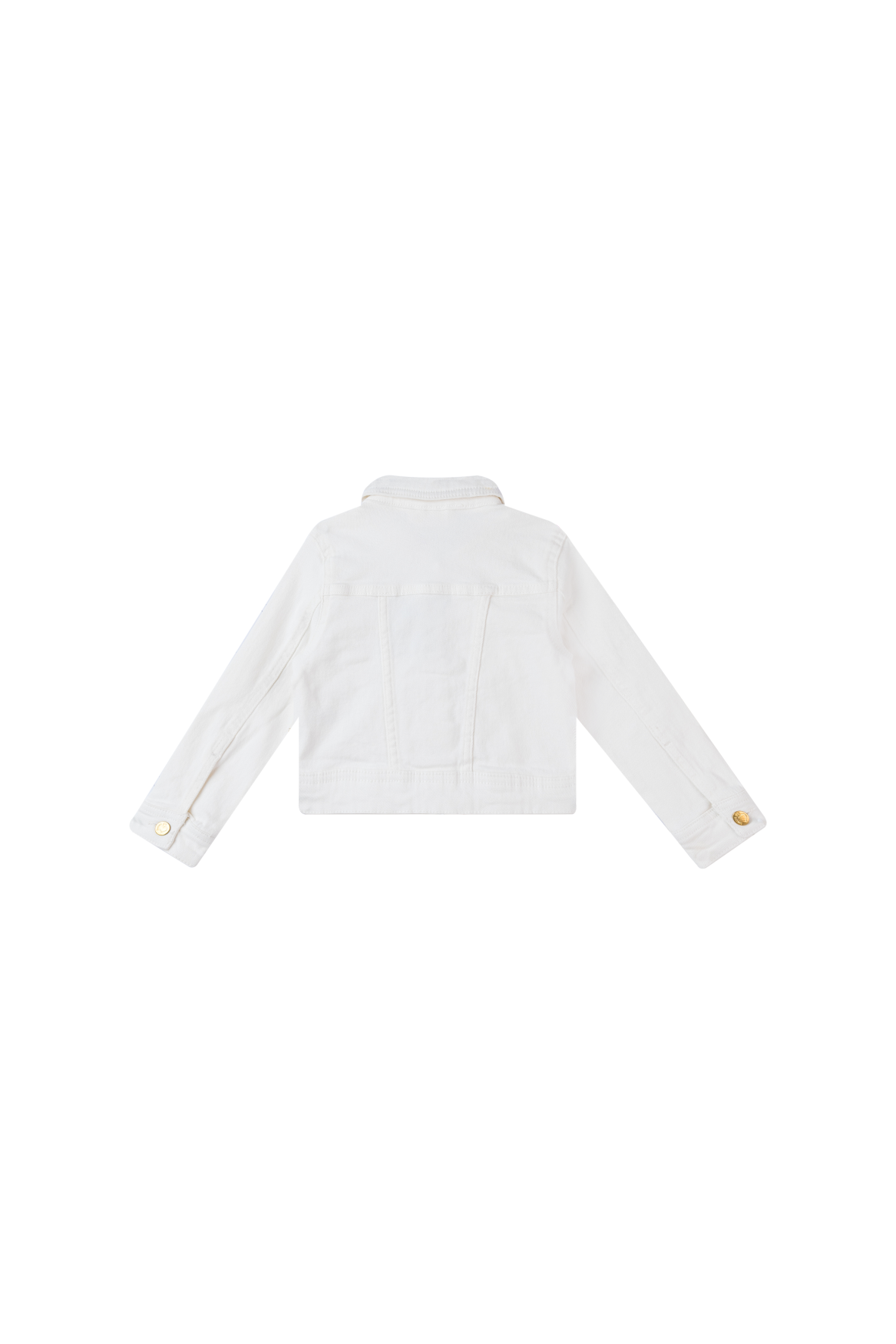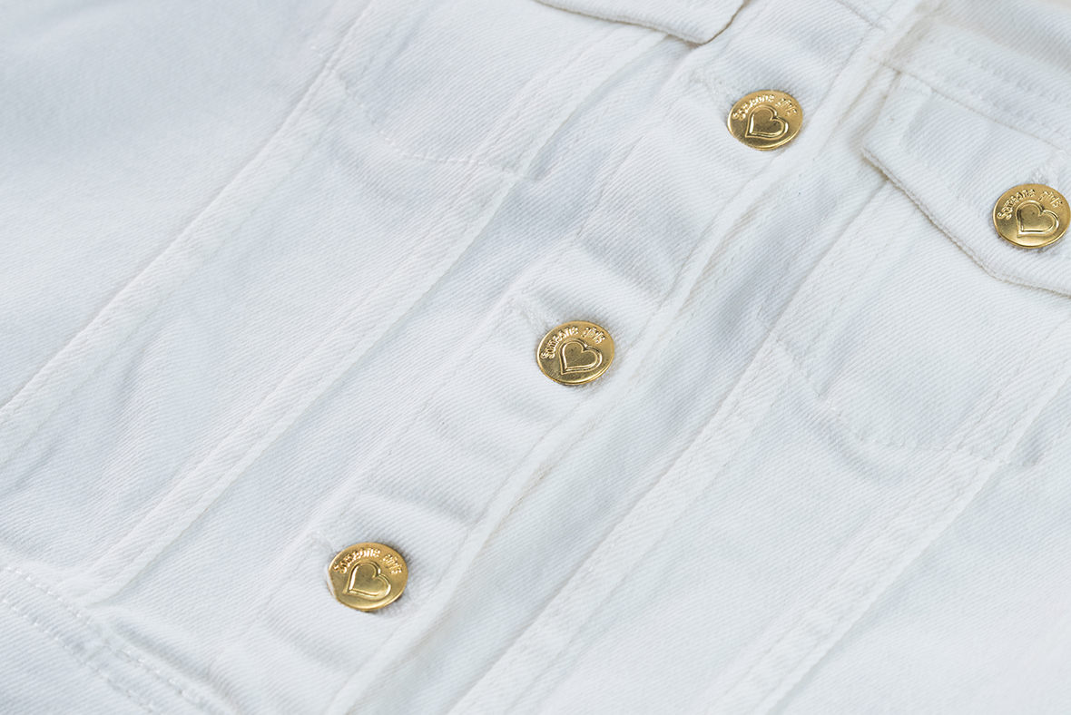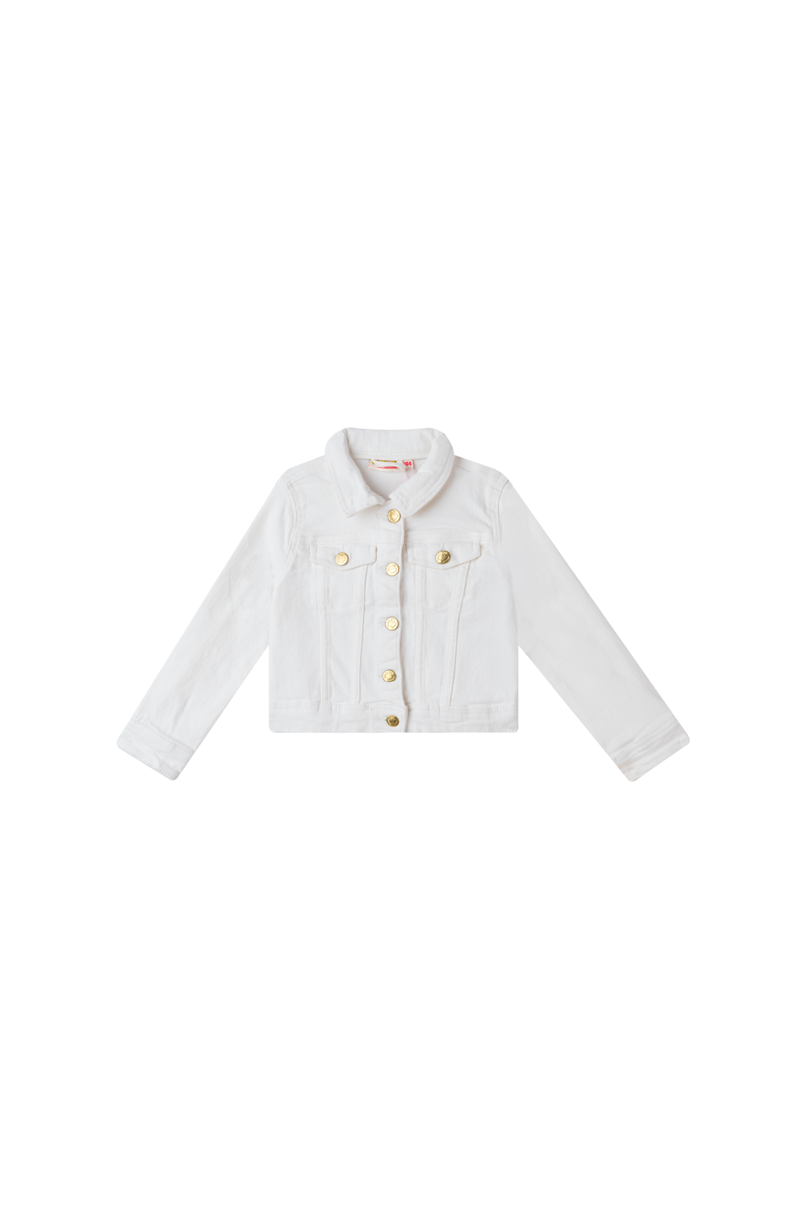 Trendy girls’ jacket in white denim. This classic design with button closure and chest pockets gets a fresh, summery look thanks to the bright color. The golden buttons add a stylish touch. Perfect to combine with dresses, skirts or cool jeans.