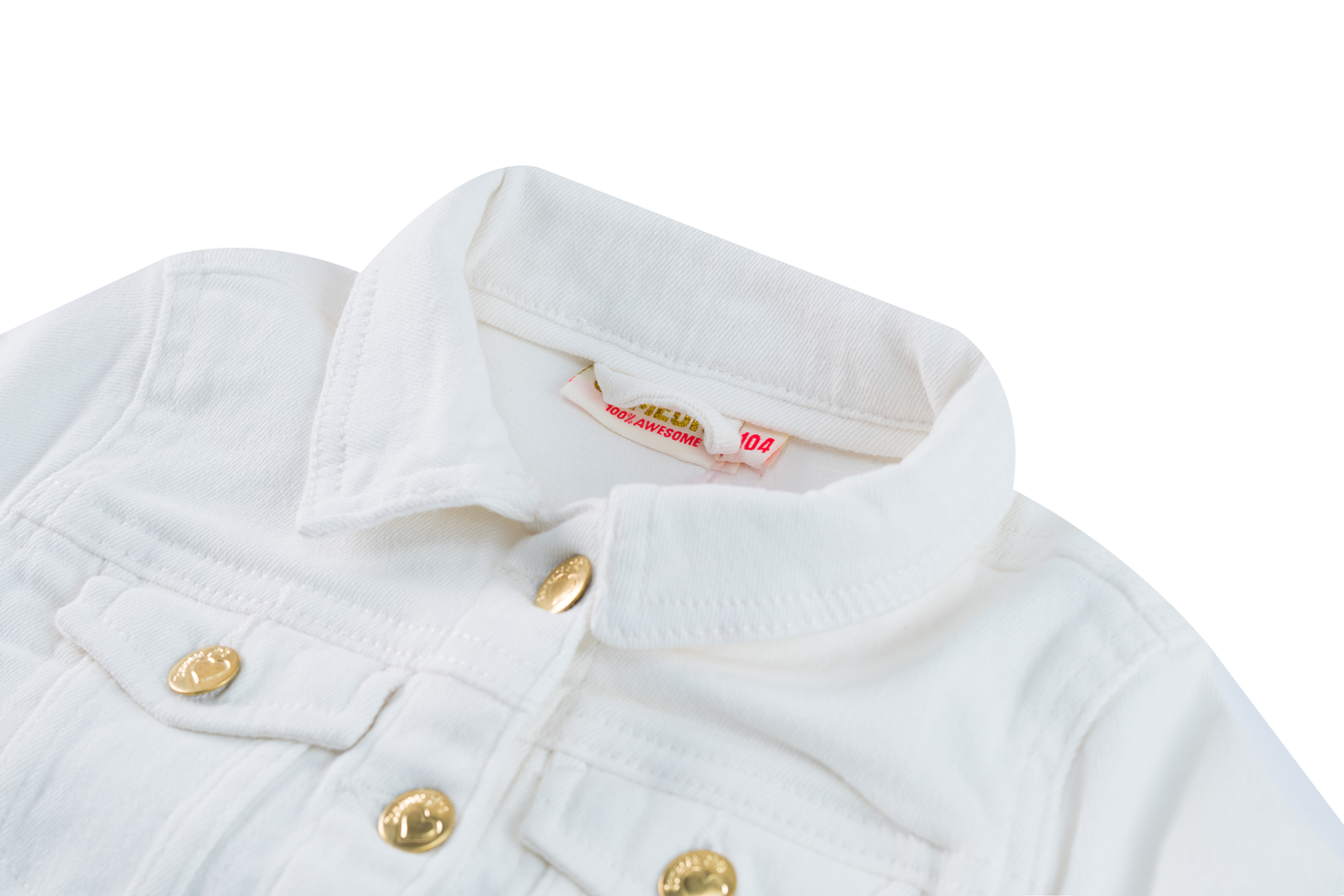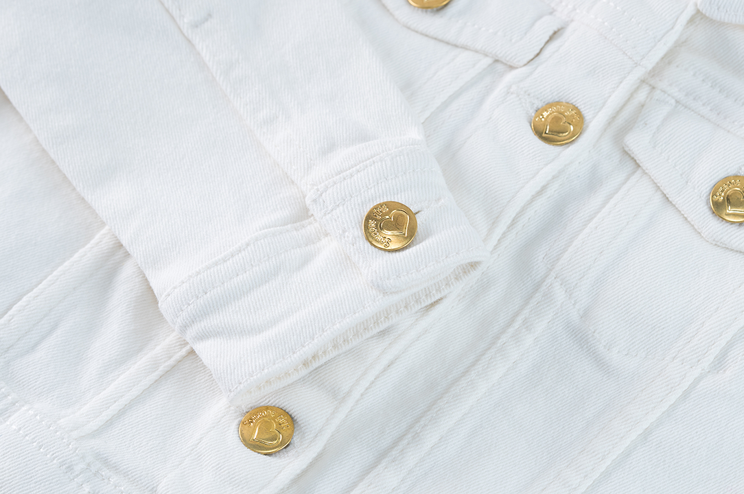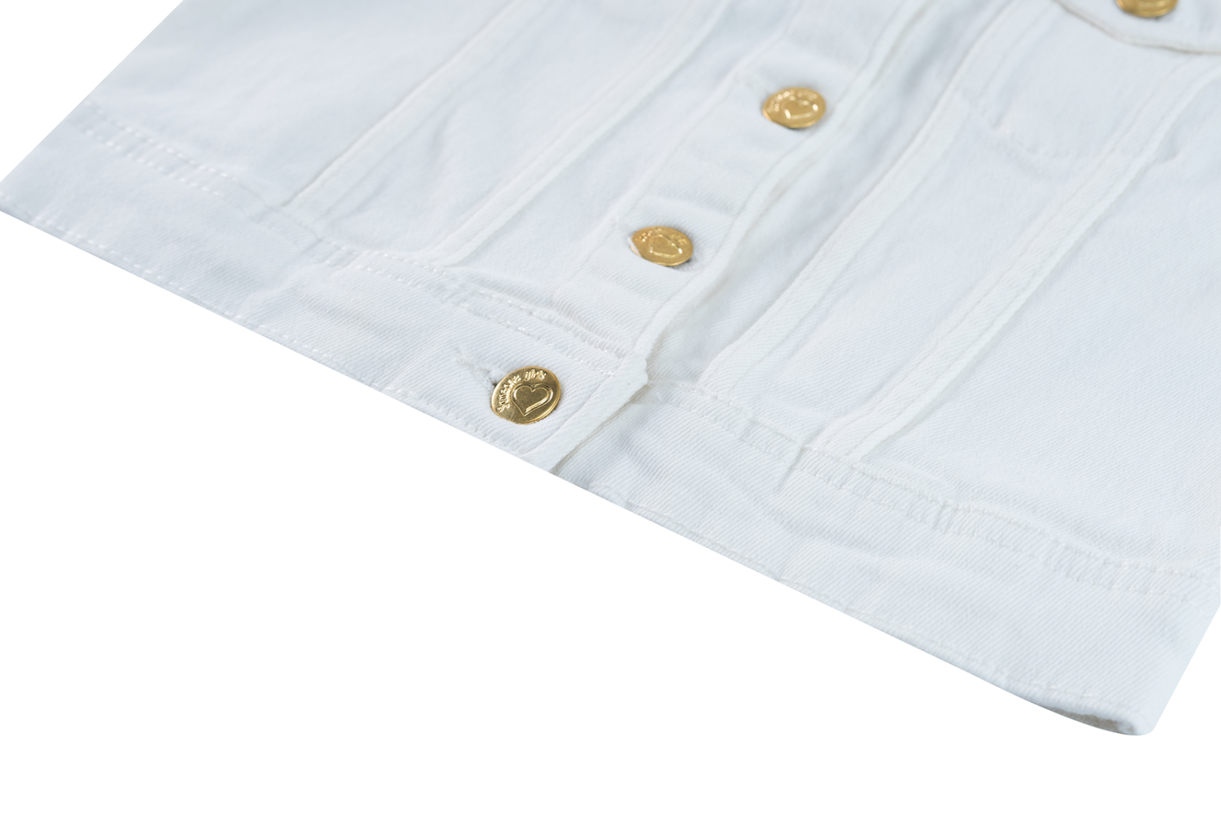 Trendy girls’ jacket in white denim. This classic design with button closure and chest pockets gets a fresh, summery look thanks to the bright color. The golden buttons add a stylish touch. Perfect to combine with dresses, skirts or cool jeans.