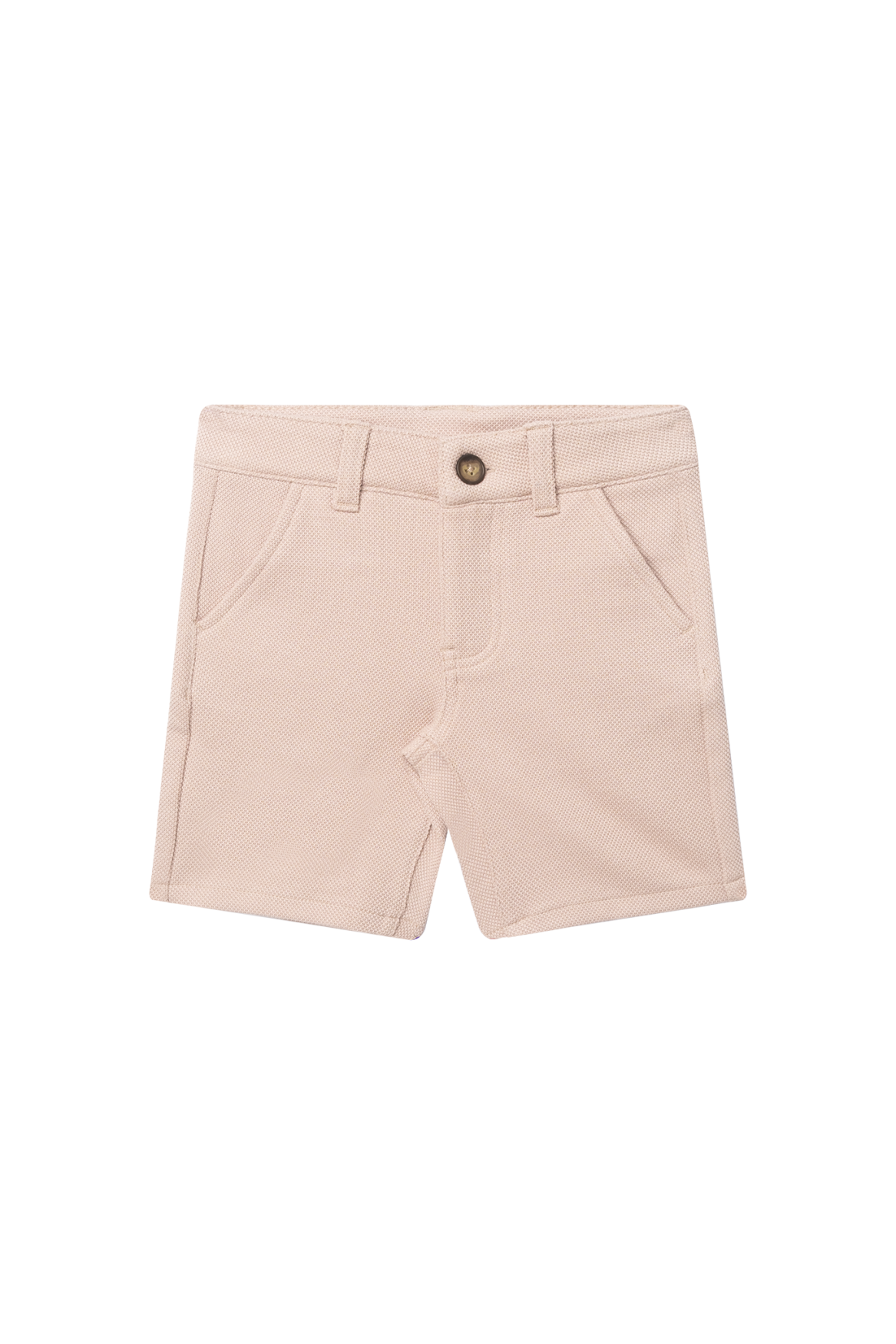 This beige boys’ short is a versatile summer essential. It features a classic button closure, side pockets, and belt loops at the waist. The neutral shade makes it easy to combine with both colorful T-shirts and smart shirts for festive occasions.