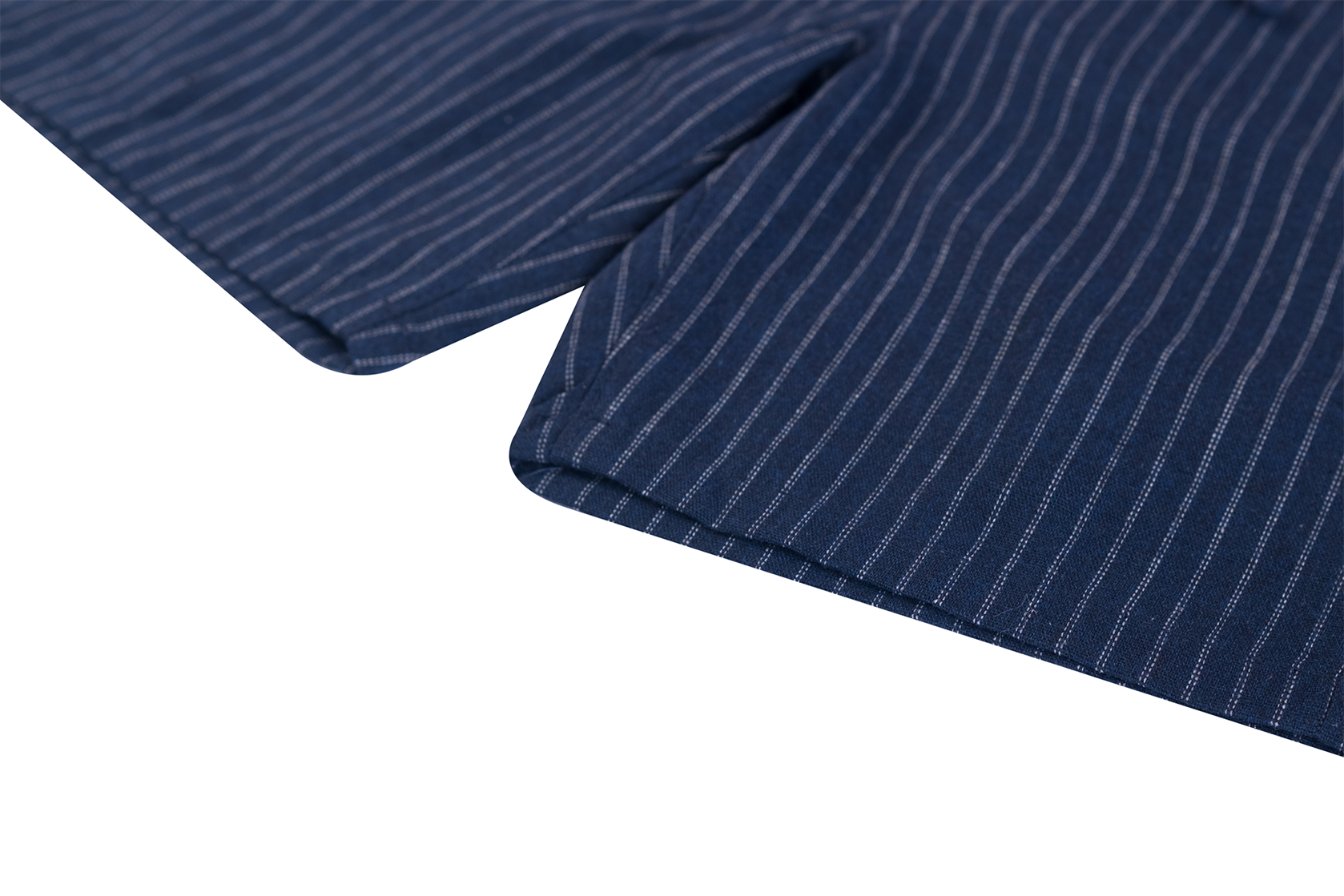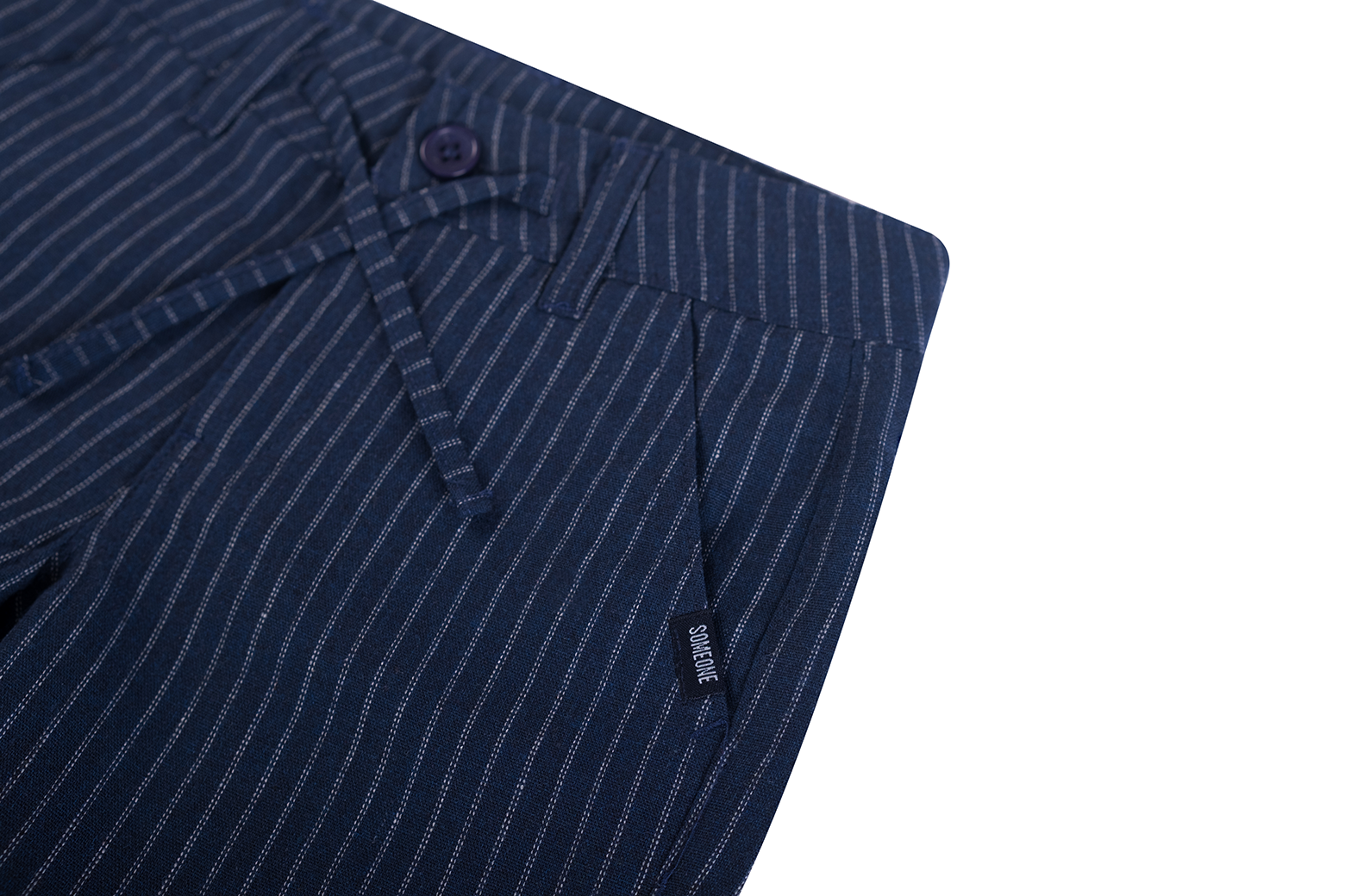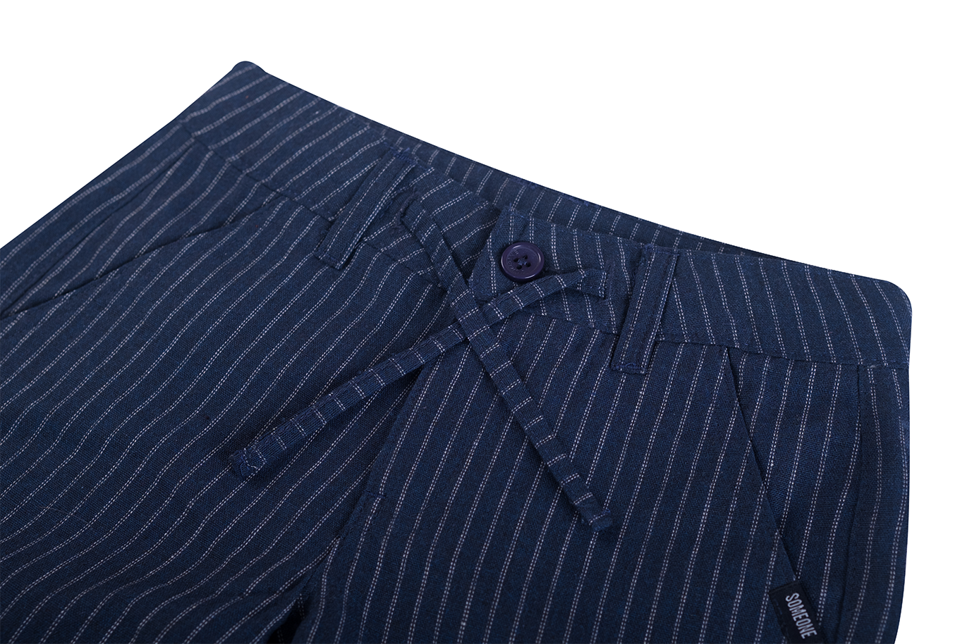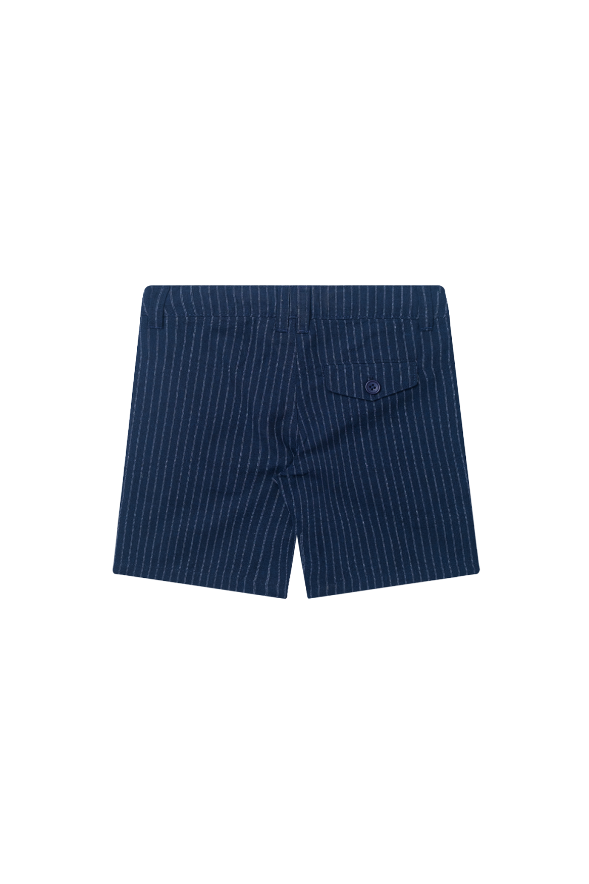 This navy boys’ short with pinstripes is a stylish choice for summer days. It features an elastic waistband with adjustable drawstring, side pockets, and a button closure. The classic stripe design makes it suitable for both casual wear with a T-shirt and smart outfits with a shirt or waistcoat.
