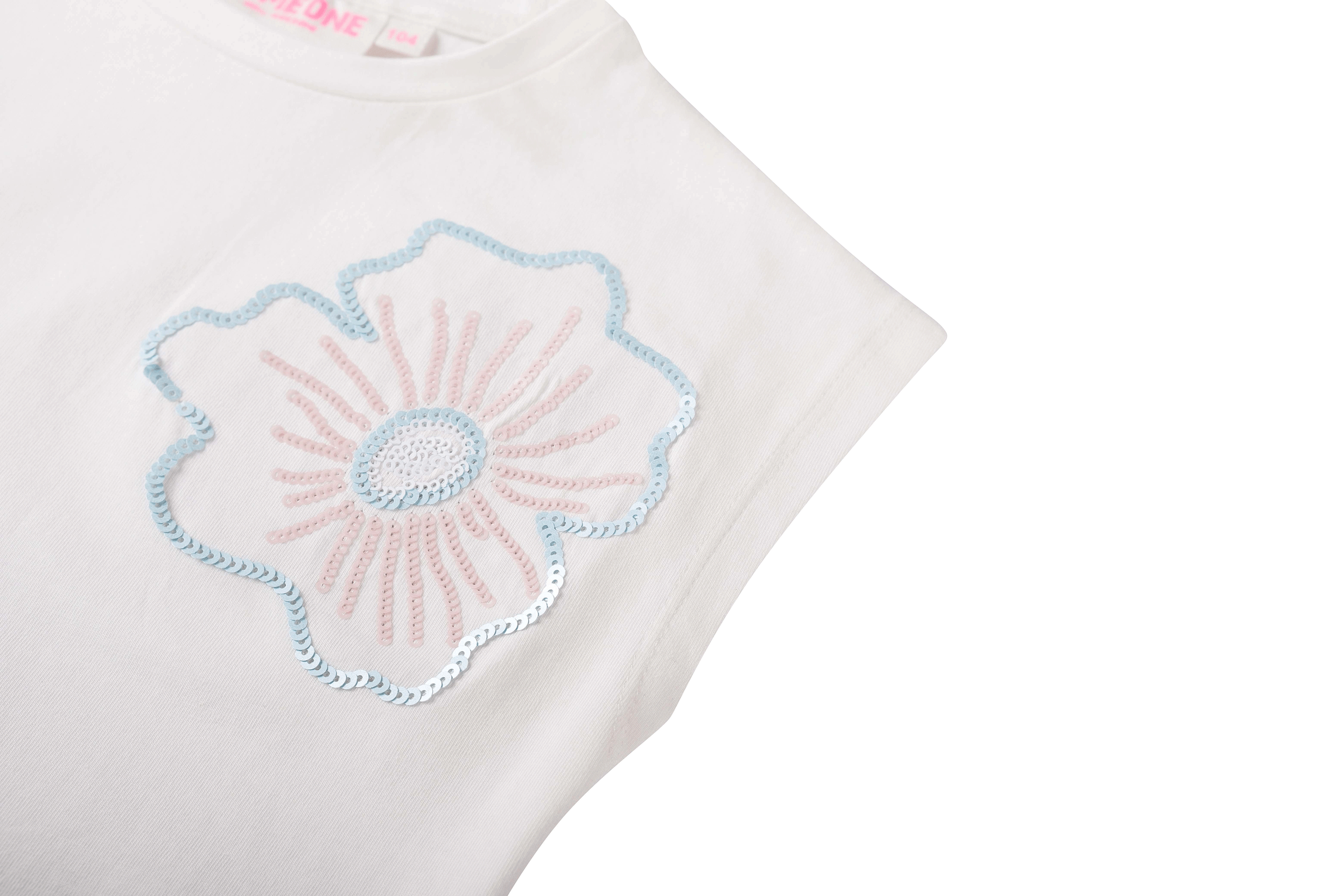 This girls’ T-shirt is crafted from soft cotton and features a striking sequin flower appliqué on the chest. The subtle sparkle adds a playful and cheerful touch, perfect for sunny days or special occasions. With its comfortable fit, this T-shirt is ideal for everyday wear.