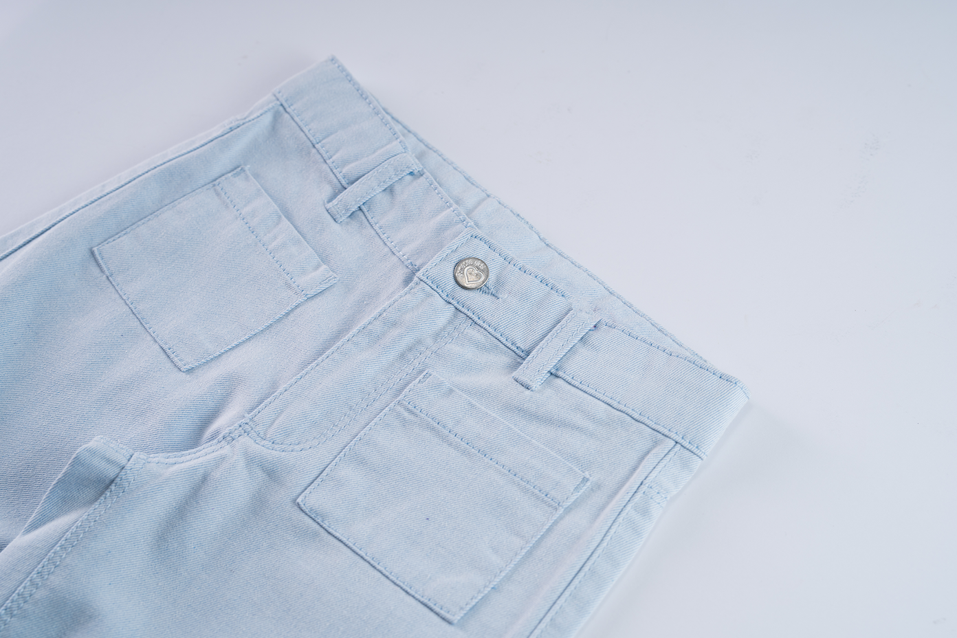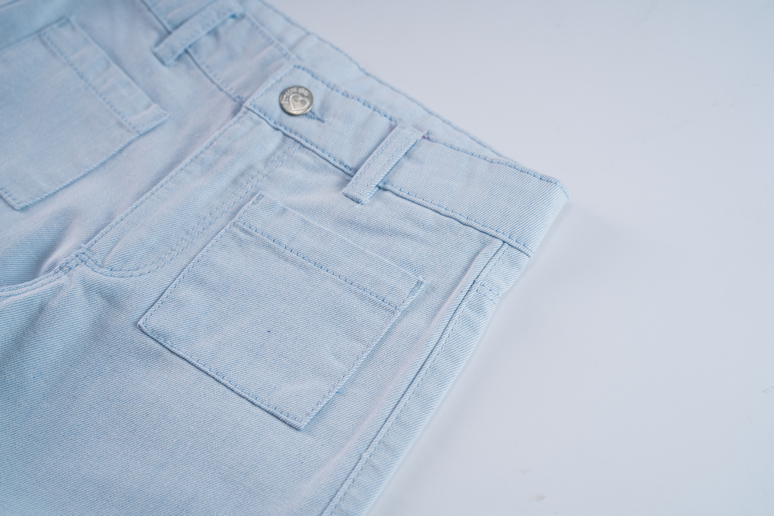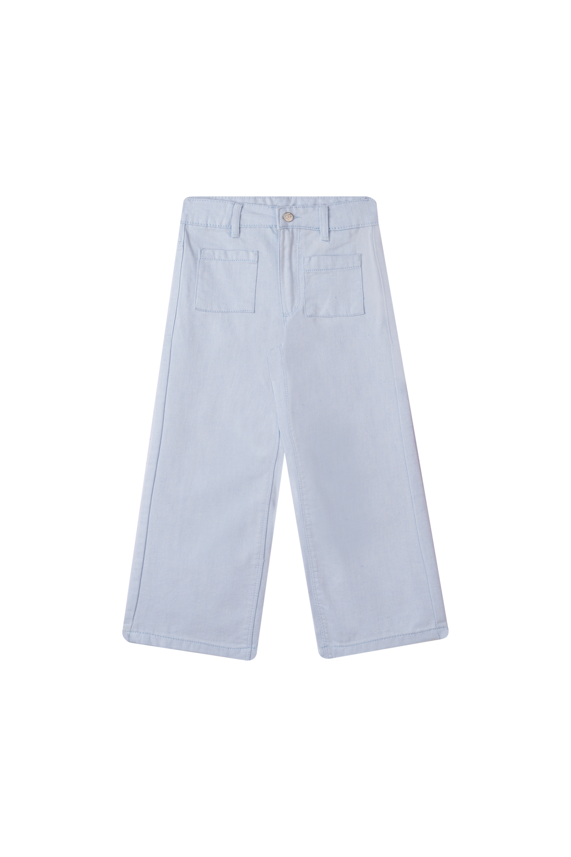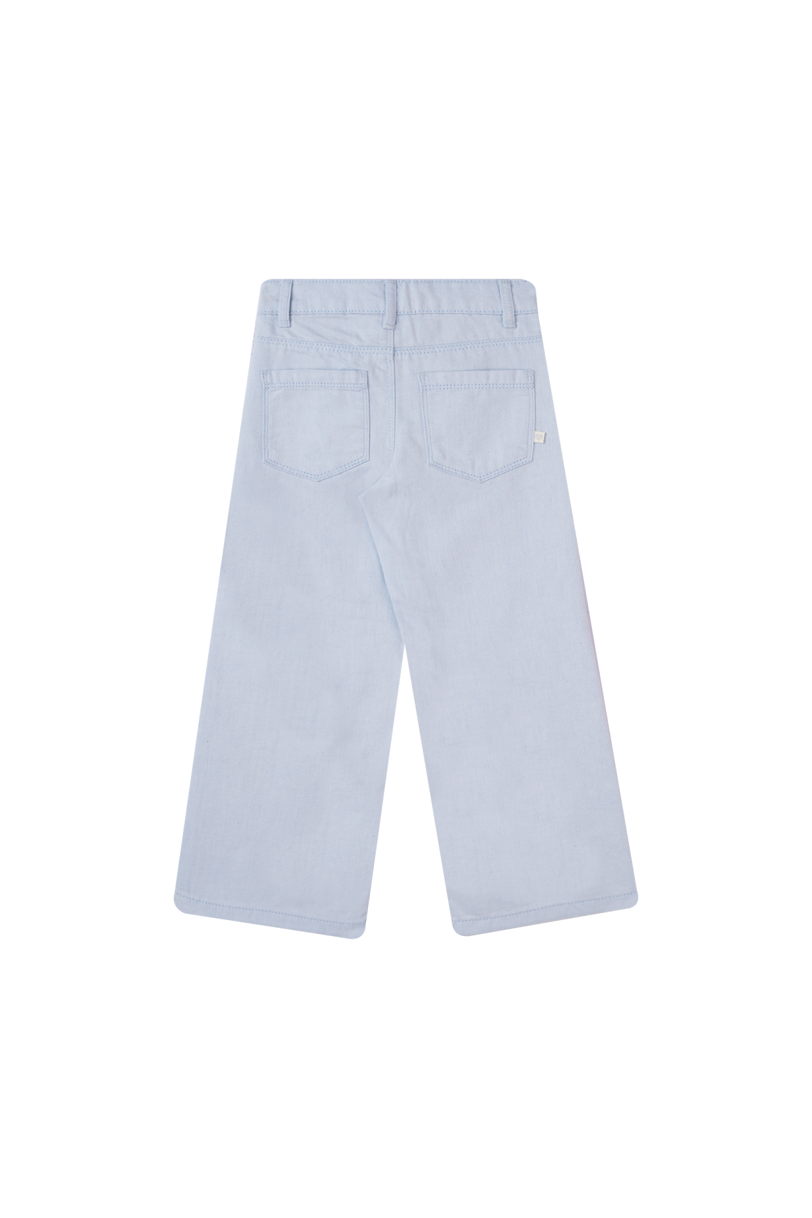 Trendy girls’ jeans in a soft light blue shade. The design features a straight, loose fit with back pockets for a cool look. The light wash makes these trousers perfect for summer outfits. Easy to combine with T-shirts, blouses or a denim jacket.