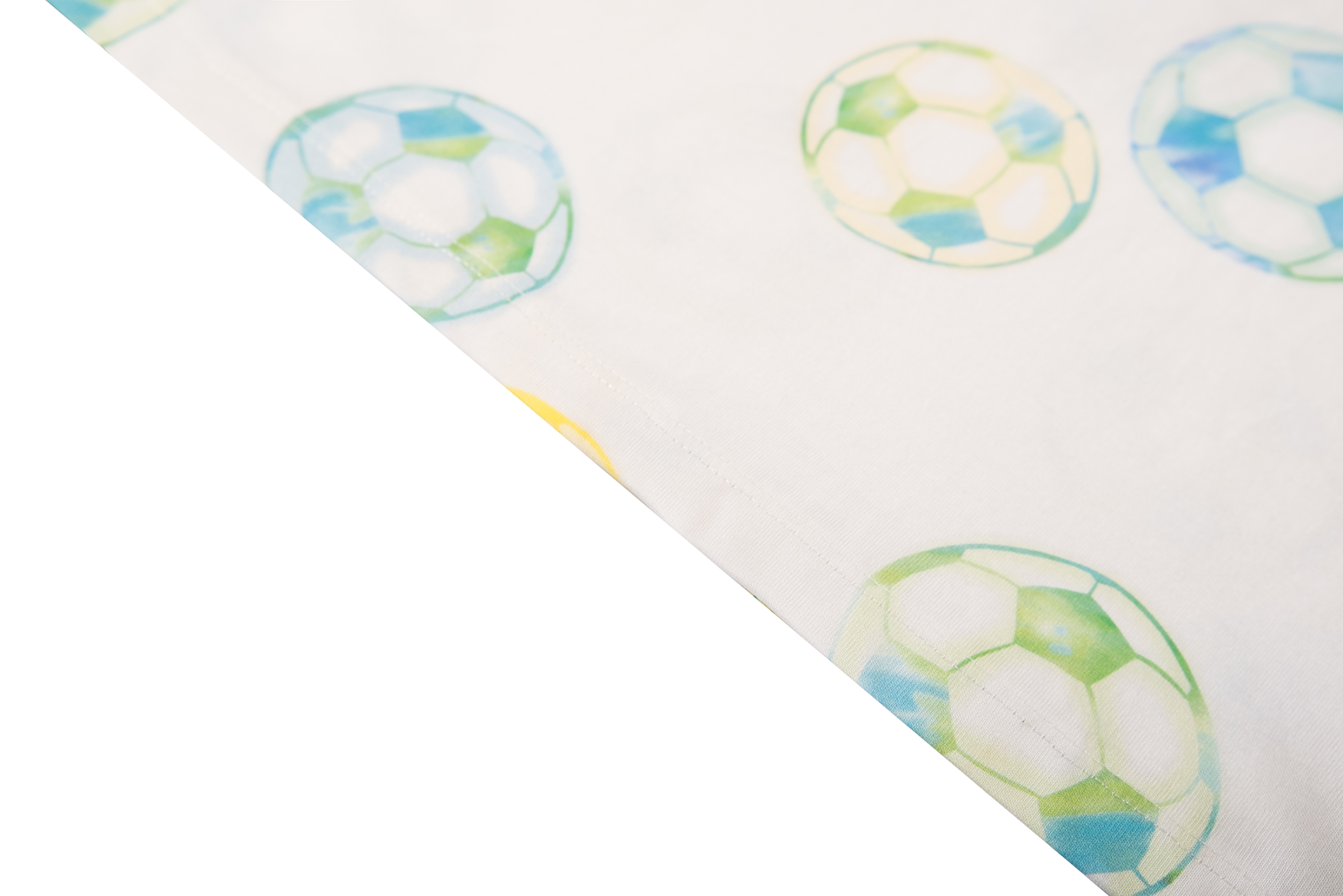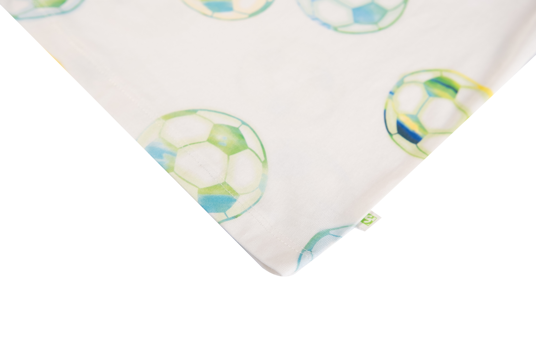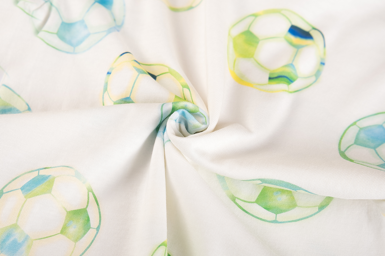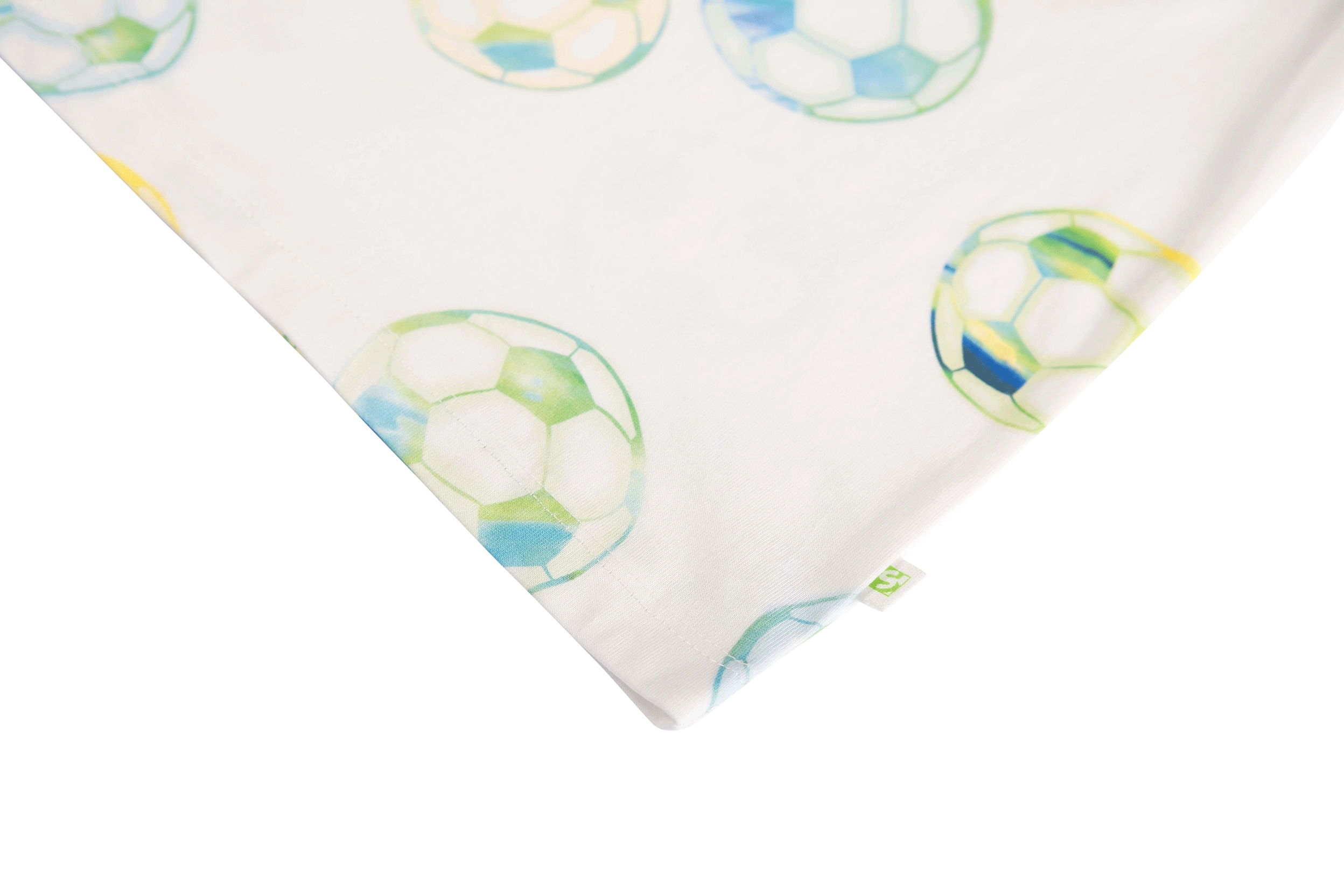 This T-shirt features a playful all-over print of footballs in fresh blue and green tones, giving it a sporty and cheerful look. The short sleeves and classic round neckline make it an easy-to-wear piece for everyday outfits. Ideal for young football fans who love to show their passion for the game through their clothing.