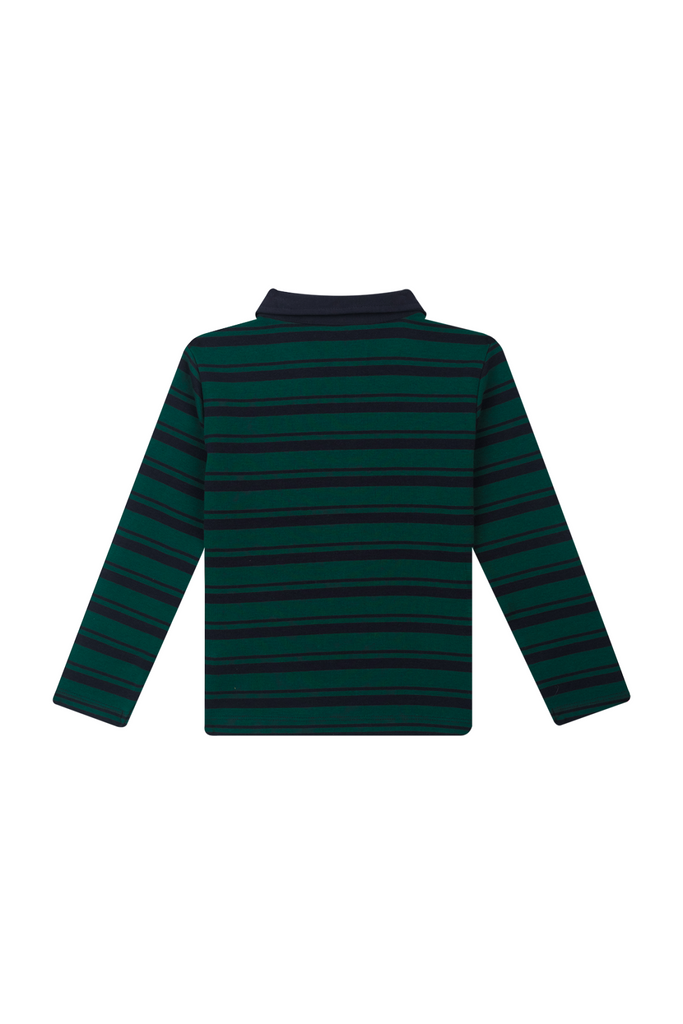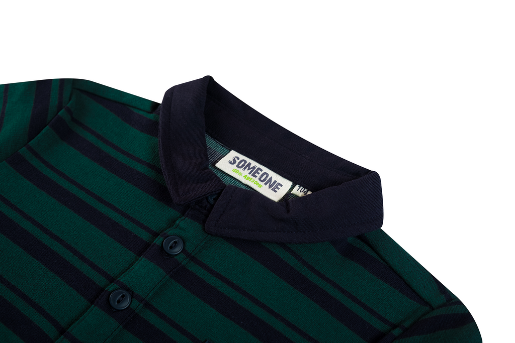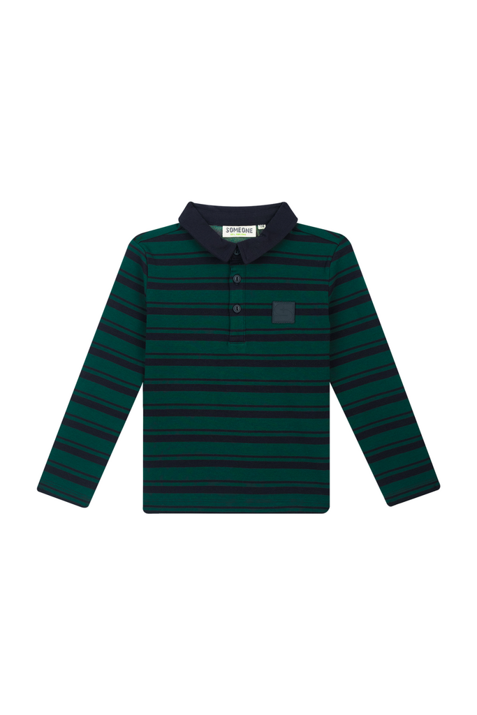 This striped long-sleeve polo blends comfort with a clean, stylish look. The contrasting collar adds a modern touch, while the soft fabric keeps it comfortable all day. The small chest label gives it a cool and understated detail. Great for school or slightly dressier occasions. Perfect to pair with dark jeans or chinos for a complete outfit.