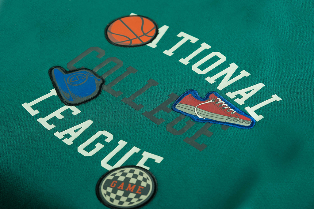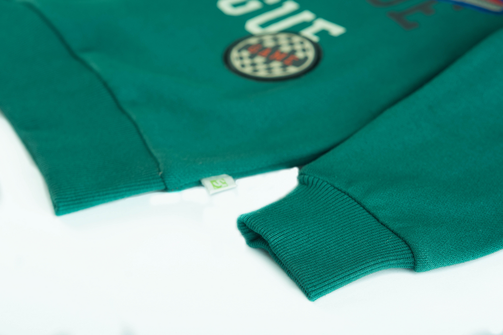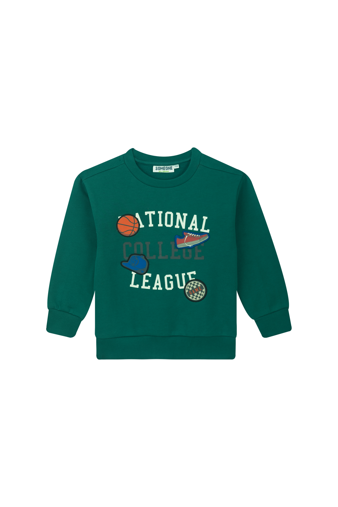 This sporty children’s sweater features a playful college-inspired design with its mix of text and illustrations. The graphics of a basketball, cap, sneaker and emblem add a dynamic and energetic feel, perfect for kids who enjoy being active and sporty. With its crew neckline and straight fit, the sweater works well for school, training sessions or relaxed days at home. A cool and versatile piece that adds a fresh, athletic touch to any outfit.