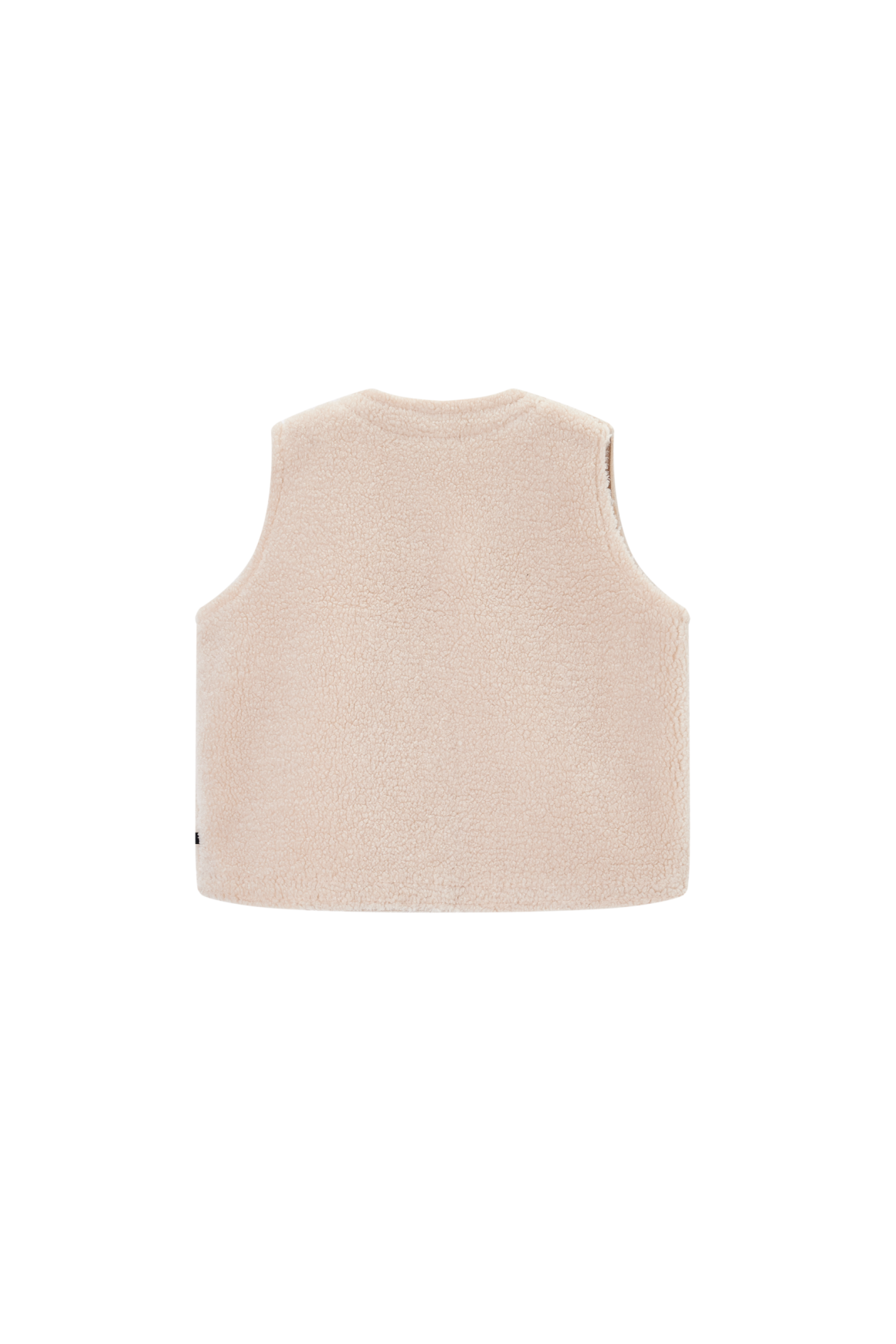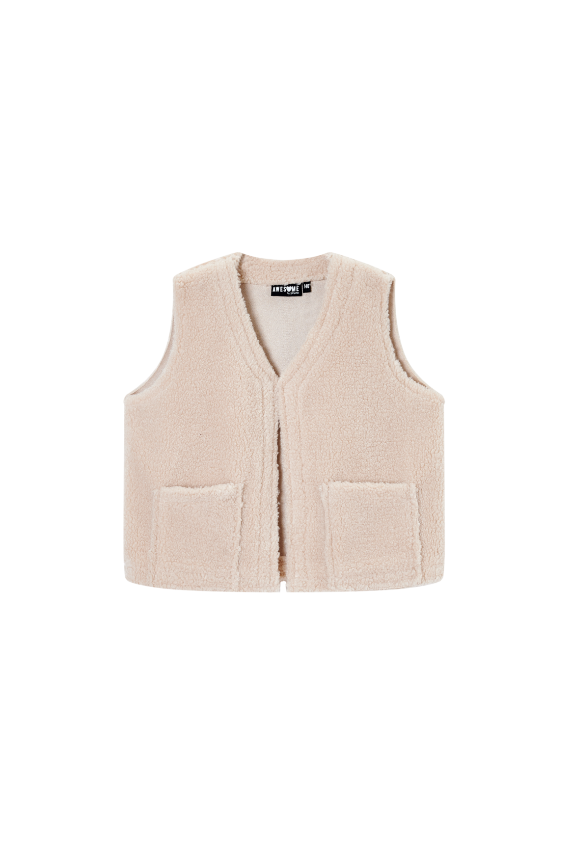 This soft teddy vest has a warm and cosy feel. The sleeveless design makes it perfect for layering over a sweater, long sleeve, or blouse for added comfort. The patch pockets on the front add a playful and practical touch, while the V-neck creates a timeless look that’s easy to style. Great for layered outfits on cooler days.