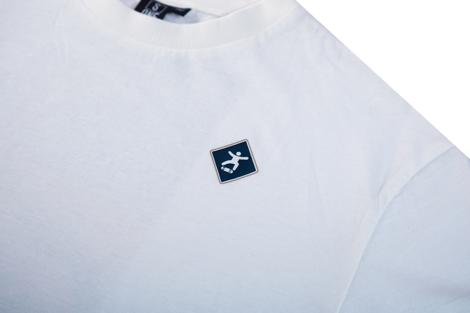 A clean white T-shirt that’s easy to style while still offering a subtle detail. A small dark emblem on the chest adds a sporty, modern touch. With its straight cut, it’s a comfortable piece for everyday wear and fits effortlessly into any casual look.