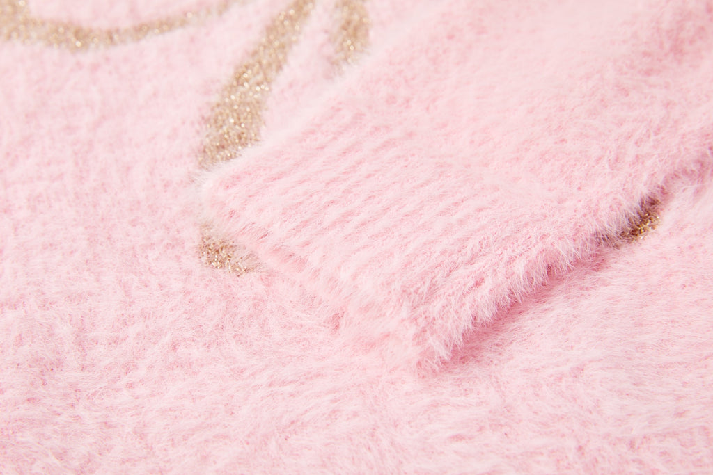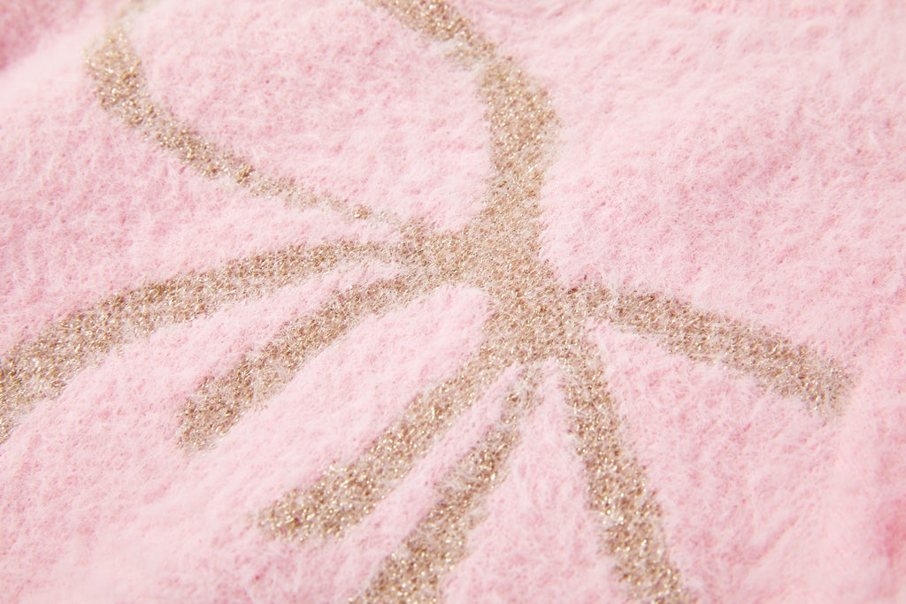 This soft pink sweater with a stylish bow design has a dreamy, charming look that makes it perfect for everyday wear. The subtle texture of the fabric adds a warm and cozy feel, while the oversized bow on the front creates a playful yet elegant touch. With its comfortable fit and stretchy cuffs, it’s an ideal piece for cooler days and can be easily paired with jeans, skirts, or leggings. The sweater feels lightweight yet warm, making it suitable throughout the season. A perfect blend of comfort and cuteness for little fashion lovers.