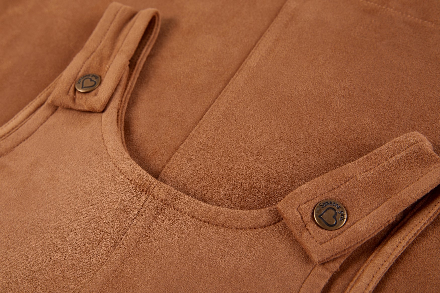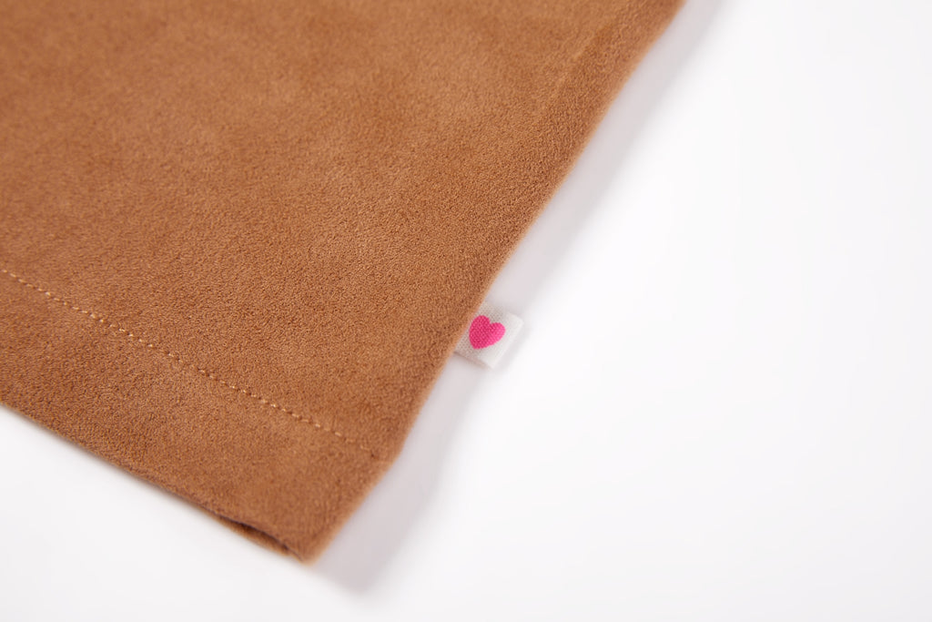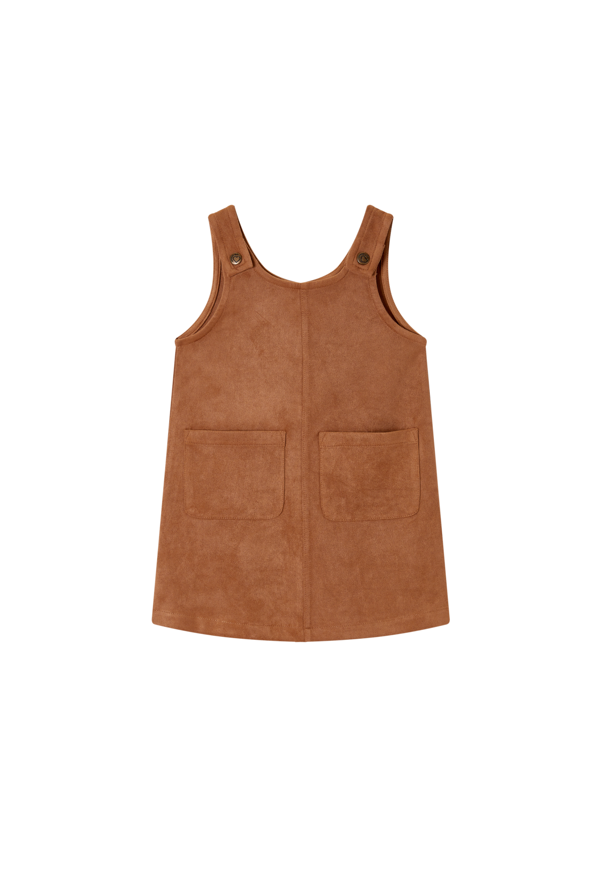 This dark beige pinafore dress features a simple and stylish design that pairs beautifully with a variety of tops and sweaters. The wide straps with button details add a classic touch, while the two large front pockets give the dress a playful and practical feel. The straight A-line cut creates a timeless silhouette suitable for any occasion. A versatile and charming piece that belongs in every child’s wardrobe.