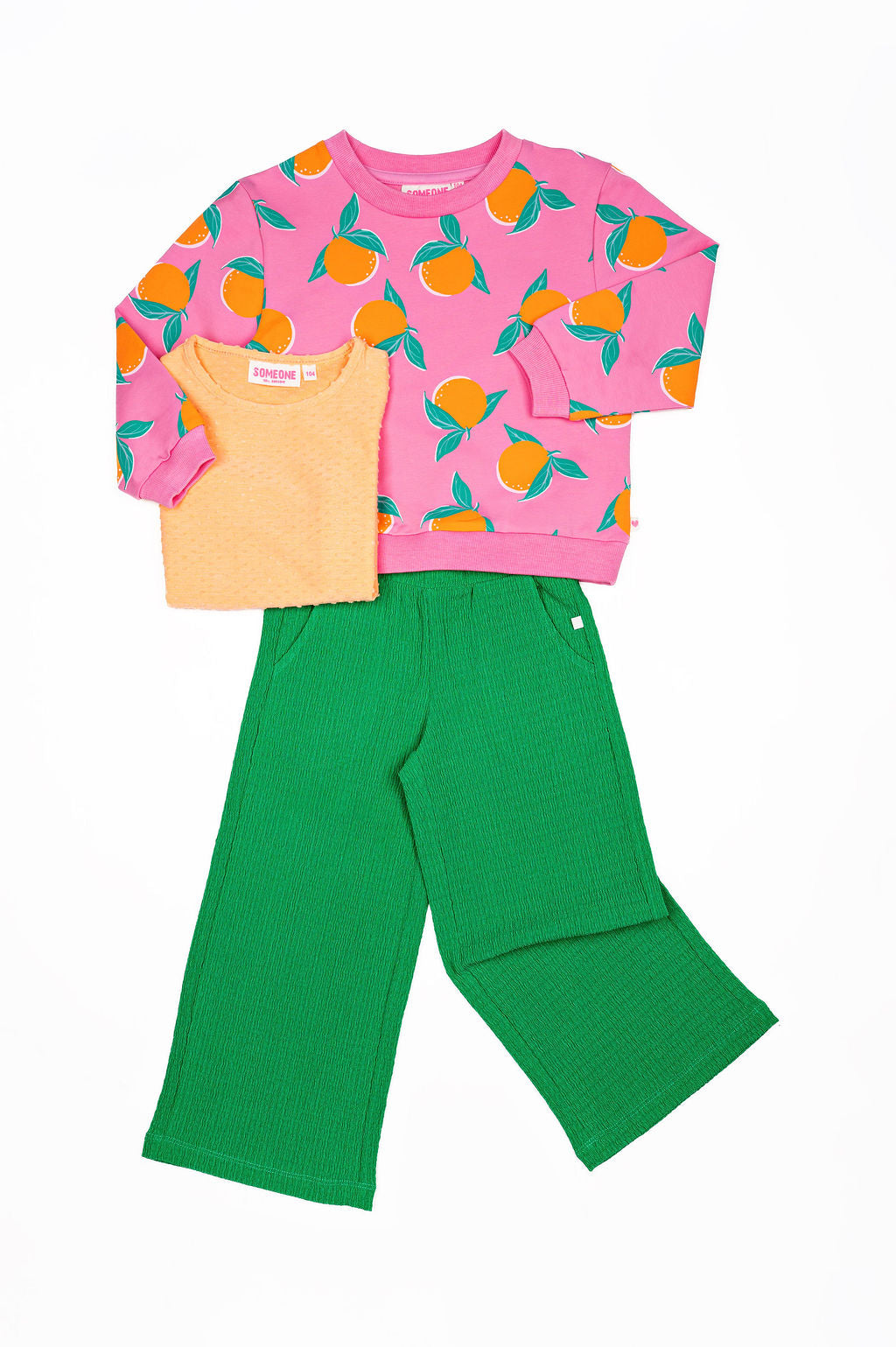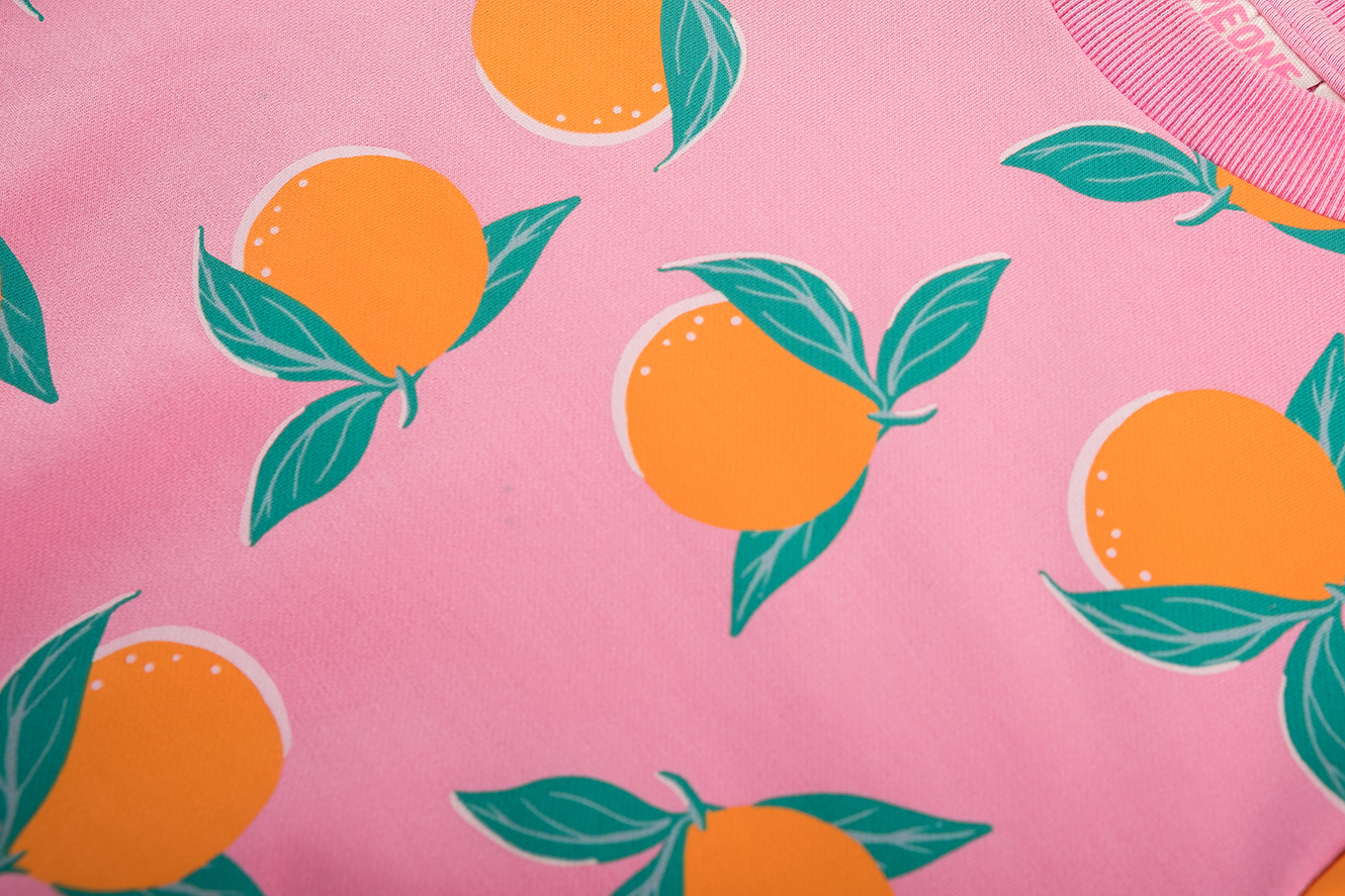 This cheerful sweatshirt instantly brightens up any day. The bold orange print against the pink backdrop gives it a sunny vibe, even when the weather isn’t. It’s the kind of piece kids love to wear because it’s comfortable and full of character. Great for school, weekend outings or a relaxed afternoon at home.