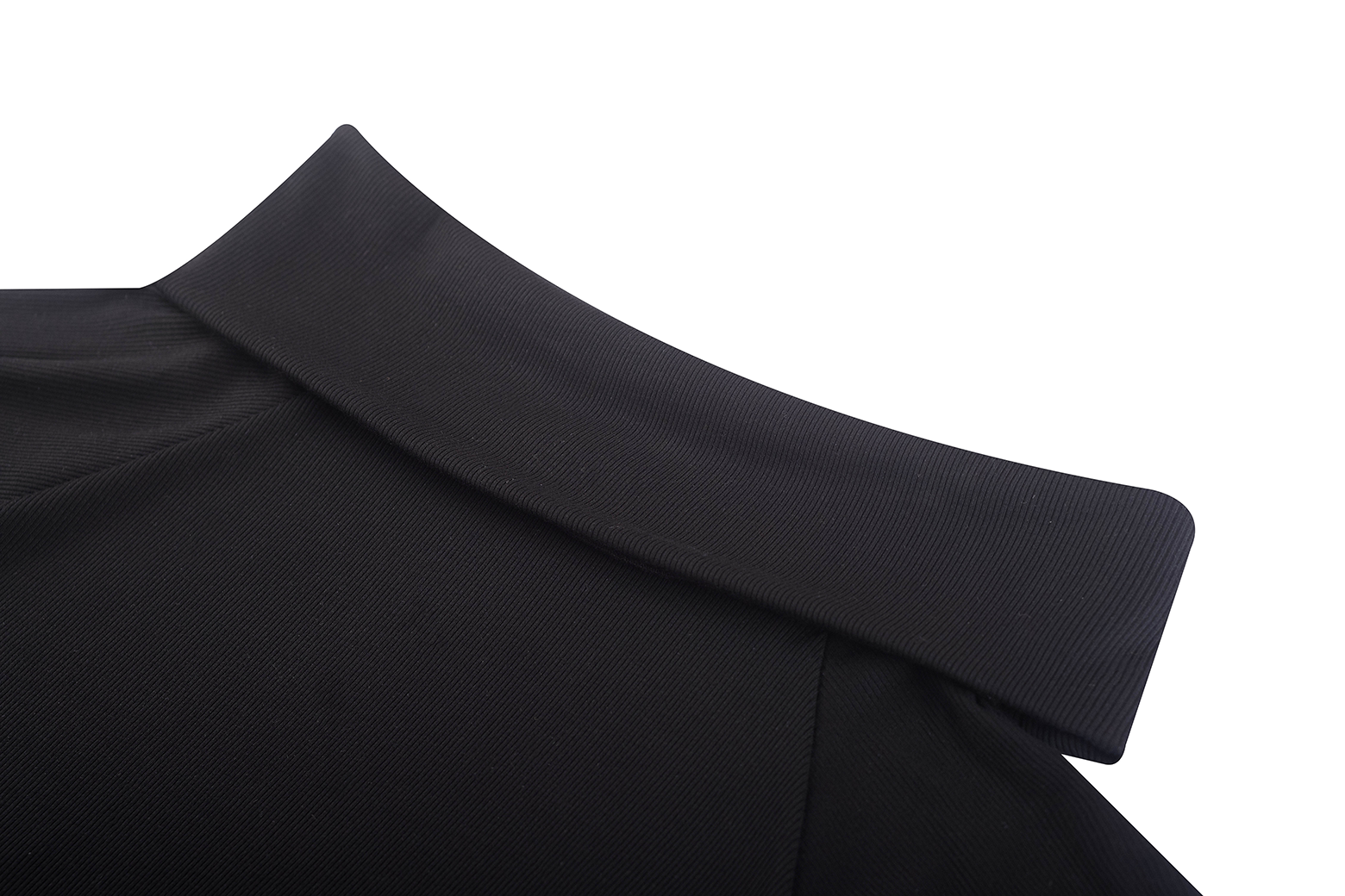 Deze elegante zwarte off-shoulder top is gemaakt van een zachte, rekbare stof die comfortabel zit en mooi in model blijft. De brede omgeslagen halslijn geeft een moderne en verfijnde uitstraling, ideaal voor zowel casual outfits als wat gekledere looks. De lange mouwen zorgen voor een slanke pasvorm en het minimalistische ontwerp maakt hem makkelijk te combineren met jeans, rokken of laagjes.