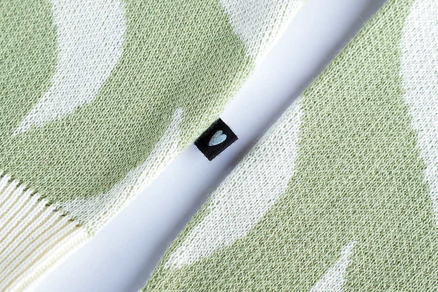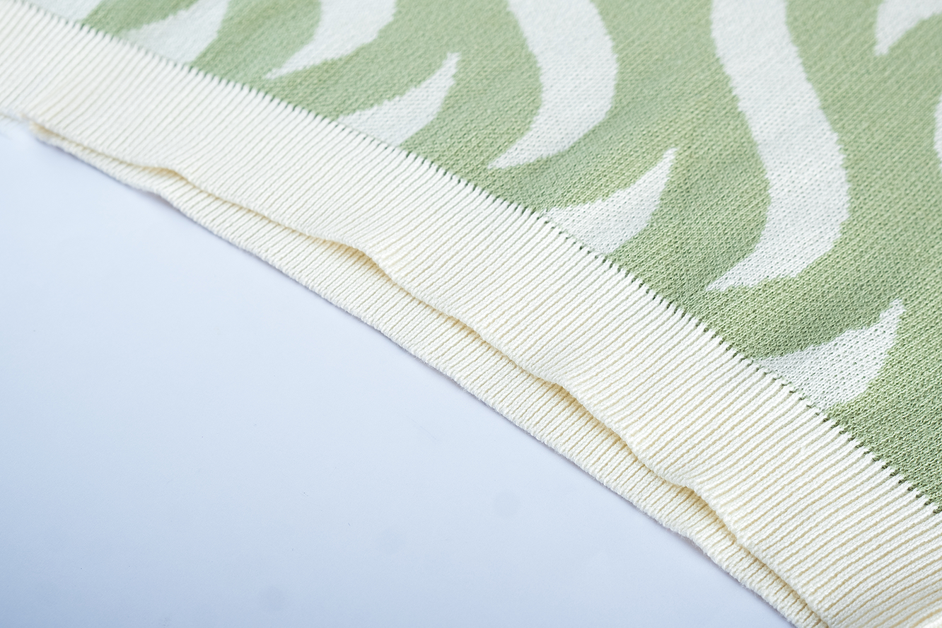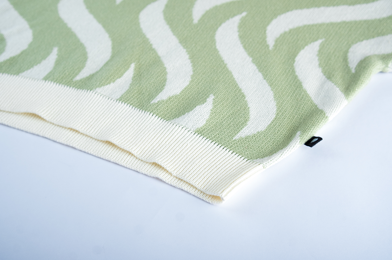 This light green turtleneck sweater with a flowing, abstract pattern is a stylish and modern addition to any wardrobe. The playful design gives the sweater a fresh and unique look, while the comfortable fit makes it perfect for everyday wear. The high turtleneck and contrasting hems provide a clean and contemporary finish. Perfect to pair with jeans, a skirt, or a cozy winter outfit.