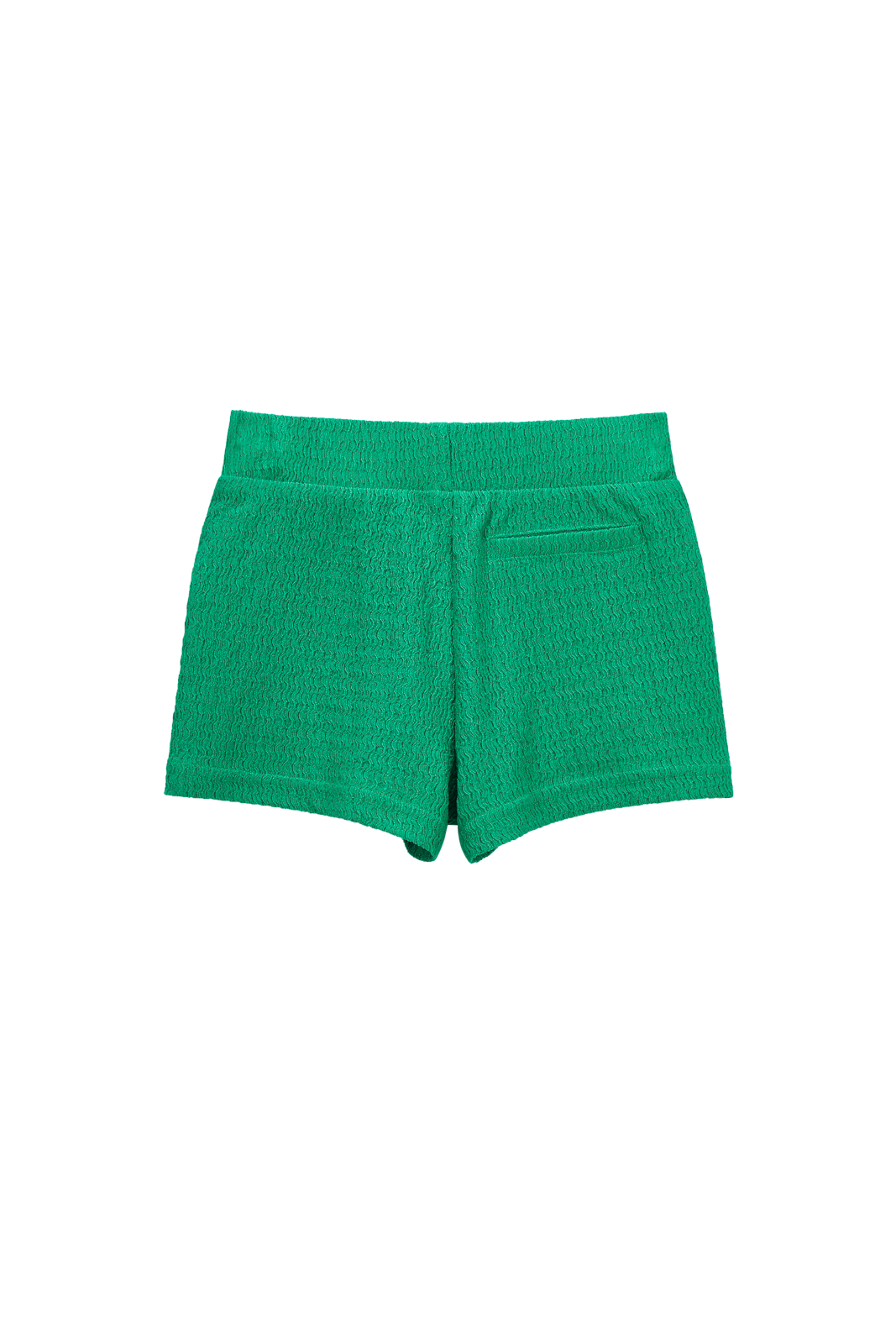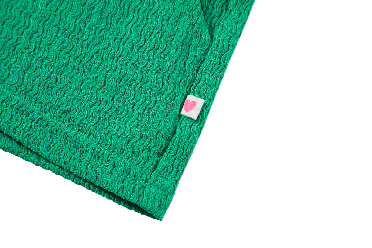 These green shorts have a fresh, summery look that instantly lifts the mood. The bold colour makes them easy to pair with both simple basics and fun prints. The wide elastic waistband keeps them comfortable during running, biking or just relaxing at home. It’s the kind of piece that feels effortless while still adding a strong pop of colour to any outfit.